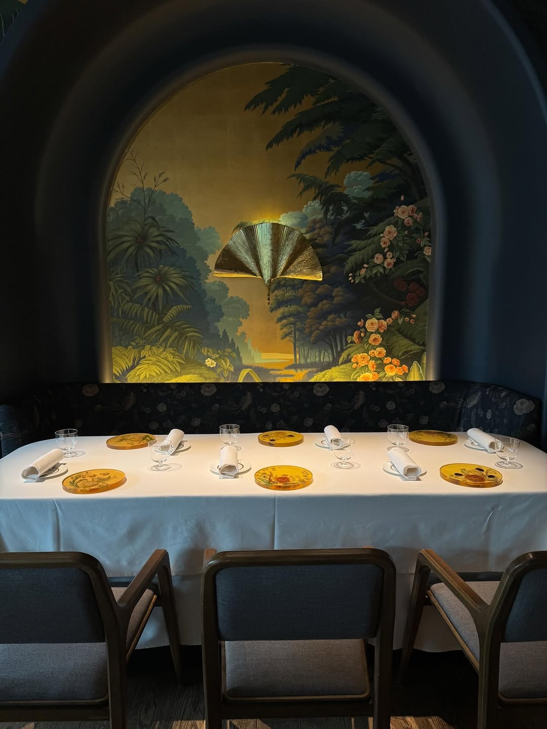 Азиатский ресторан, который просто покорил нас своим интерьером, вся концепция построена вокруг восточной культуры с явным акцентом на эстетику Японии. Внутри очень много деталей, которые хочется разглядывать, например, роспись стен, отсылающая к японской живописи.