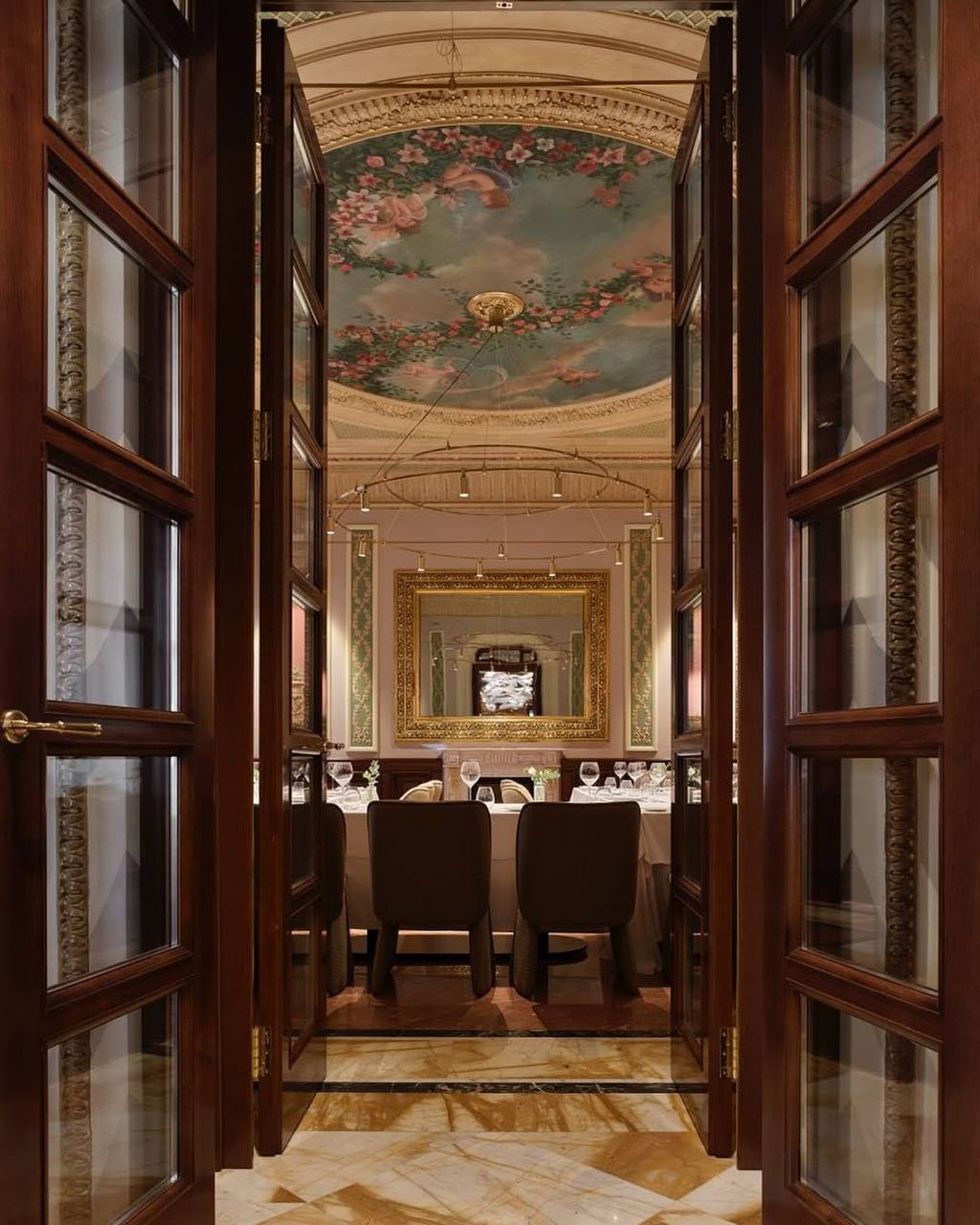 Легендарный ресторан французской кузни, работающий с 1913 года в самом центре Москвы. Прийти сюда стоит ради самой атмосферы версальских дворцов. Весь интерьер выполнен в стиле рококо: потолочные росписи, лепнина и венецианские зеркала — настоящий уголок Франции в нашей столице.