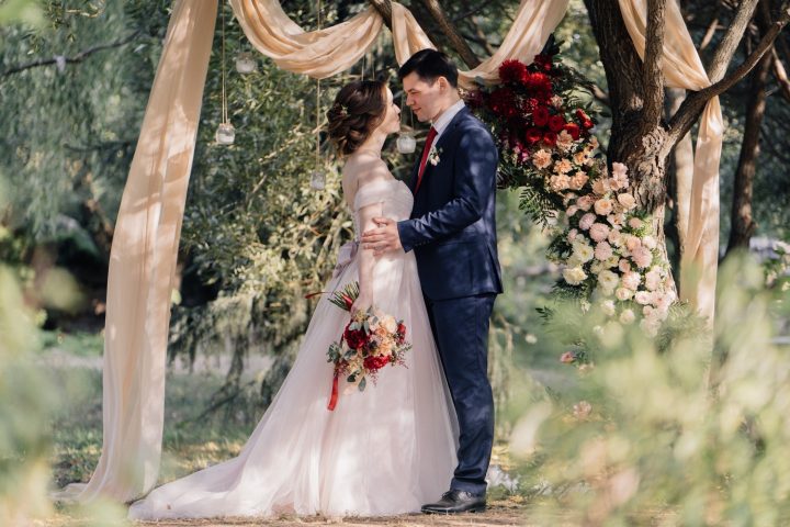 Раньше всего мы выбрали площадку — в Таёжный мы влюбились с первого взгляда! В начале подготовки нам все хотелось следовать какому-нибудь модному стилю. Сначала мы думали про рустик, потом хотели сделать тематическую свадьбу. Но в итоге мы поняли, что нам комфортнее не привязываться к какому-то конкретному стилю, а просто делать так, как нам нравится.
