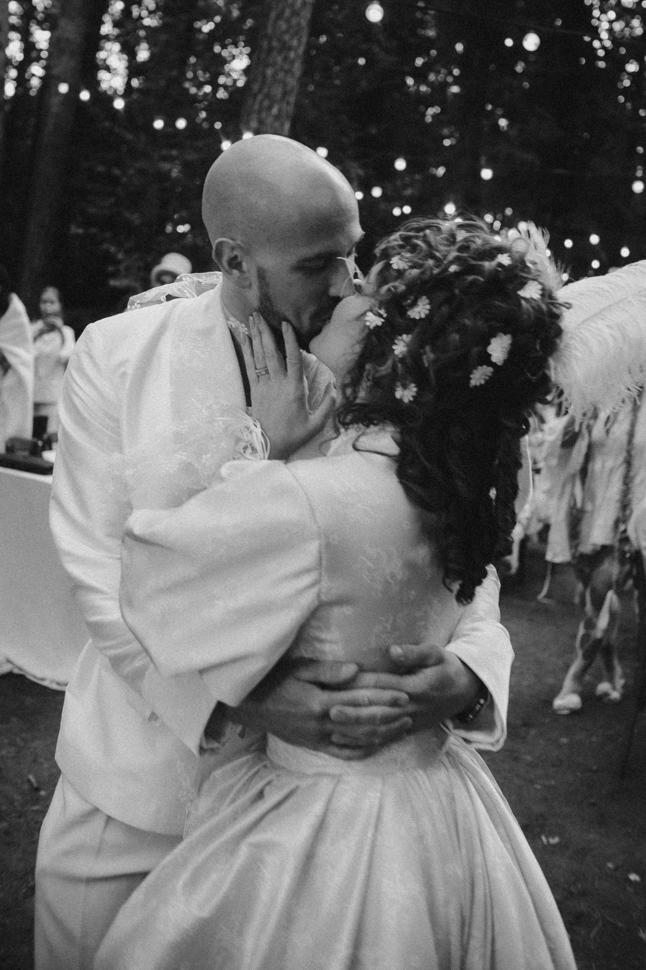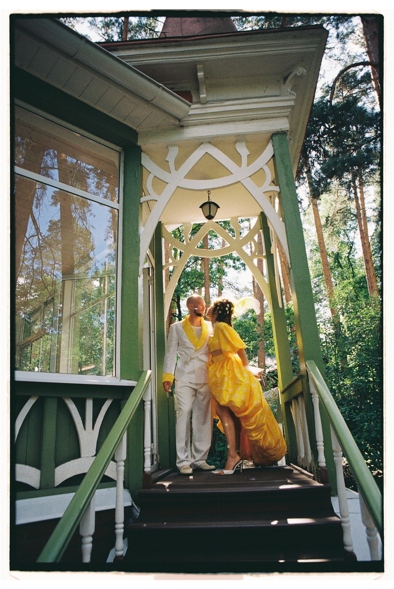 Мы обратились к нашему организатору за месяц до даты свадьбы и попросили найти «домик, похожий на русскую сказку». Концепция праздника была живой, шумной и немного сумасшедшей. Мы хотели сделать из нашей свадьбы мероприятие, где переосмысленные народные коды соседствуют с атмосферой дружеского капустника.