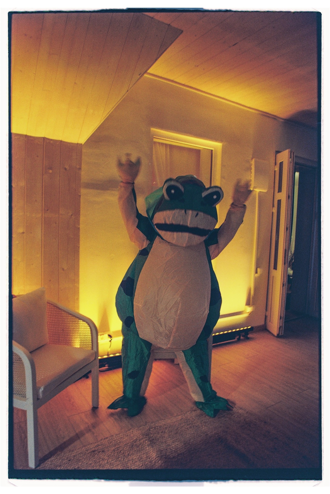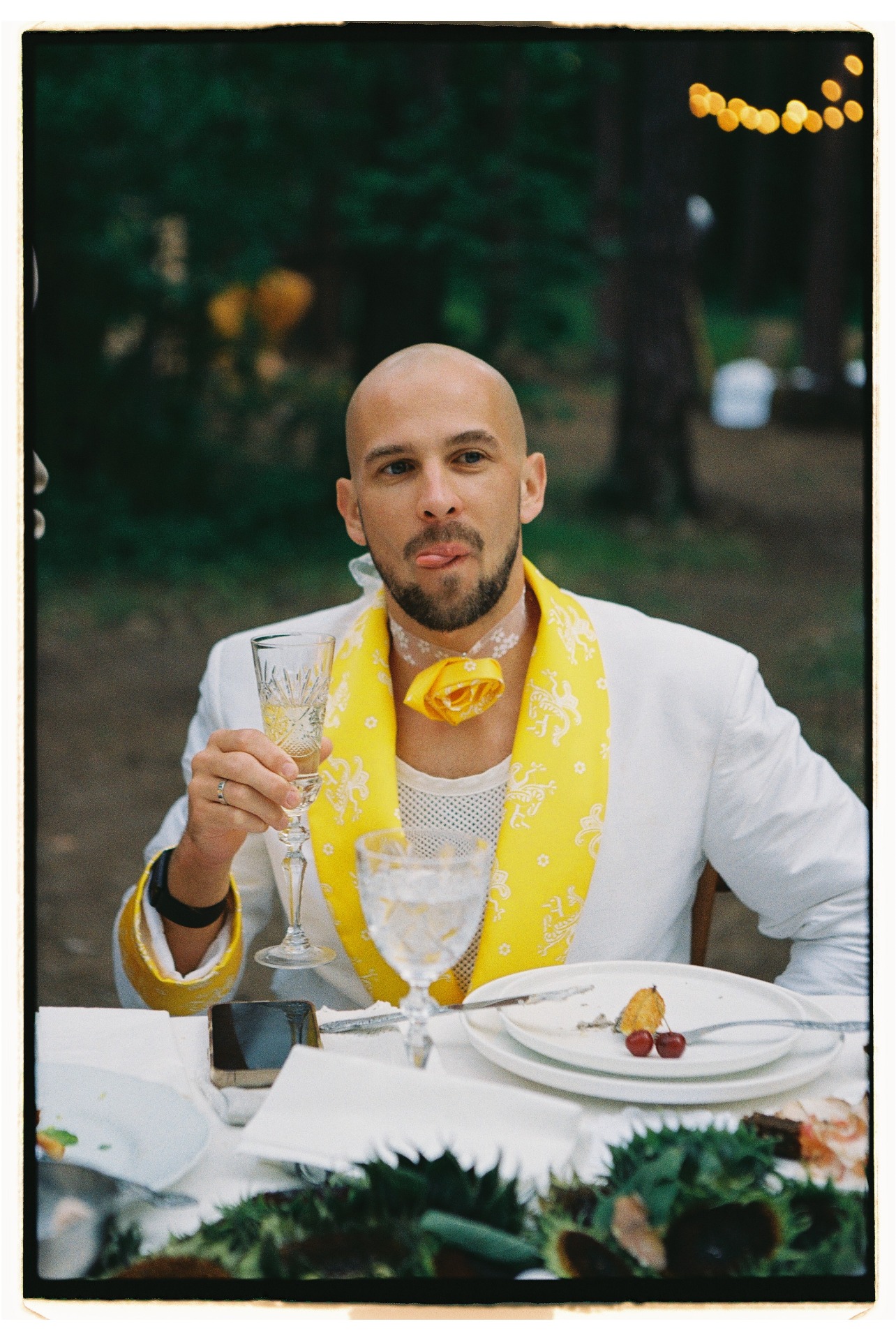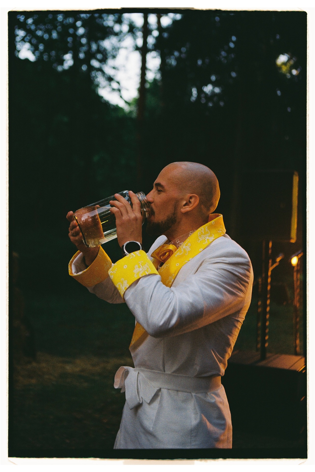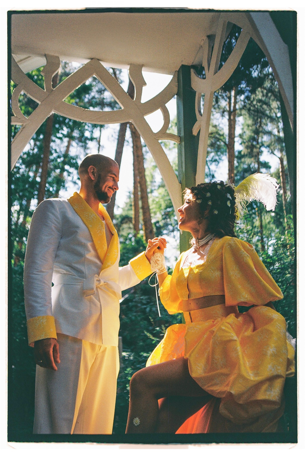 Традицию «украсть невесту» мы тоже обыграли: Дима строгал полено, выпил три литра берёзового сока, залез на дерево и угадывал свою «царевну» среди подружек в надувных лягушках.