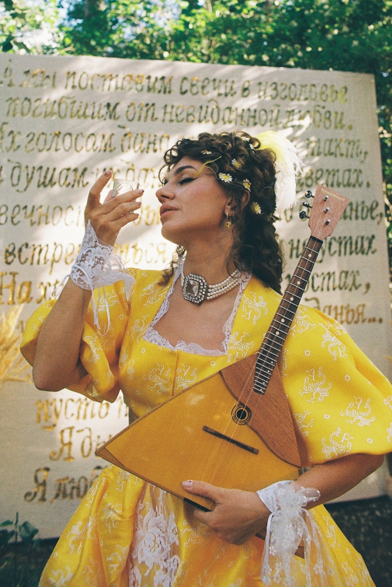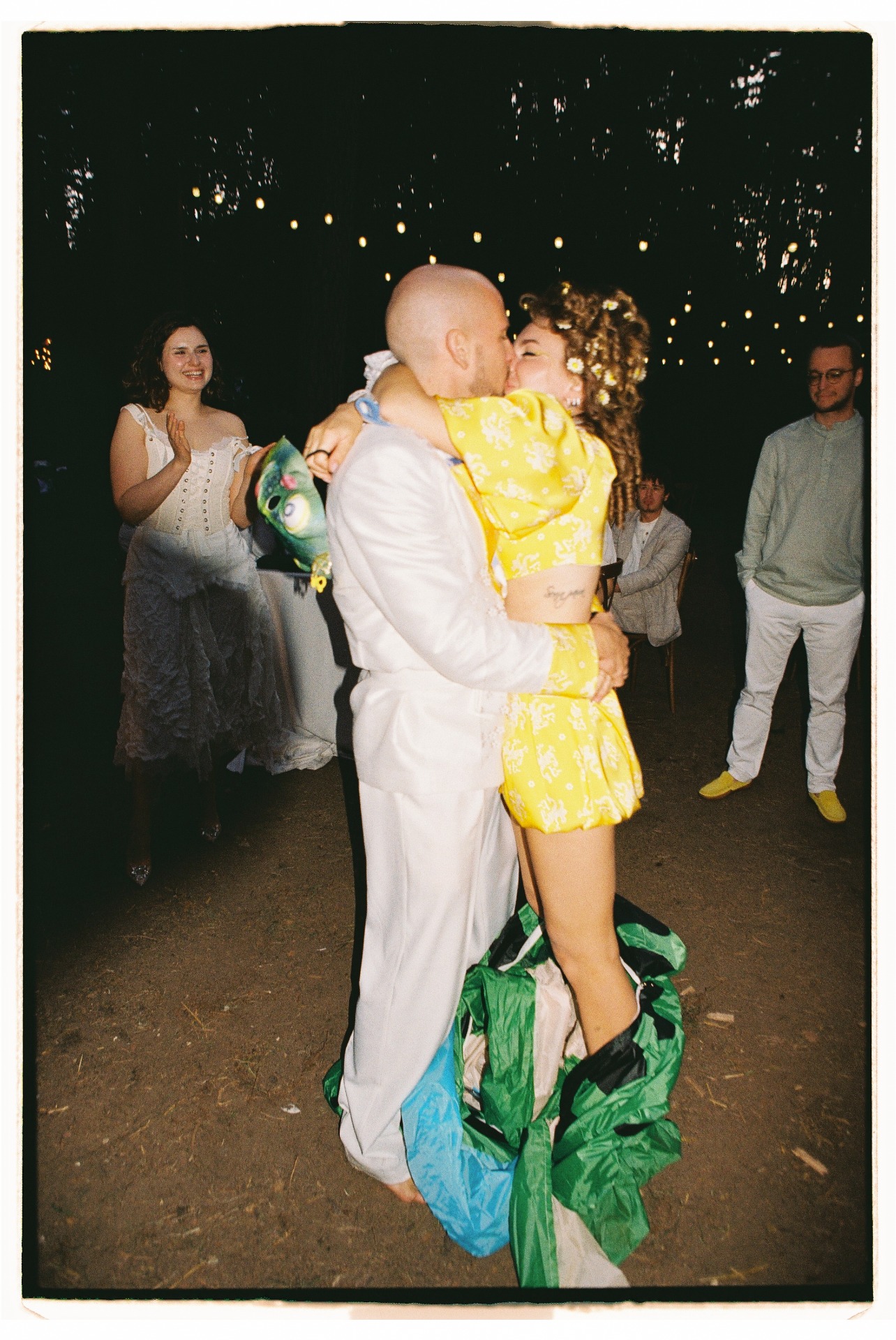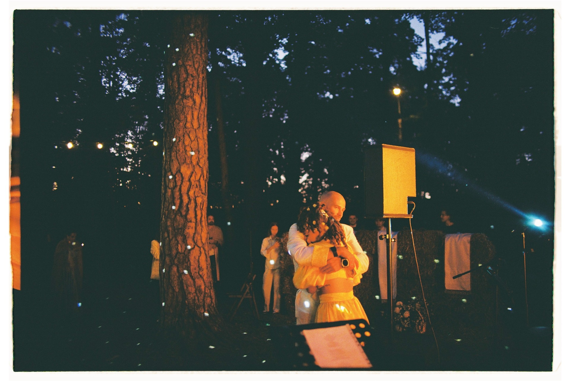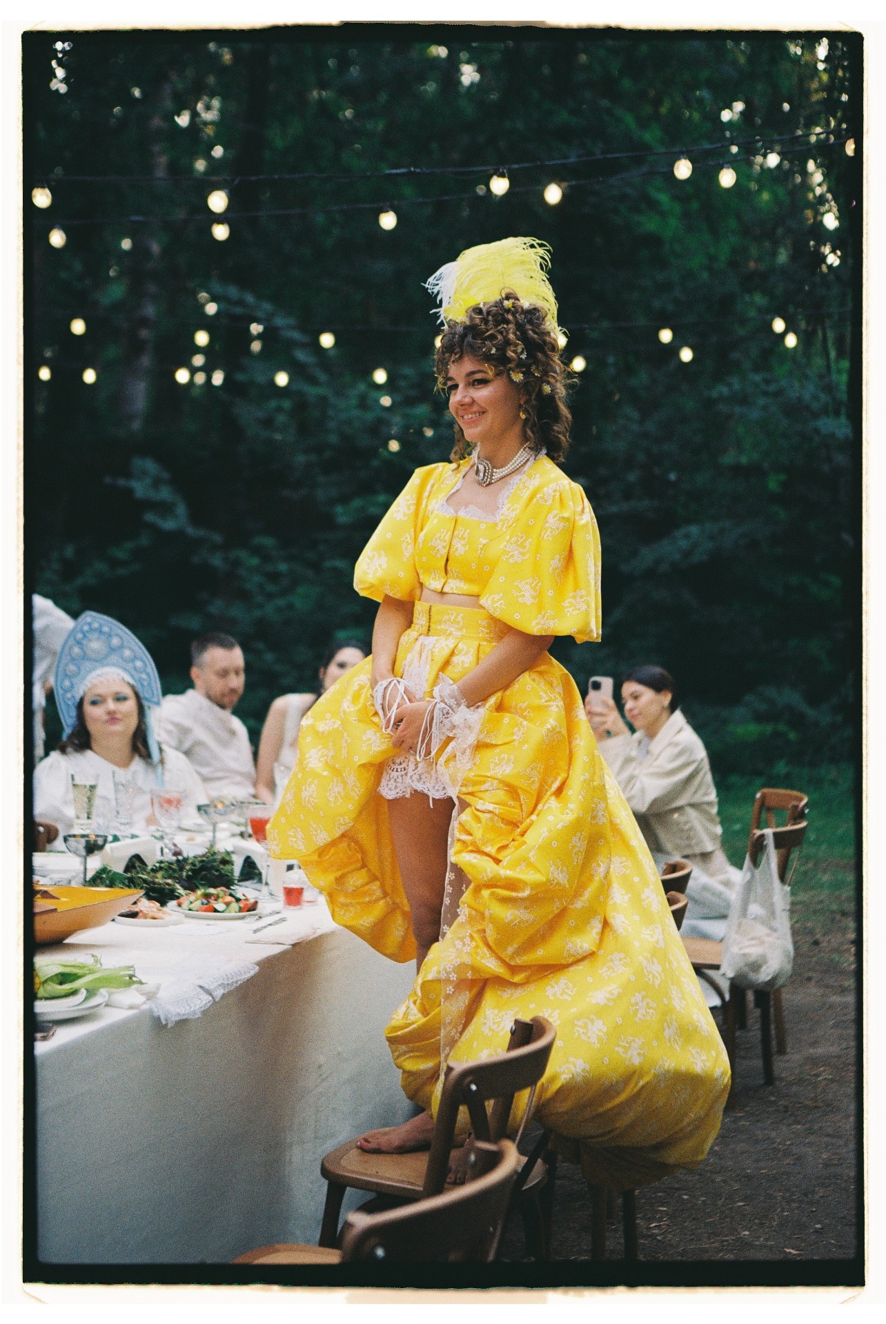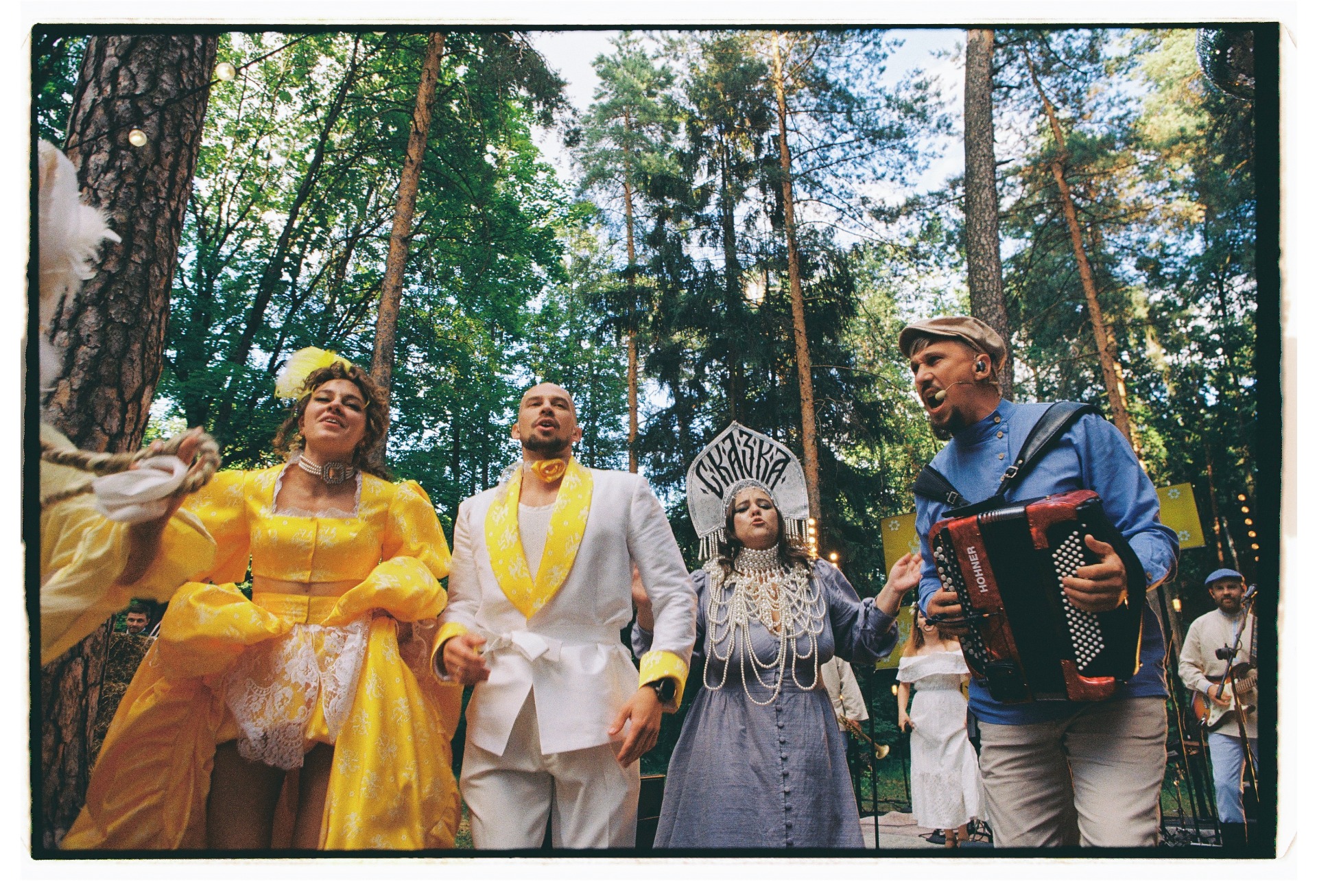 Ужин превратился в капустник: друзья выступали на сцене с творческими номерами. Вместо банкетных столов мы использовали сценические станки, чтобы гости могли танцевать прямо на них. На вечеринку со своей группой приехал наш «семейный баянист», Пётр, и шанса усидеть на месте уже не оставалось.