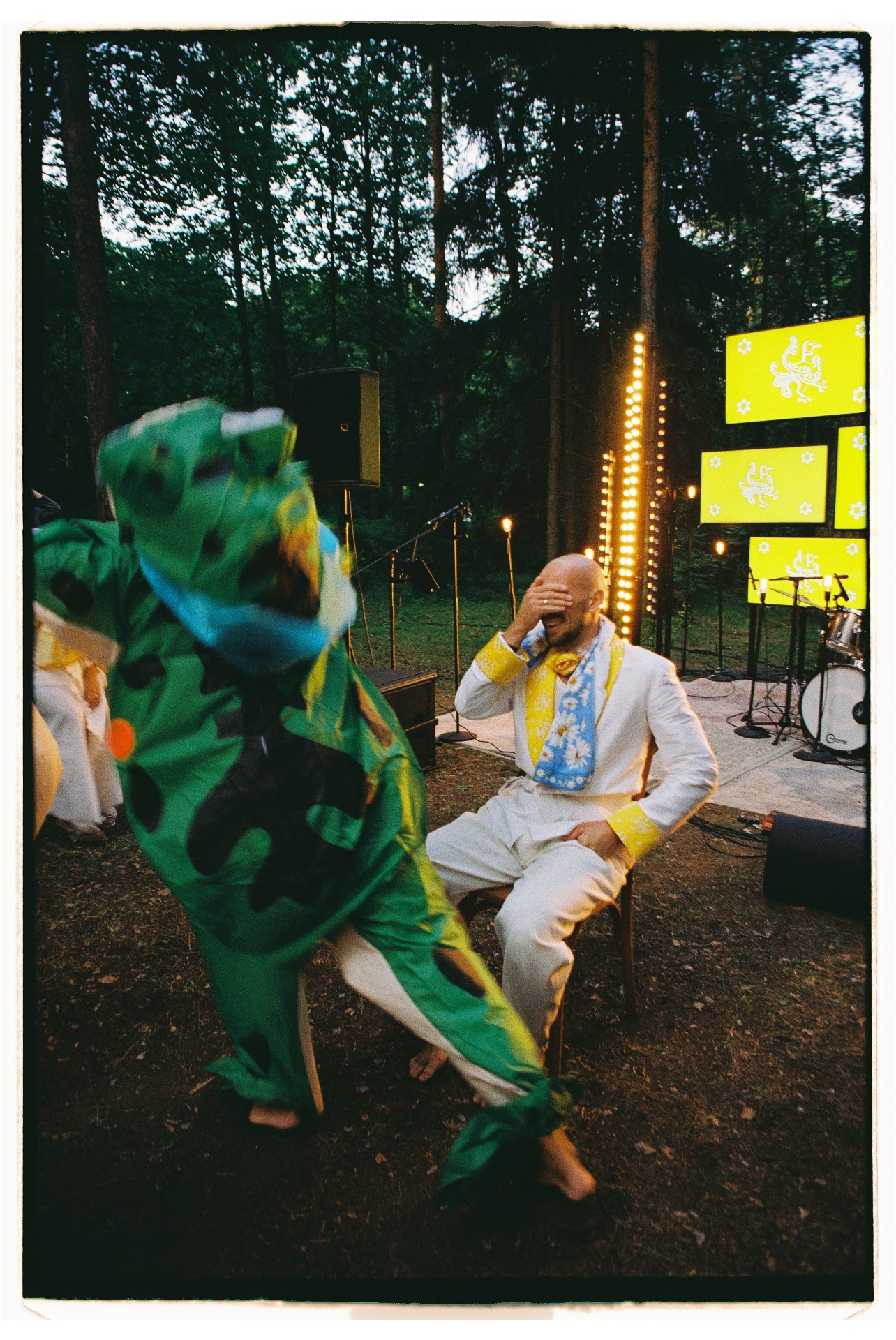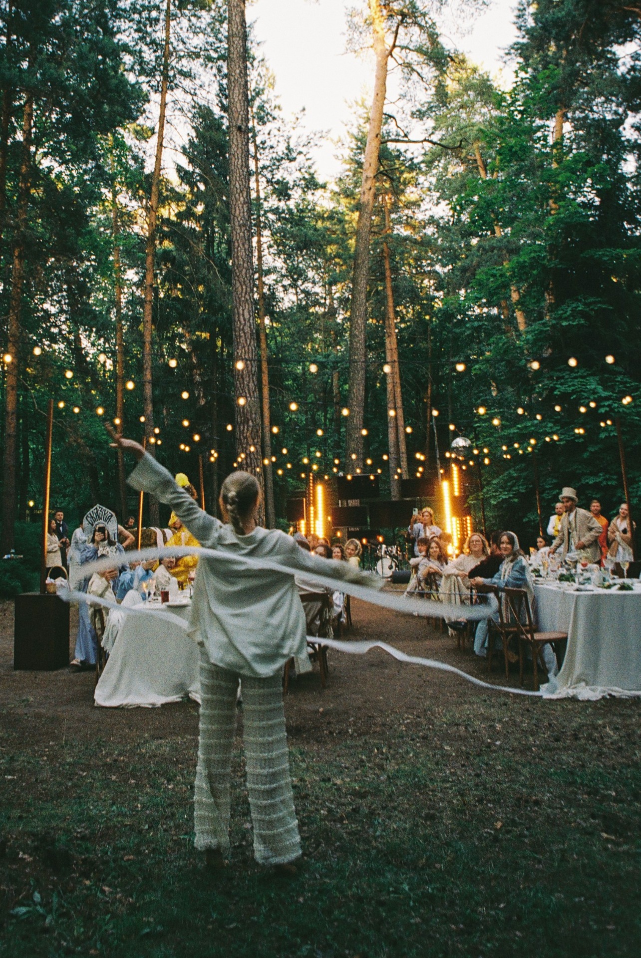 В качестве площадки мы выбрали дом в Серебряном бору с большой поляной, чтобы можно было плясать на столах и петь до рассвета. Для привлечения хорошей погоды мы даже ночью закопали сосиски на Тверской.