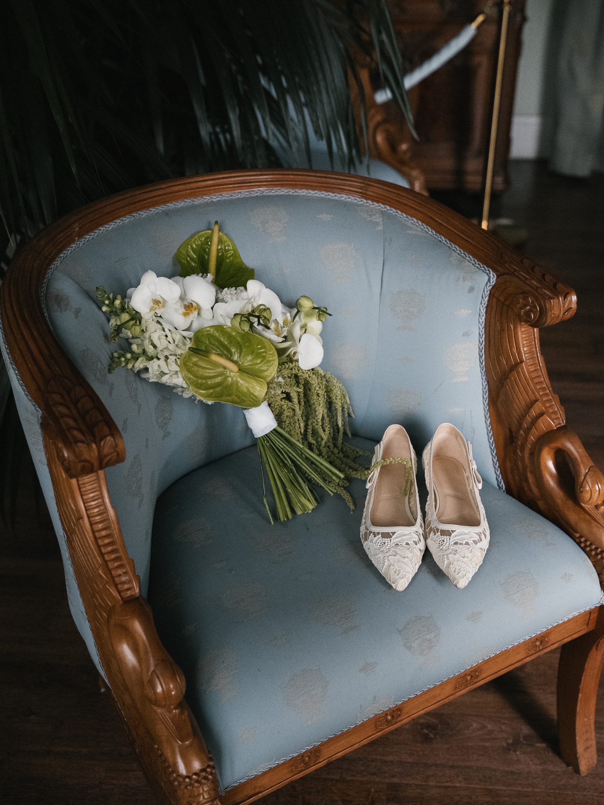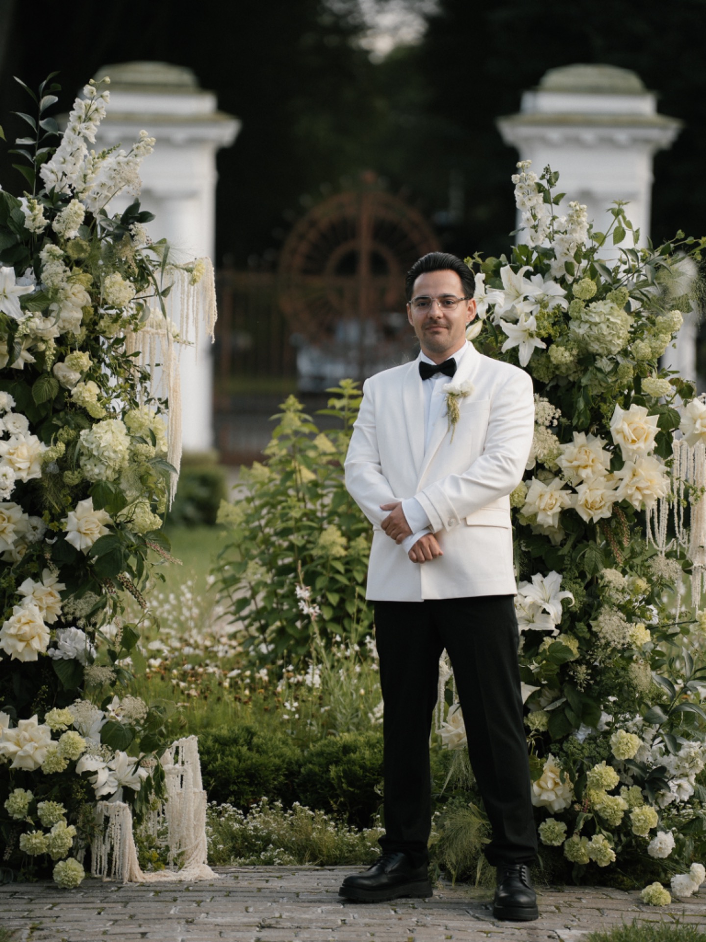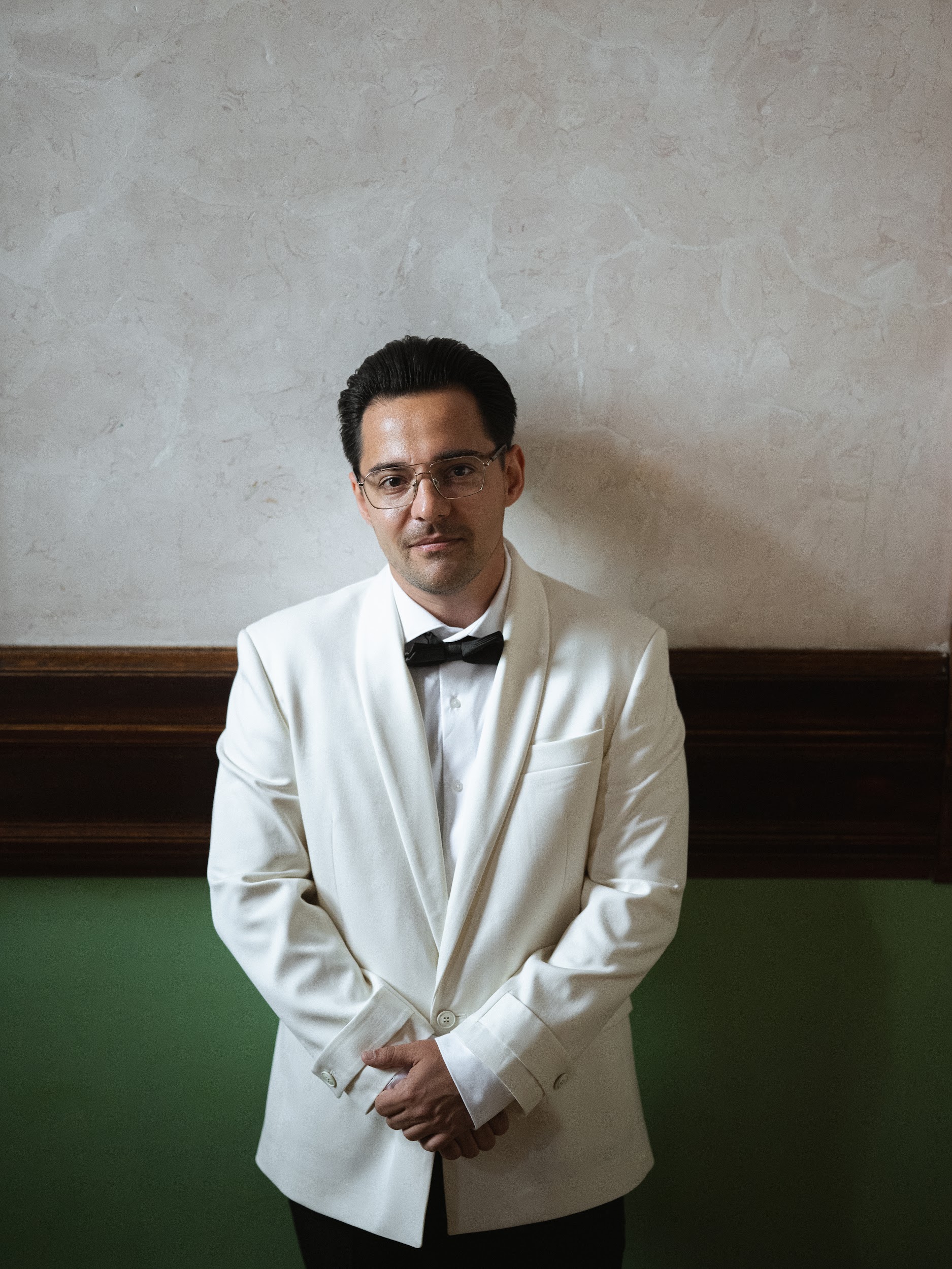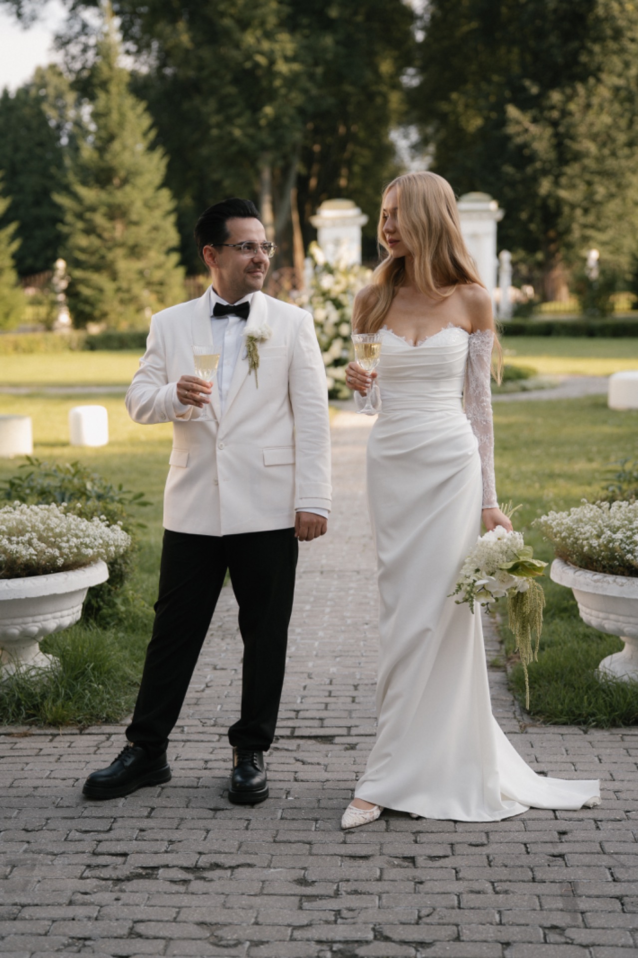 Образы мы выбирали вместе. Организатор подготовила для нас мудборд, и мы отправились в салоны и ателье на поиски. Нам обоим хотелось остаться верными классическим нарядам, которые подчеркнули бы нашу индивидуальность и гармонично вписались в концепцию.