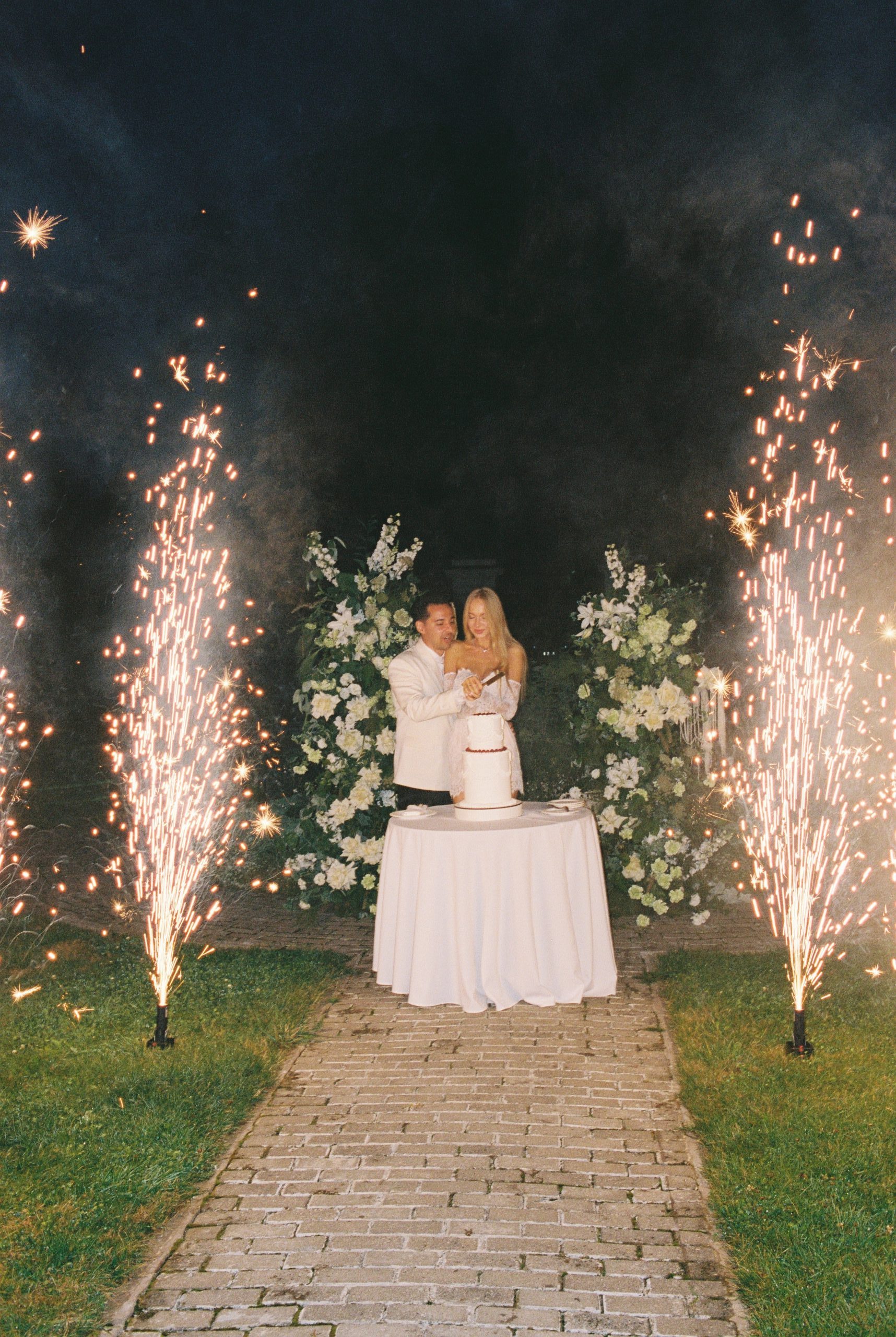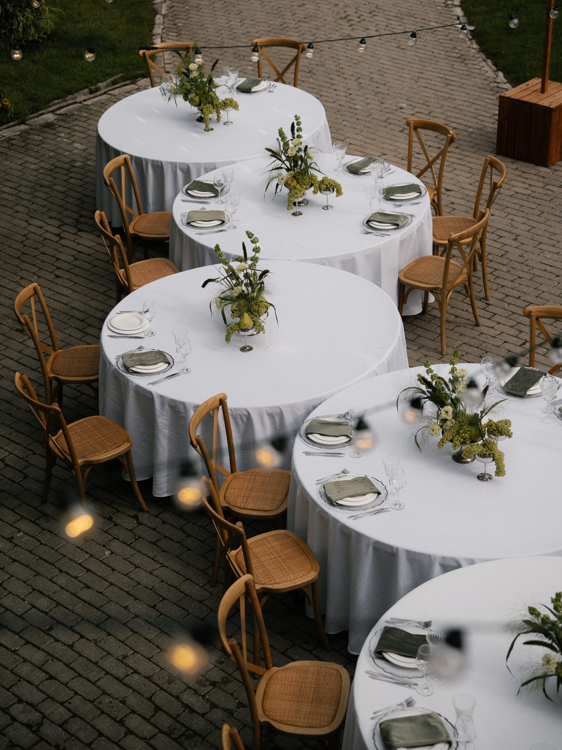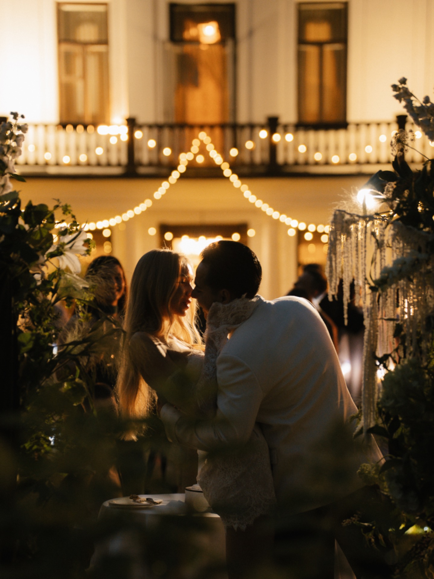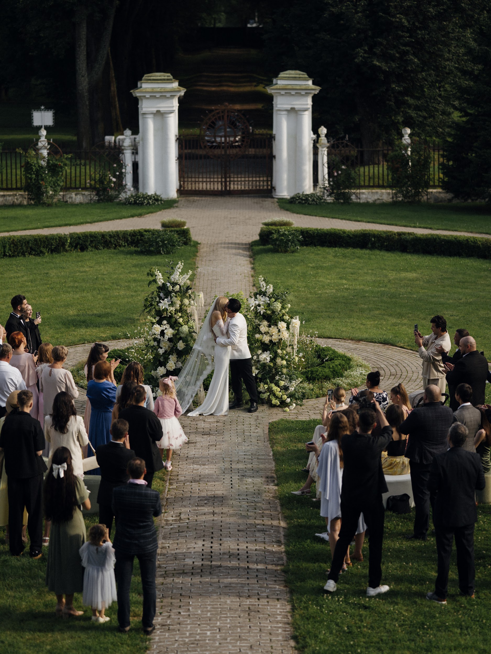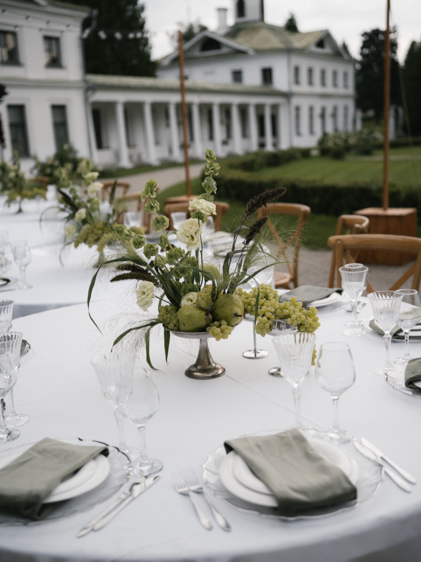 Торжество было продумано до мелочей. Мы разделили площадку на две зоны: одна — для ужина в парадном дворе особняка с необычной расстановкой столов, вторая — для вечеринки с кавер-группой, коктейльным баром и лаундж-зонами. Мы успели насладиться каждым моментом. От трогательной церемонии до окончания шумной вечеринки.