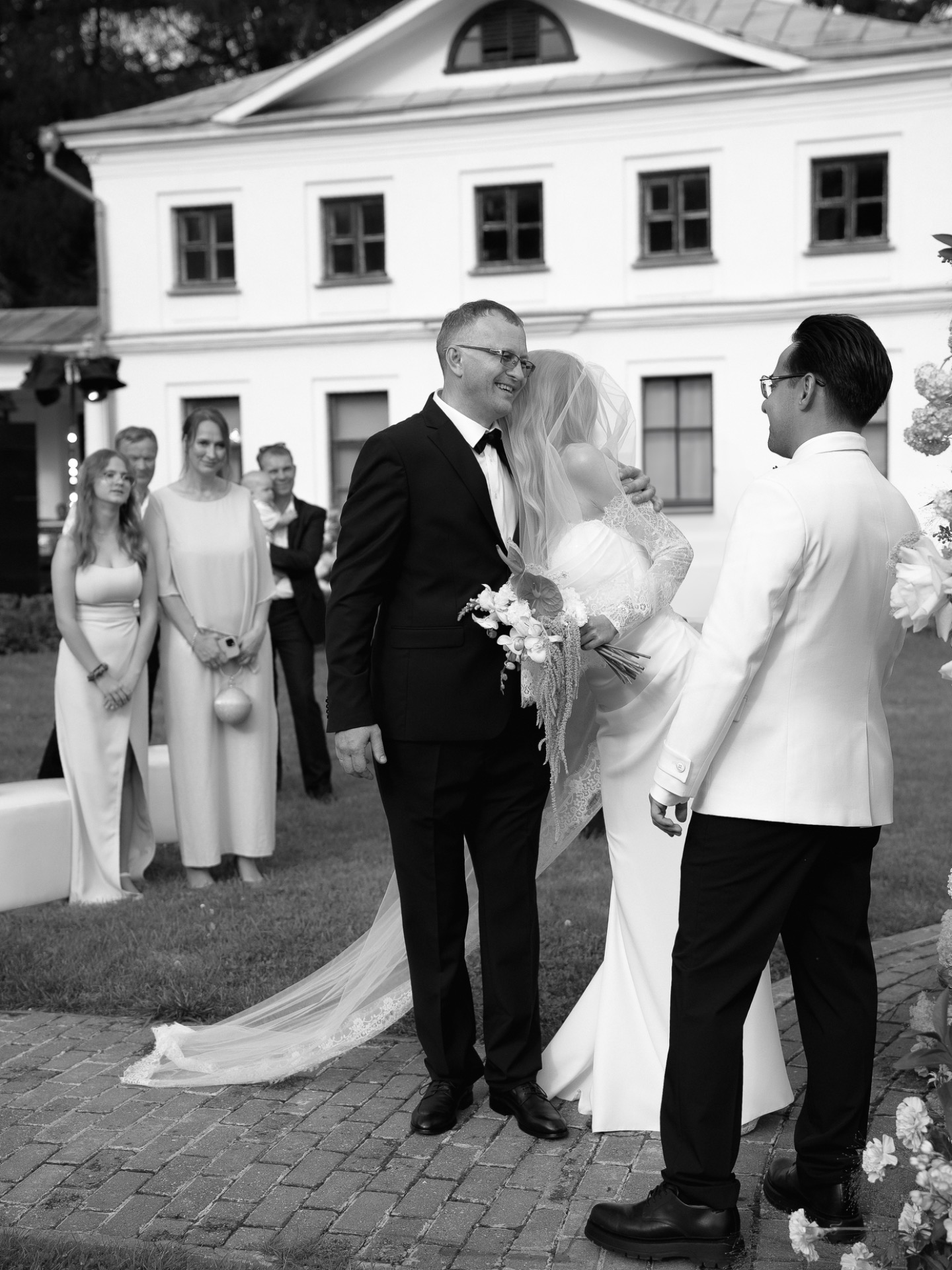 Одним из самых волнительных моментов стала встреча с папой перед церемонией. У меня появилось ощущение, будто я перешагнула какой-то невидимый рубеж. Наша церемония выглядела настолько кинематографично, что мне до сих пор иногда кажется, что я видела этот момент в фильме, а не проживала его на своей свадьбе.
