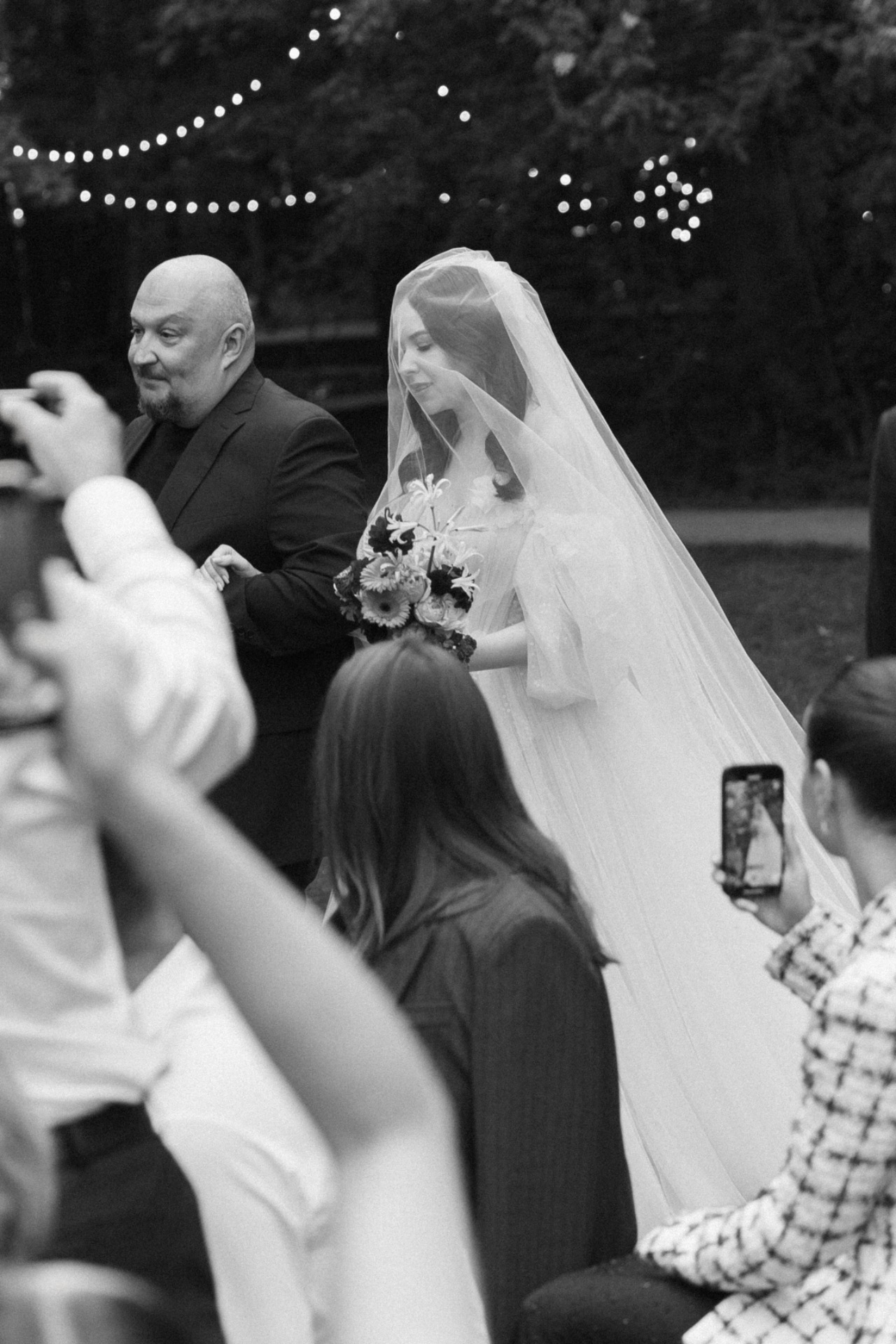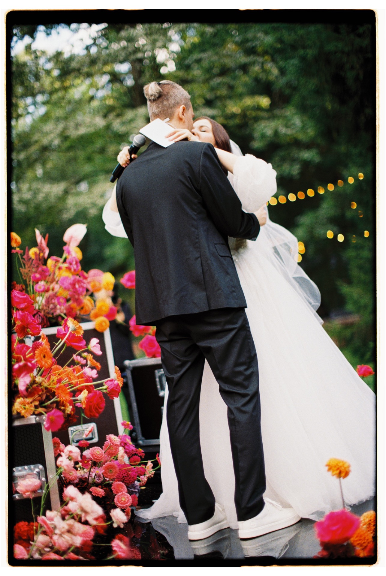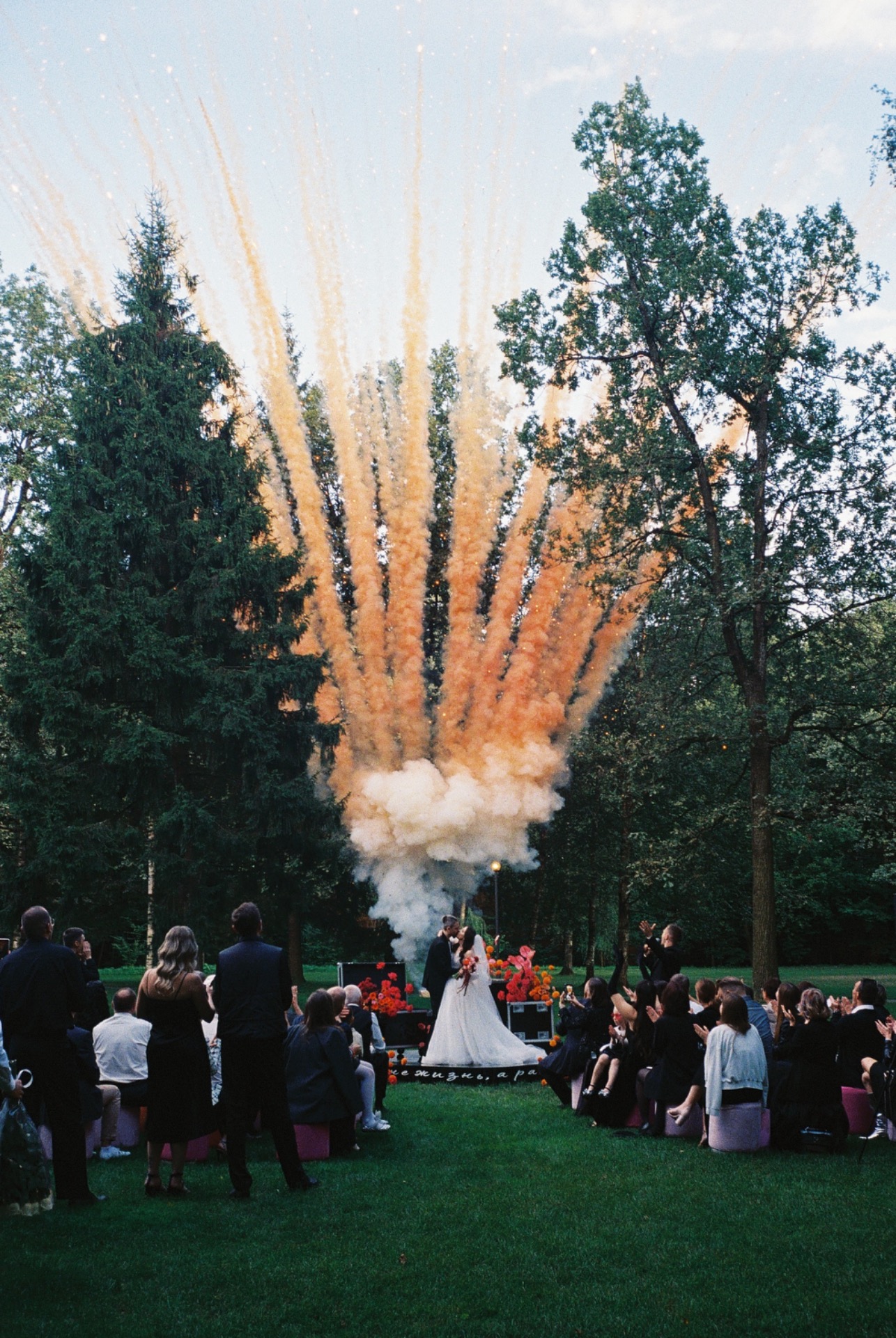 Волнение накрыло меня только перед церемонией: я боялась не сдержать эмоций и не сказать всё, что хотелось уместить в клятве. Эта часть получилась невероятно трогательной, и сейчас, глядя на фото, я будто снова проживаю тот момент. Завершилась церемония так же ярко, как и началась — дневным фейерверком, о котором я мечтала с самого начала подготовки.