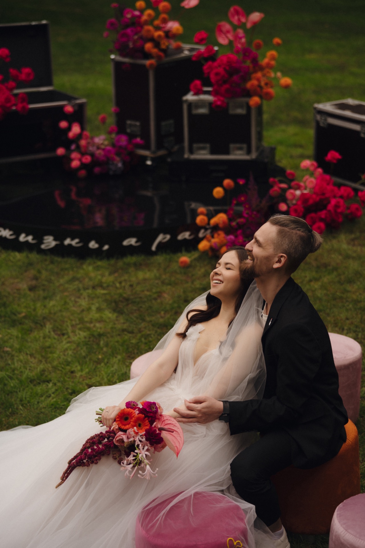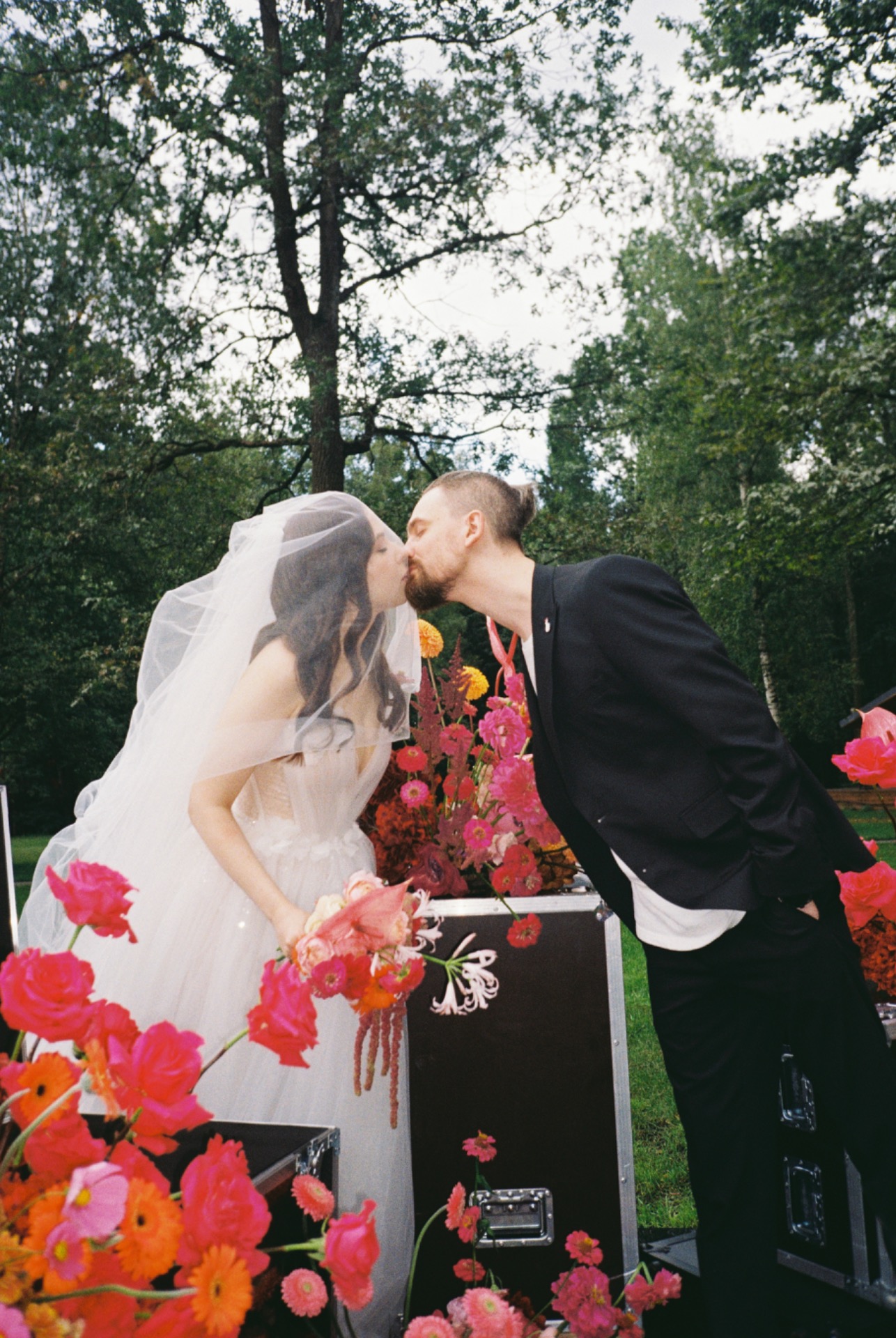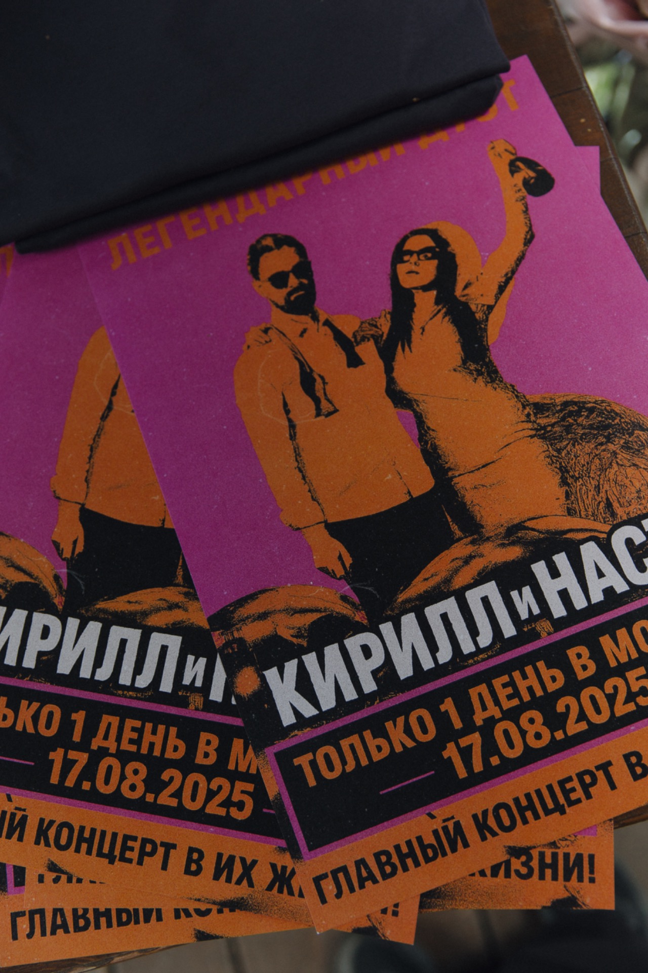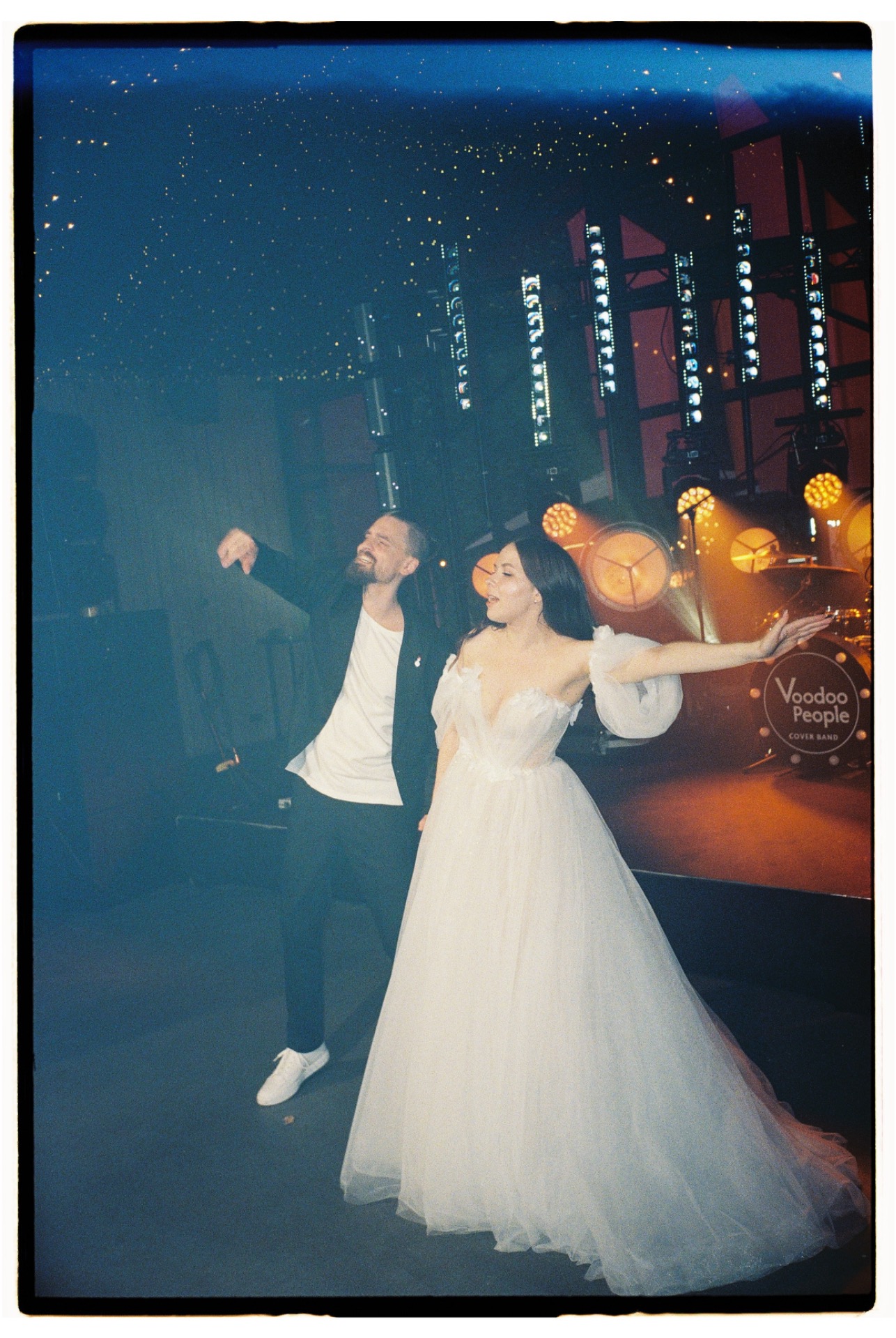 В процессе подготовки родилась наша концепция, где свадьба стала главным концертом нашей жизни. Мы с Кириллом обожаем музыку и концерты, особенно The Hatters, поэтому было решено добавить в праздник много символичных деталей — от музыкальных кофров в зоне церемонии до персонального мерча.