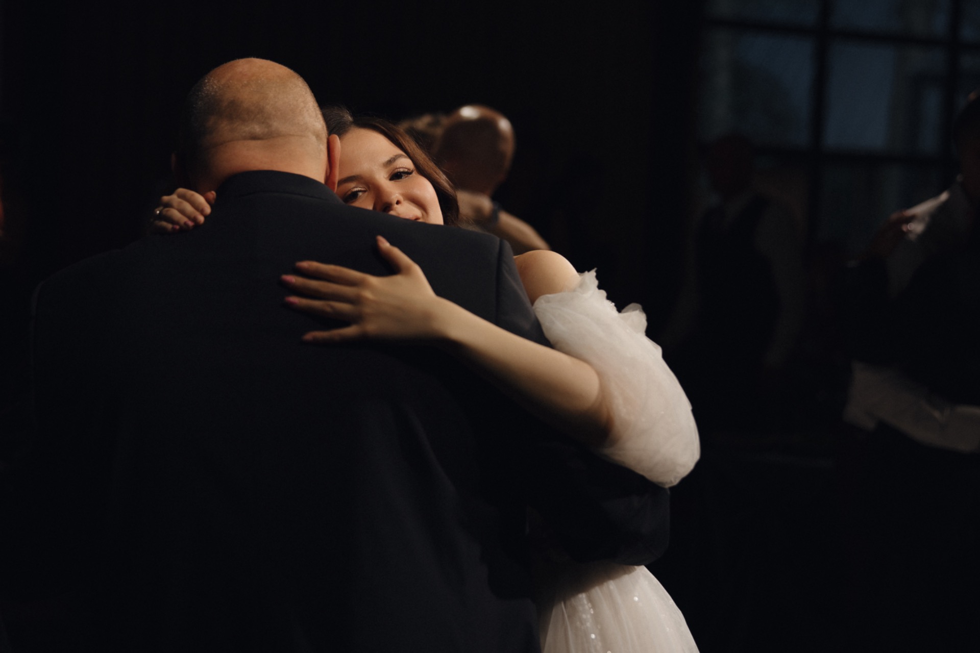 Наш первый танец с Кириллом тоже был волнительным. Мы долго думали о подготовке с хореографом, но всё-таки воспользовались онлайн-постановкой и репетировали дома. Мы немного переживали за поддержки, но всё получилось как надо. Танцевали мы под трек «Девушка и граф» группы «Король и Шут», получилось искренне и очень по-нашему.