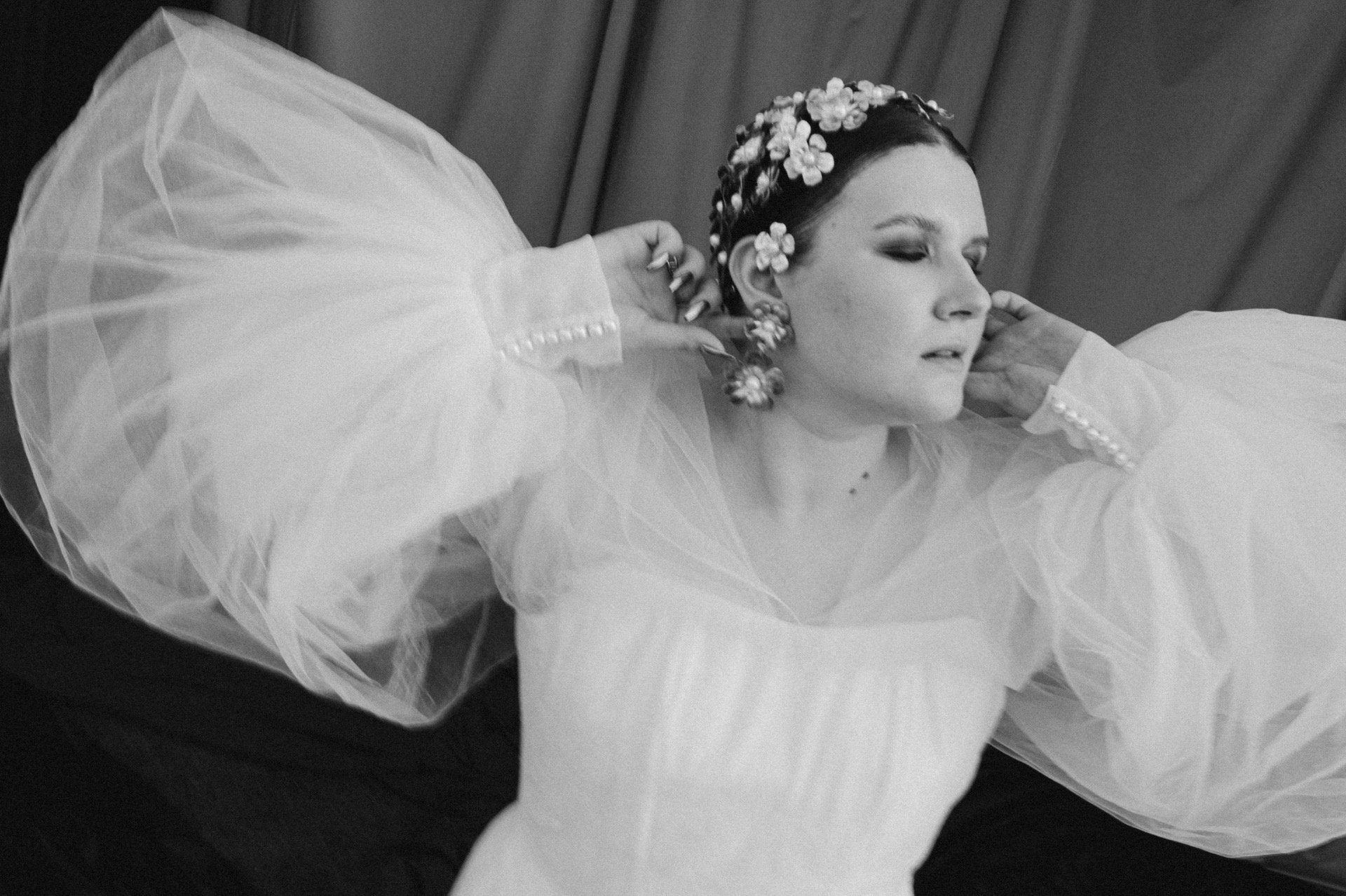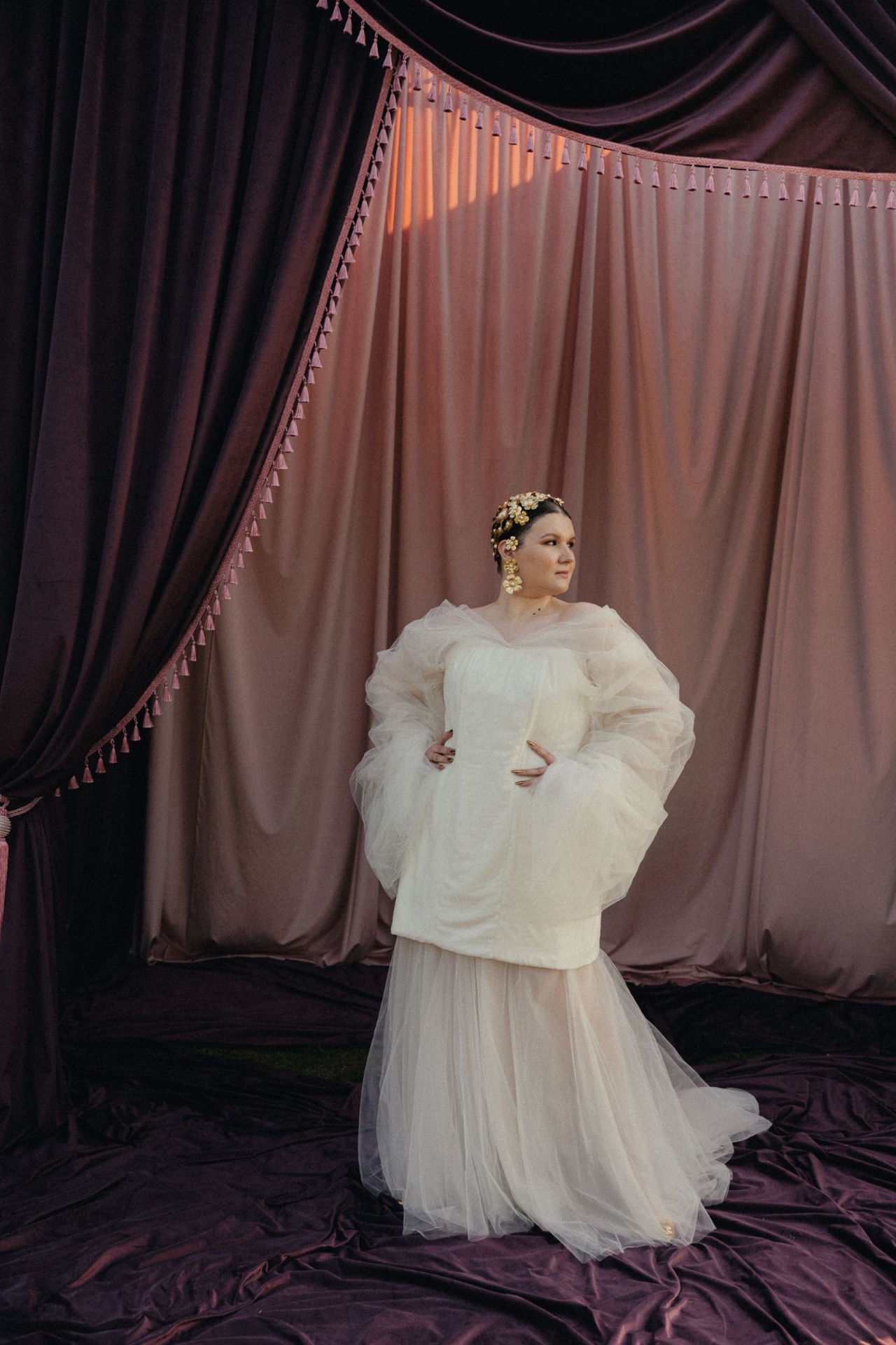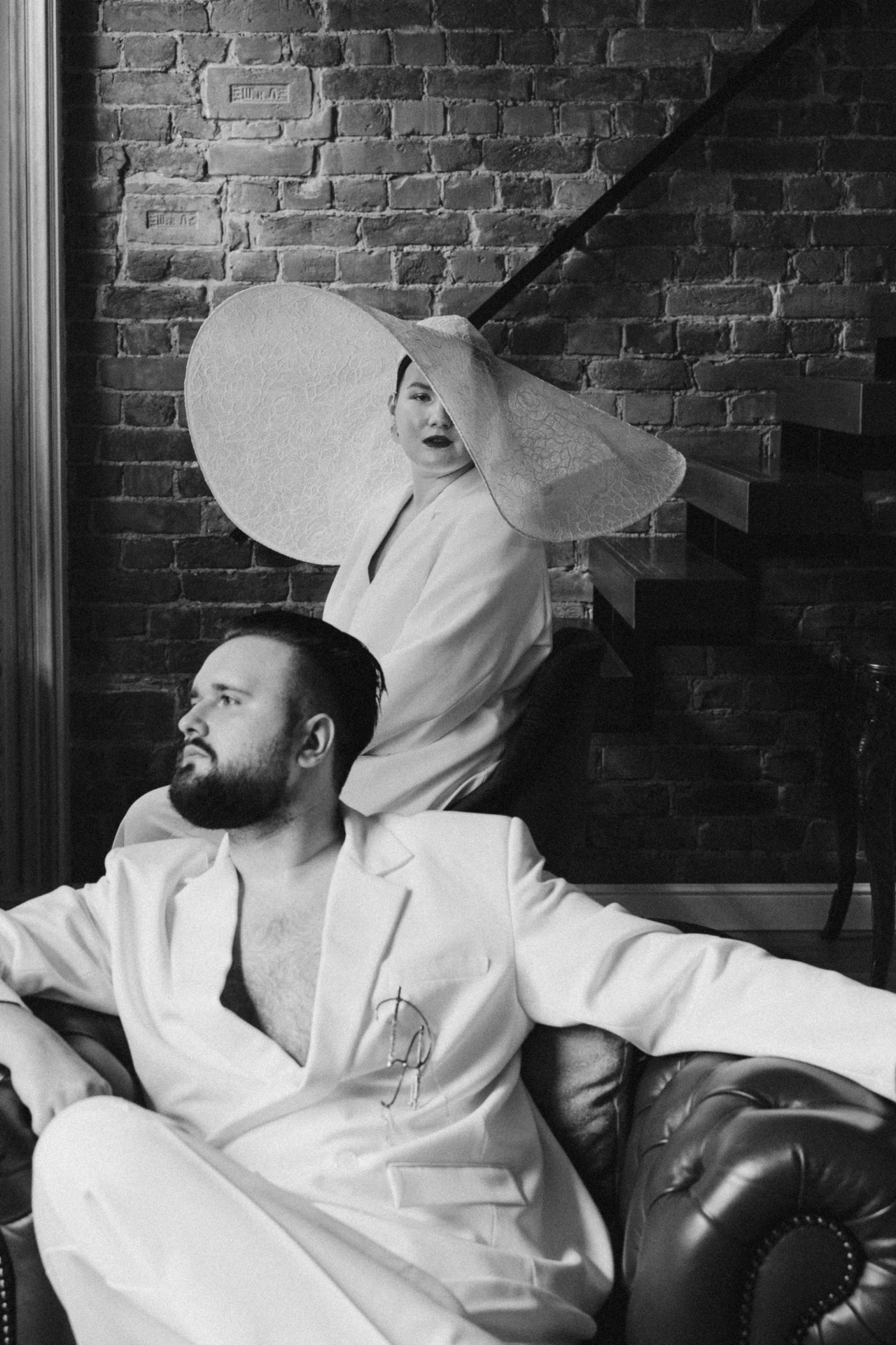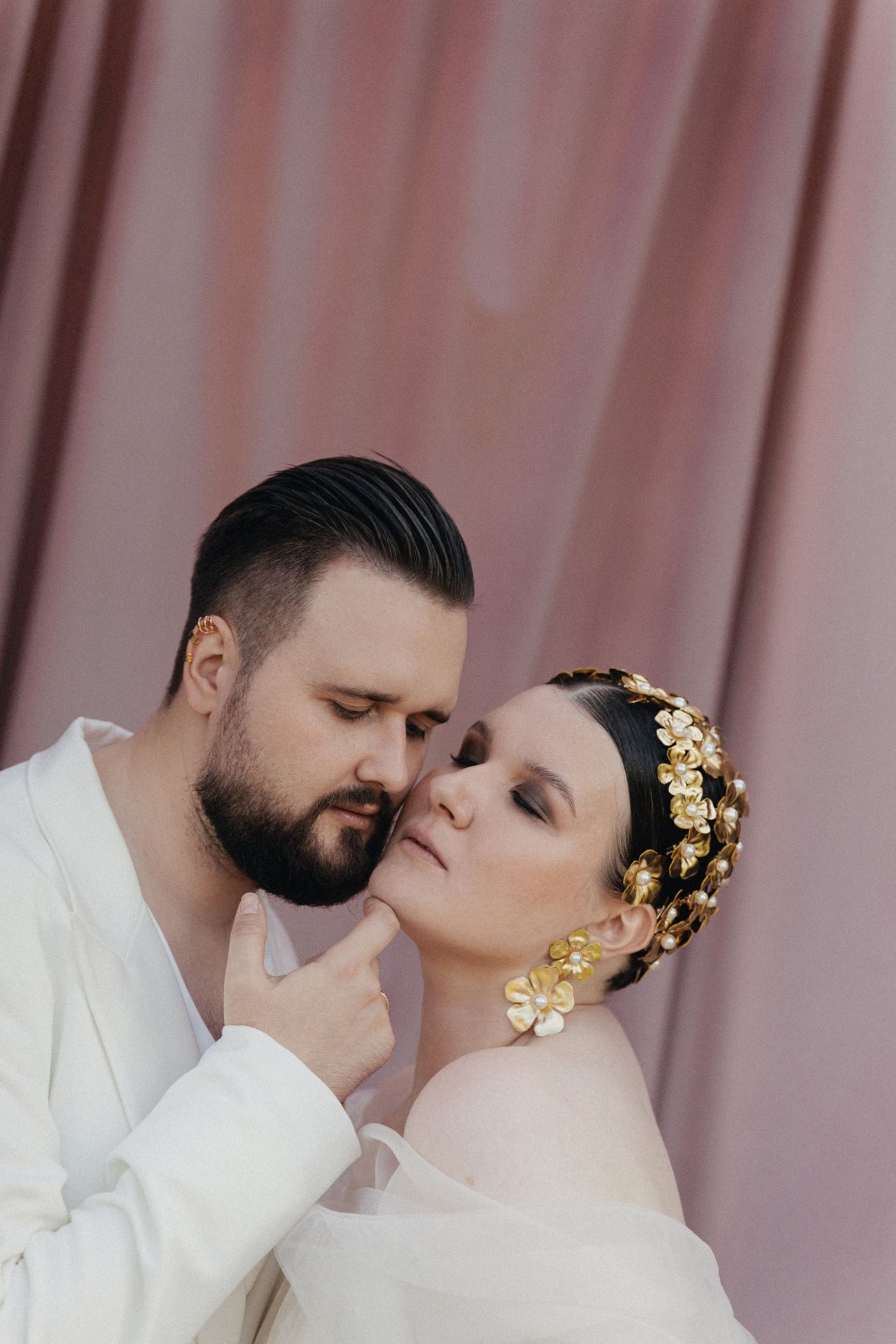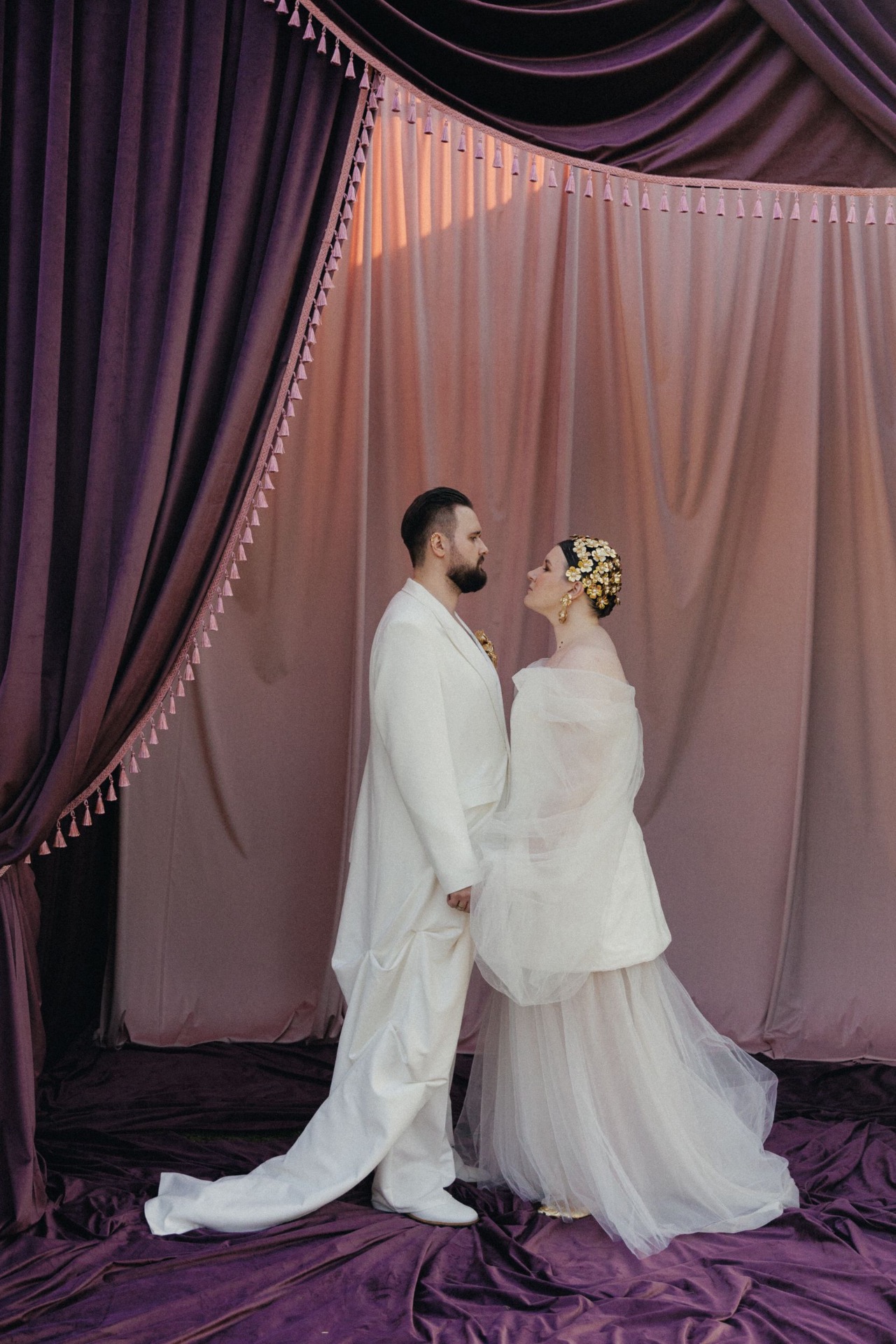 Каждый образ разрабатывался совместно с нереальным стилистом, которая очень точно поняла нас и наш стиль. Она собрала мудборды, нашла всех дизайнеров и мастеров, всегда была на связи и присутствовала на всех примерках.