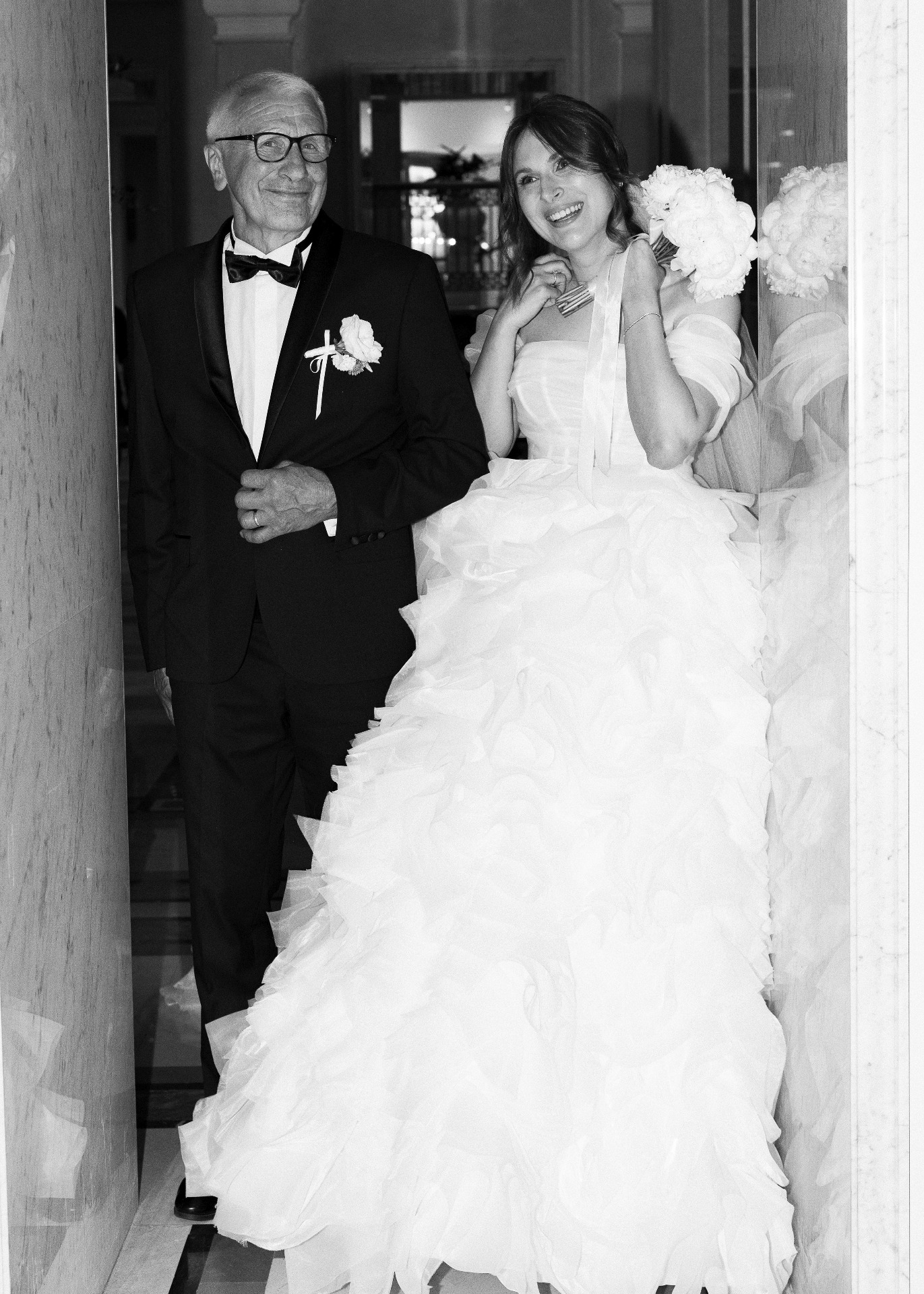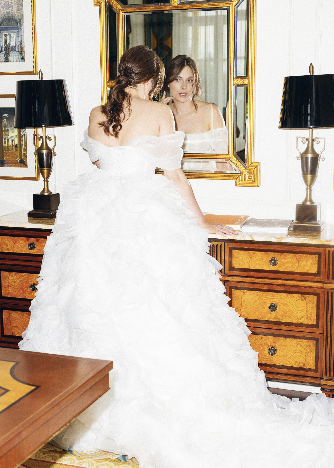 У меня было два платья. Первое – роскошное, пышное, многослойное для церемонии и первой части ужина, а второе более лёгкое, минималистичное и свободное для танцев.