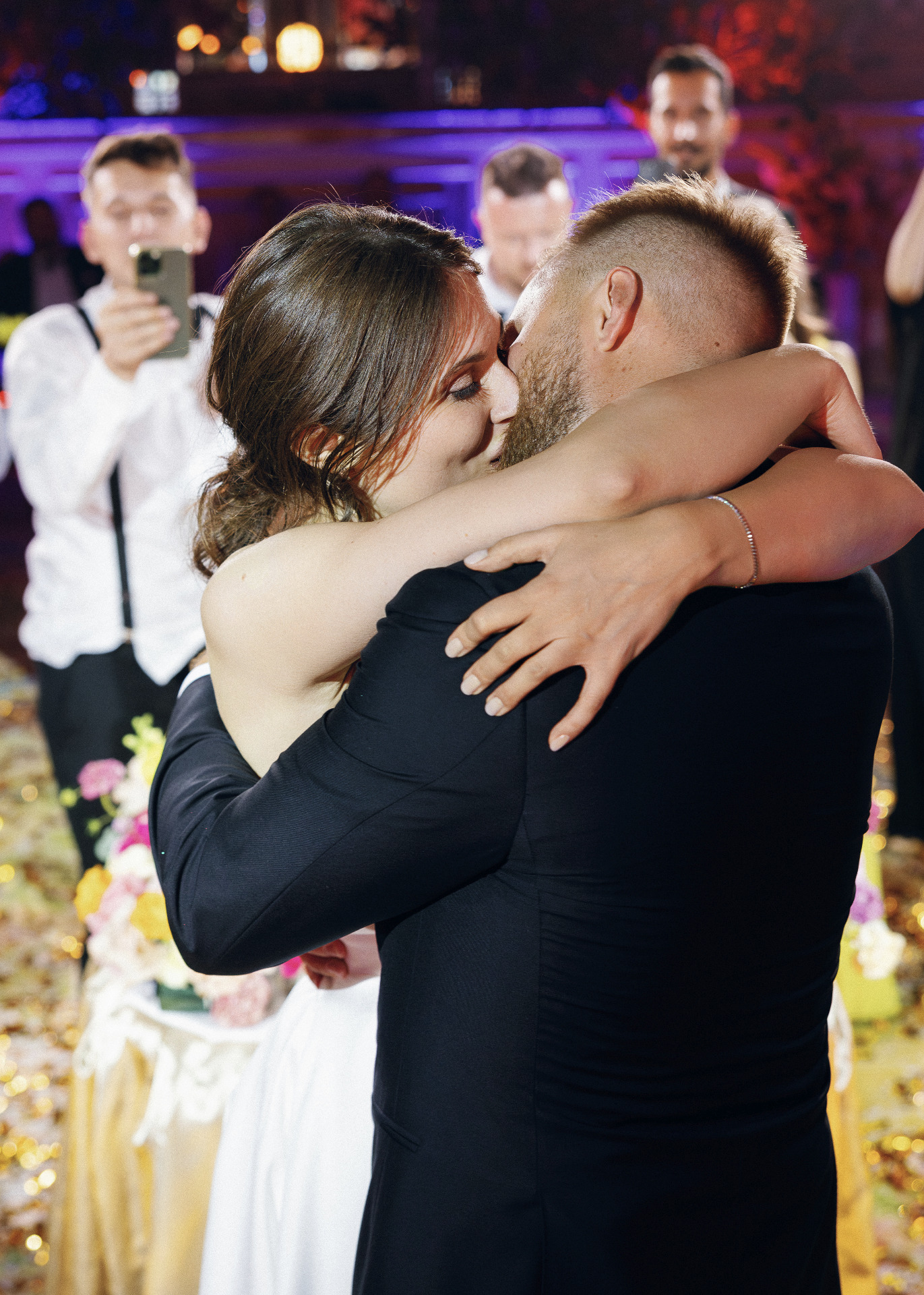 Всё пролетело на одном дыхании, свадьба получилась не классическая. После церемонии мы общались с гостями, фотографировались и принимали поздравления в Xander баре. А через пару часов мы спустились на ужин.