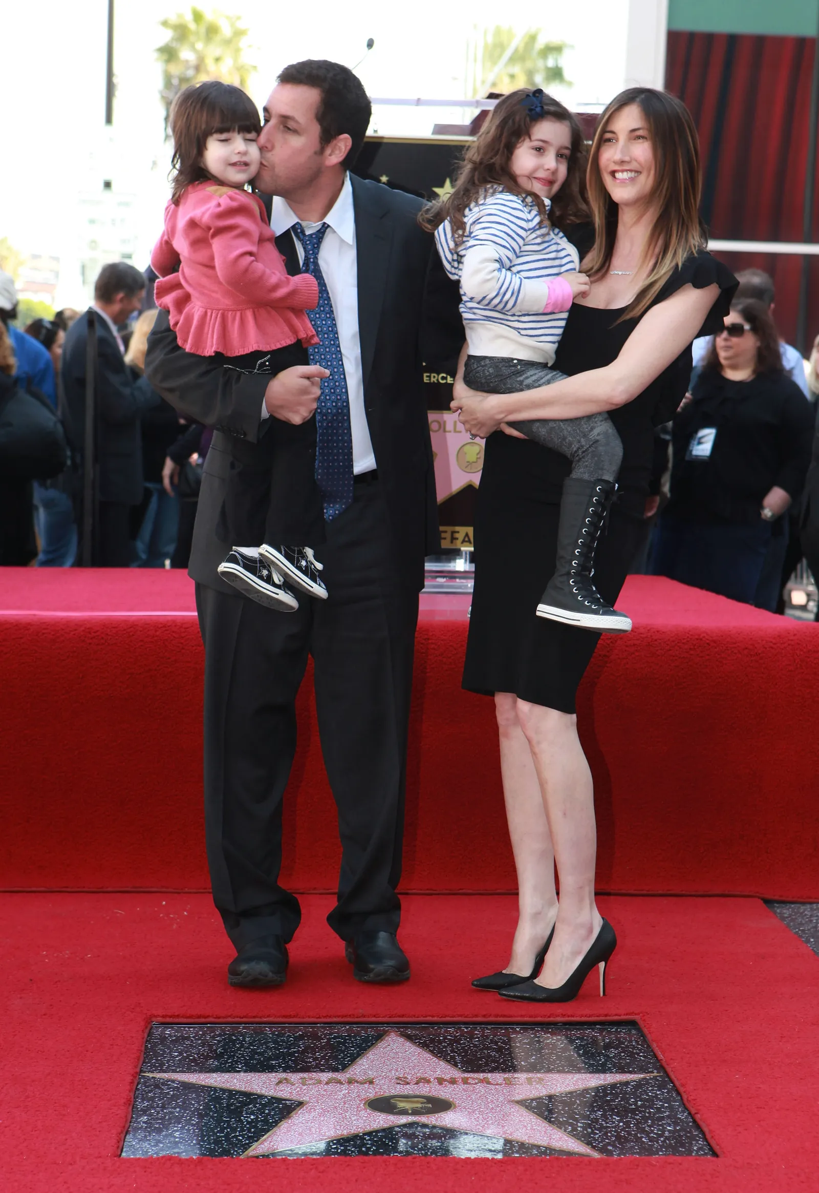 Адам и Джеки Сэндлер встретились в 1999 году на съёмках фильма «Большой папочка», где Джеки играла роль официантки, и вскоре стали жить вместе, поженившись в 2003 году на берегу океана. Пара воспитывает двух дочерей, Сэди и Санни, и часто работает вместе, появляясь на съёмочных площадках и красных дорожках.