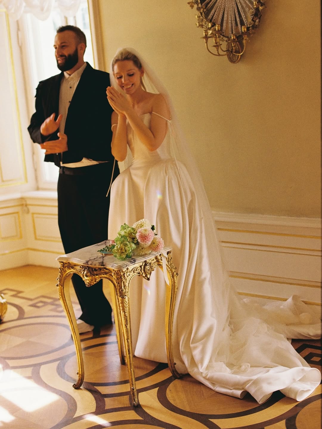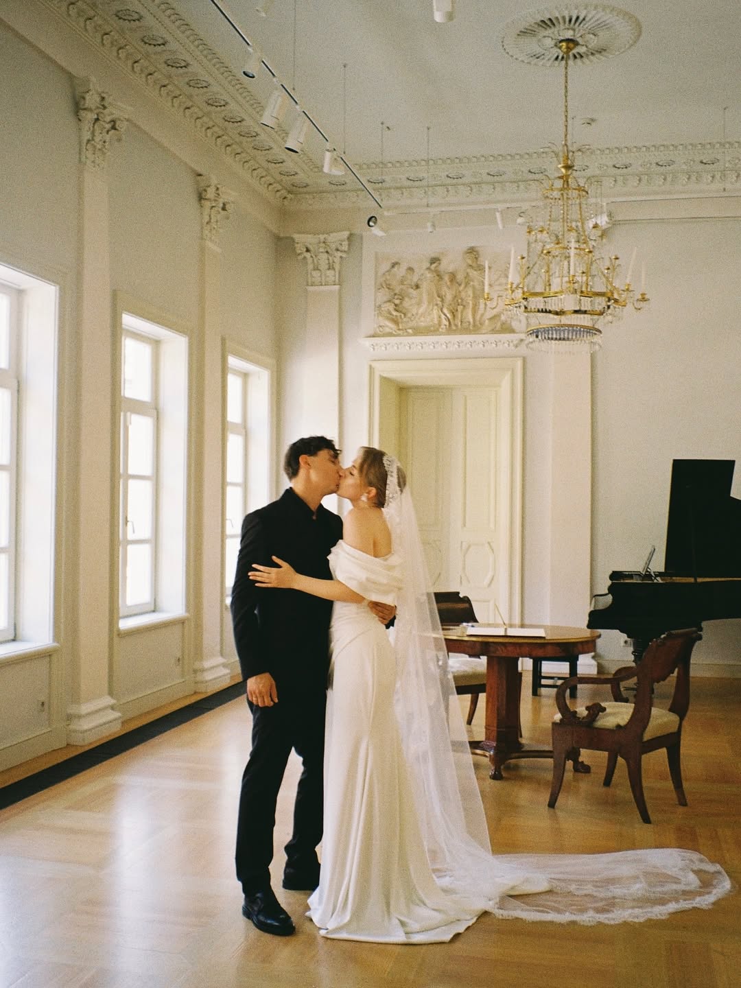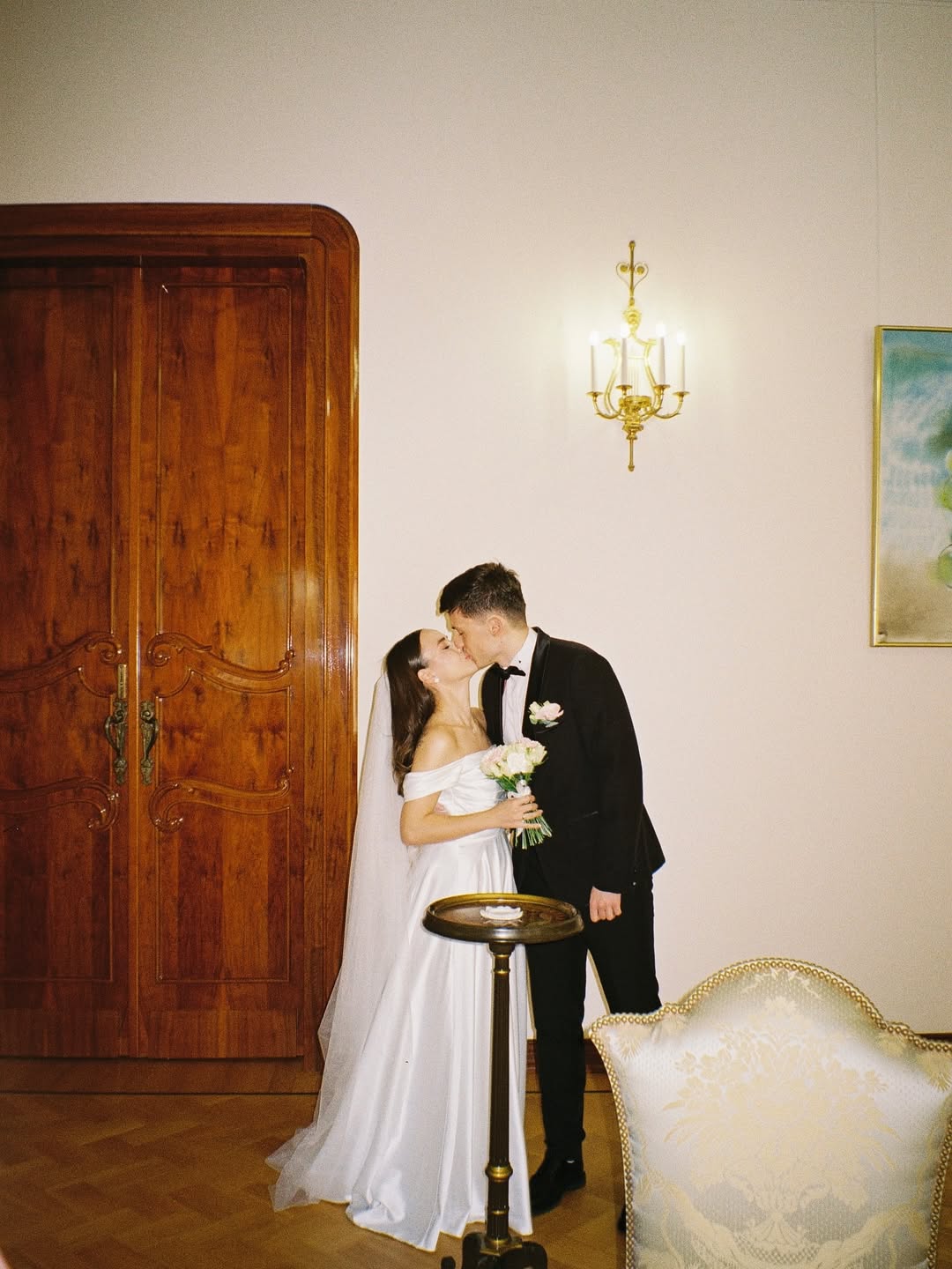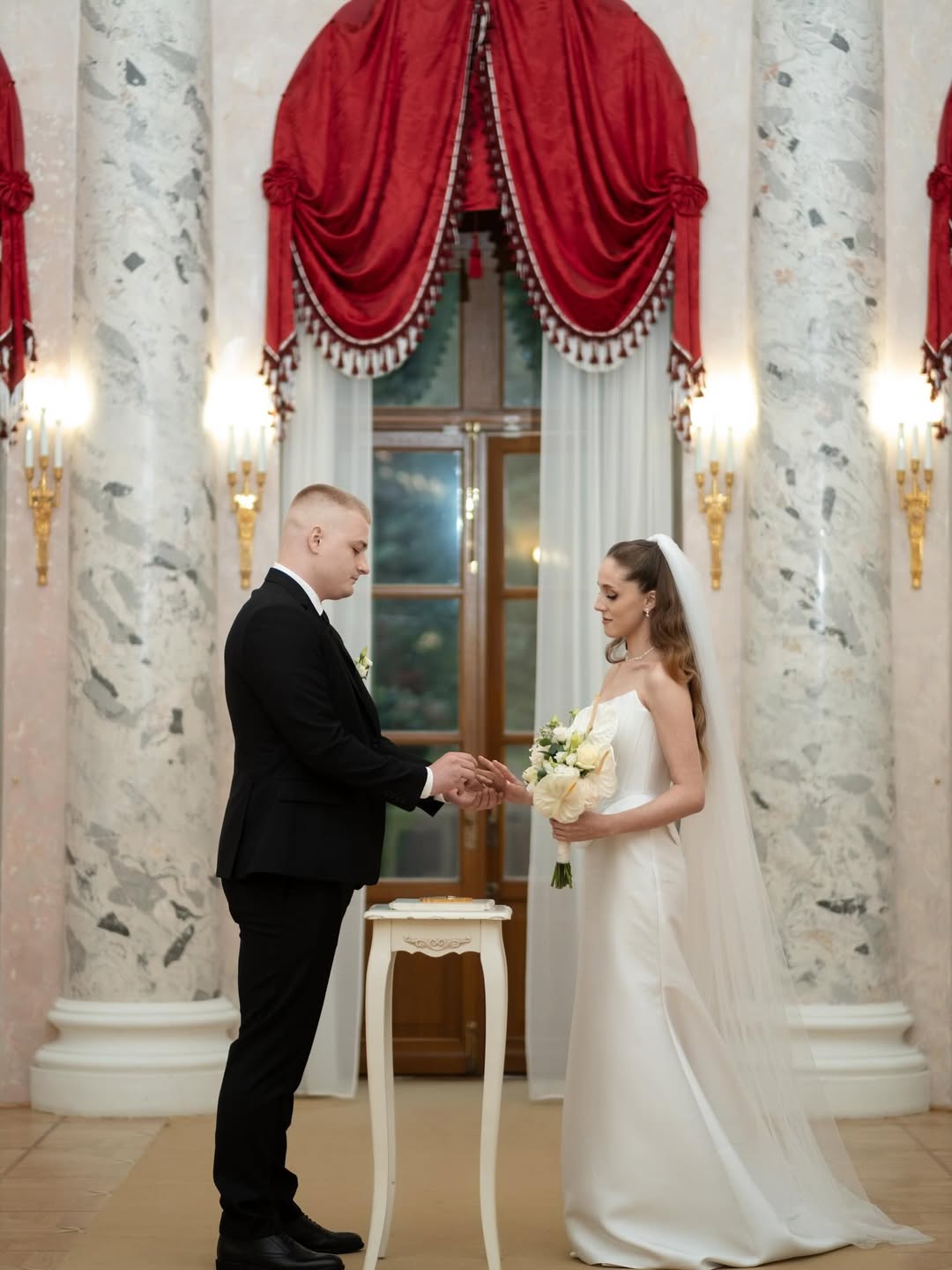 Мне особенно нравится снимать в Грибоедовском ЗАГСе в будние дни — когда там спокойно и просторно, съемка получается намного комфортнее. Можно без спешки искать красивые ракурсы, поиграть с глубиной кадра и светом.