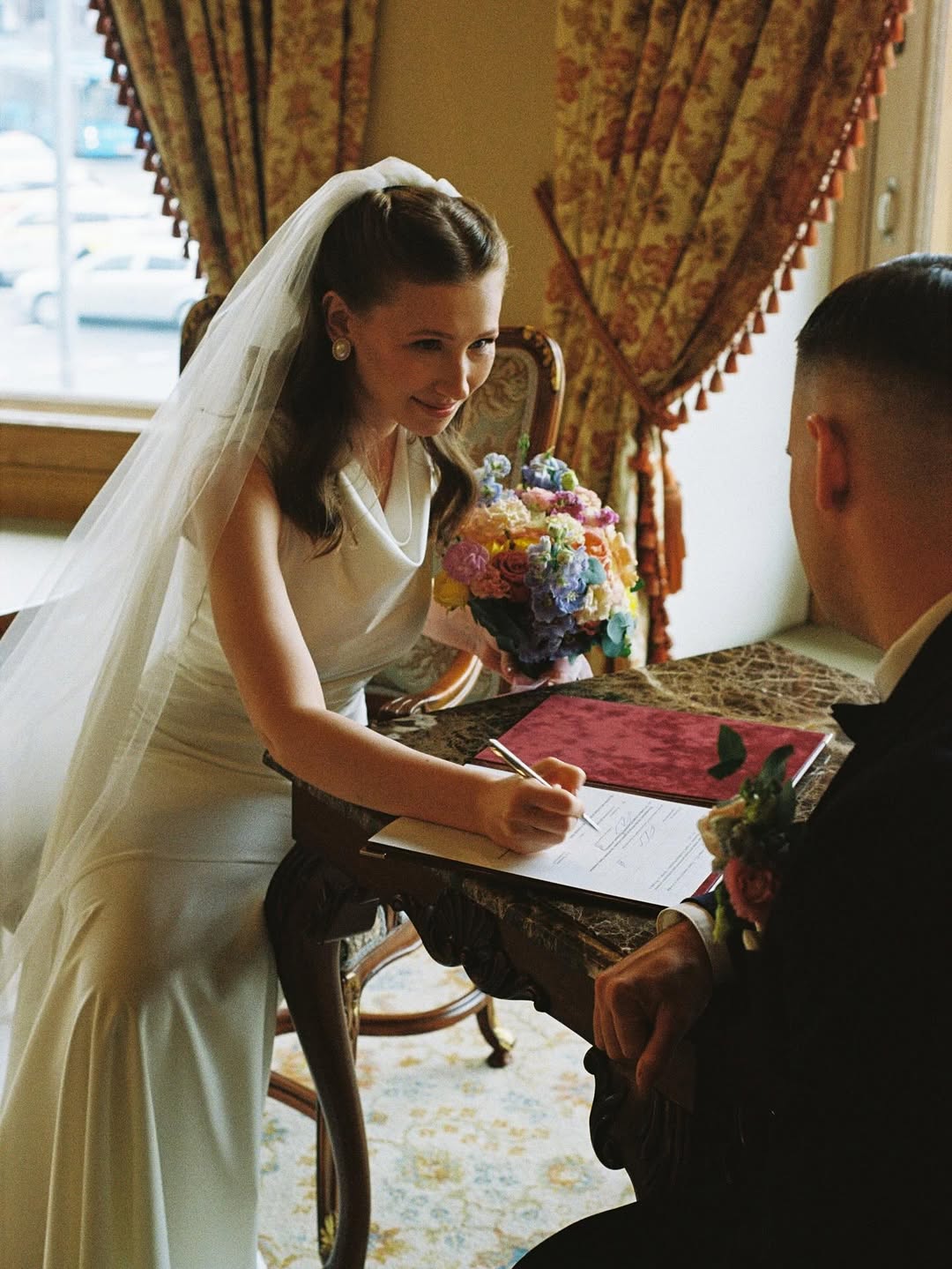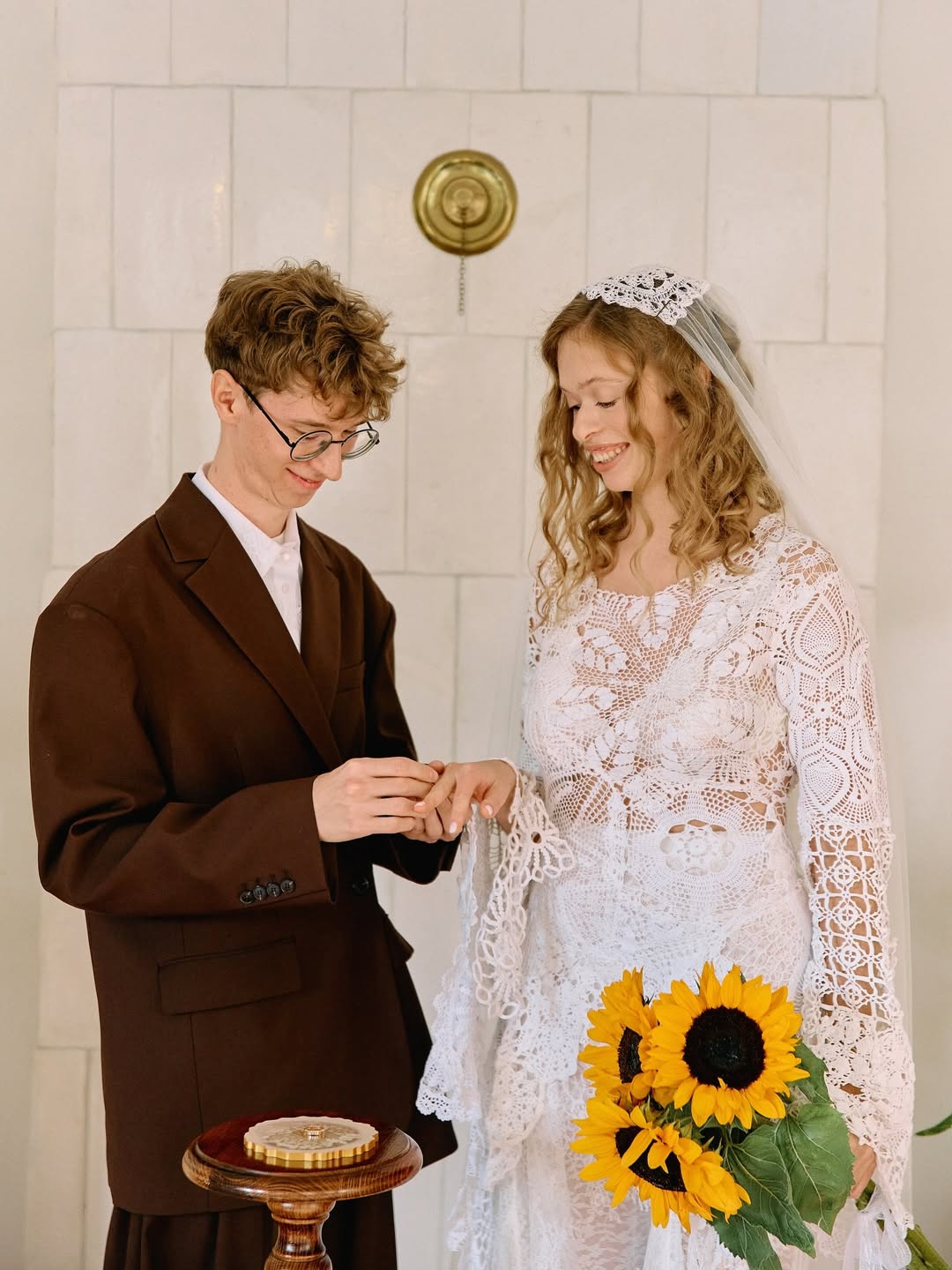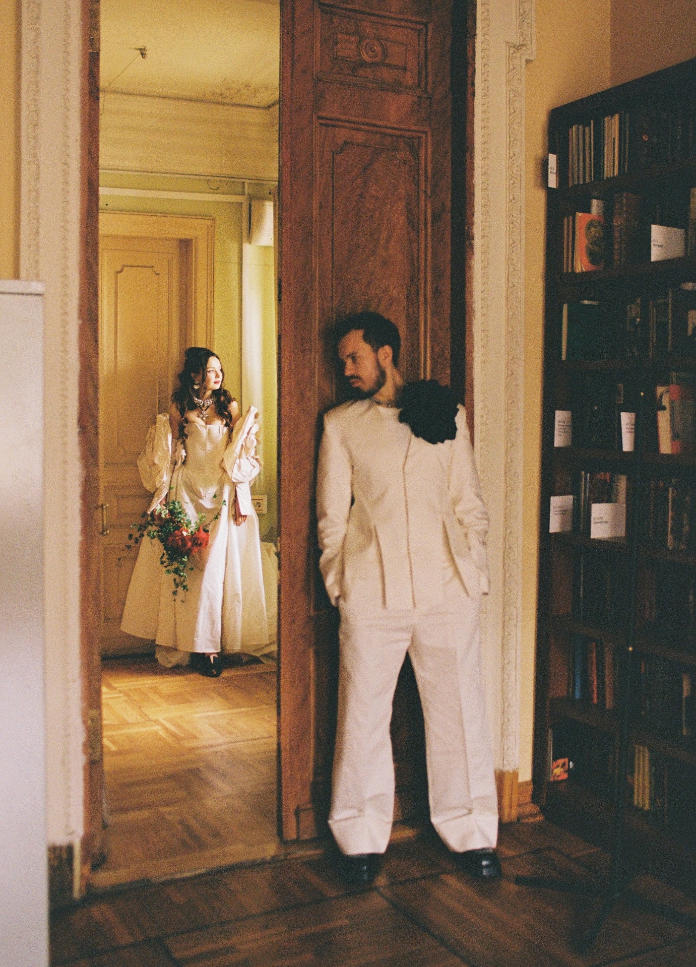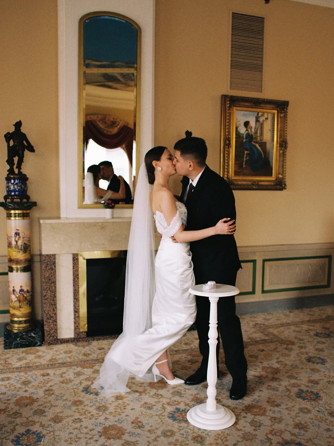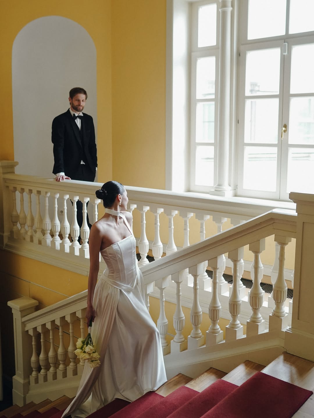 Мне особенно нравится снимать в Грибоедовском ЗАГСе в будние дни — когда там спокойно и просторно, съемка получается намного комфортнее. Можно без спешки искать красивые ракурсы, поиграть с глубиной кадра и светом.
