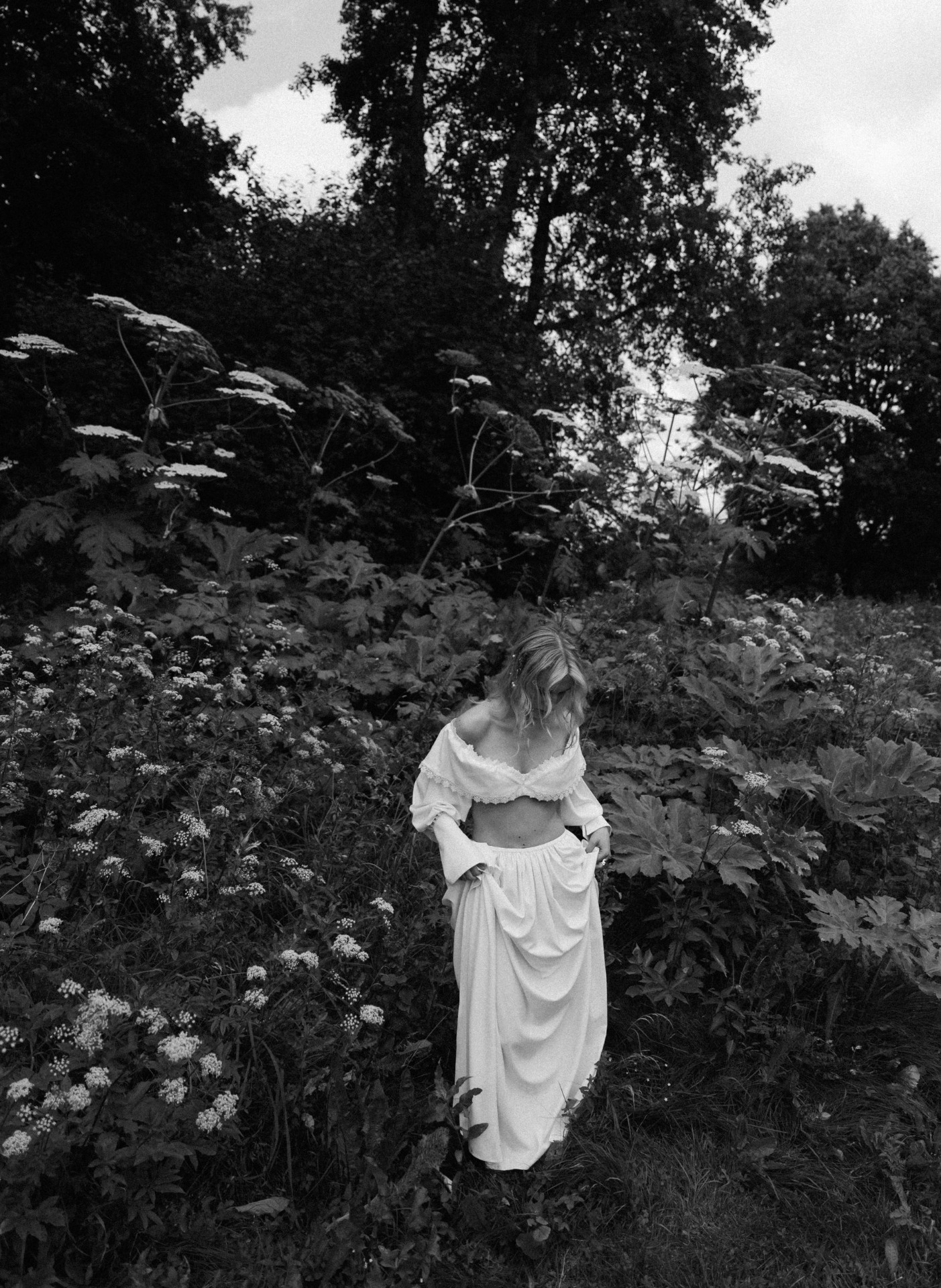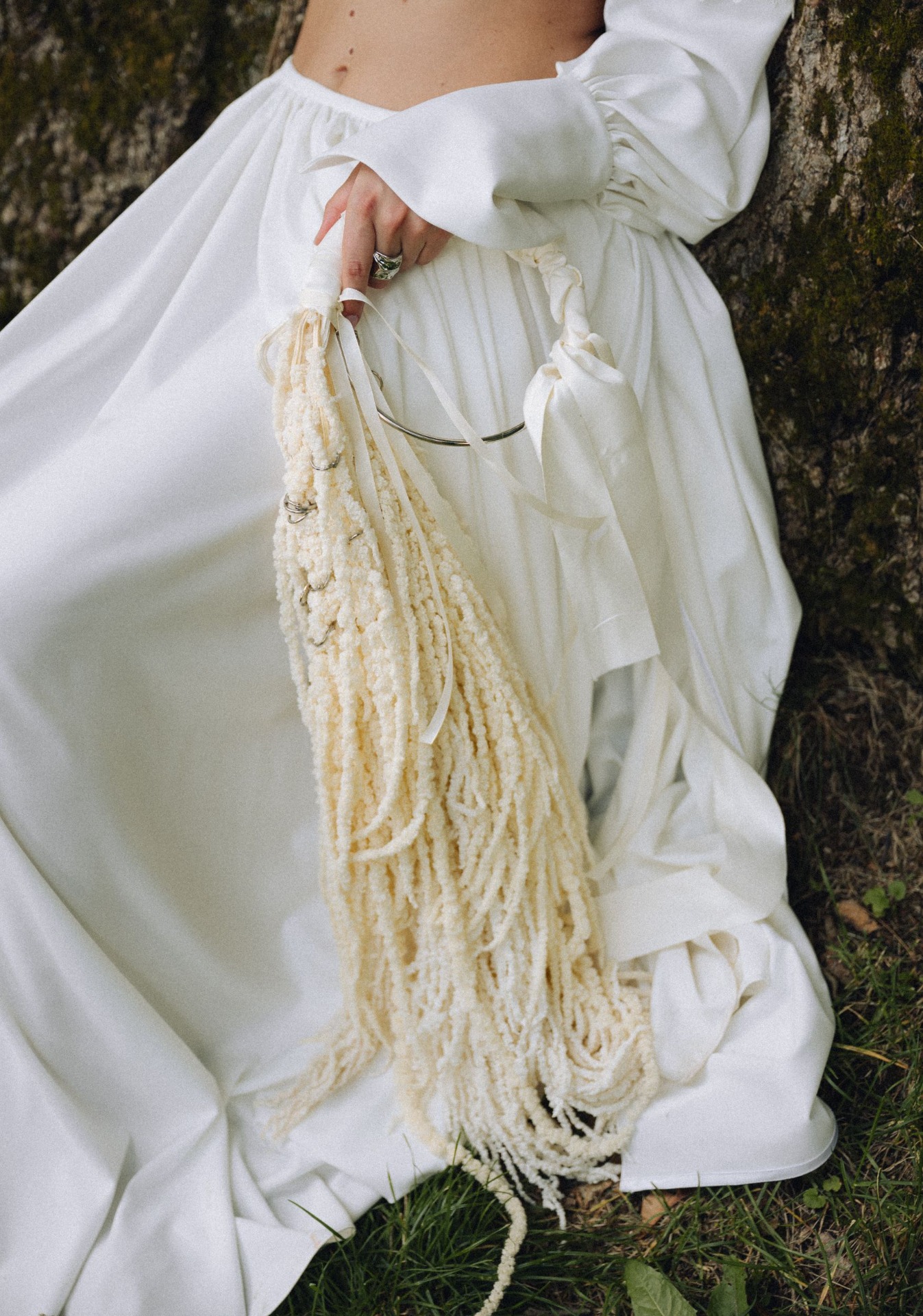 Свадьба получалась классической, так что утром нам хотелось добавить немного бунтарства. Вместе с Дашей, нашим организатором, мы нашли на Pinterest образ, который классно смотрелся в природных пейзажах, и его сшили специально для меня.