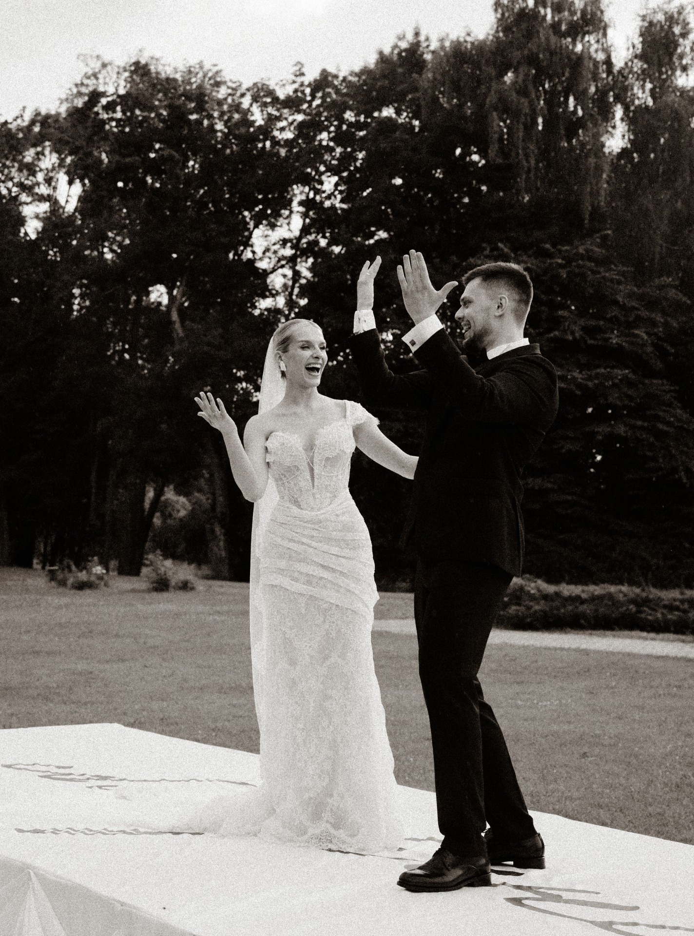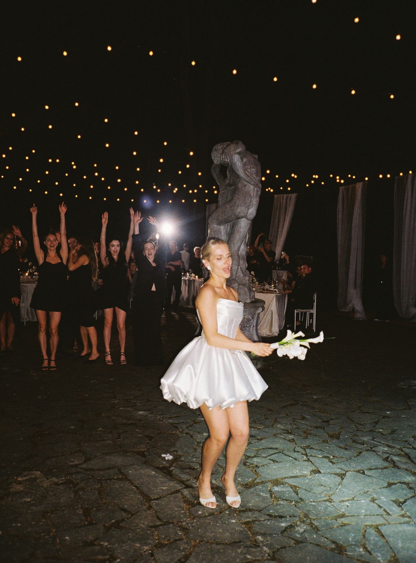 А потом настало время вернуться на подиум. Мы станцевали наш танец под песню «Мы так близко» и разделили салют с гостями: первая часть была запущена над усадьбой, а вторая — над людьми, потому что это был наш с ними момент. За это время на танцполе успели установить дискошар, и мы ворвались в афтепати. А во время последней песни пошла сильнейшая гроза. Погода будто ждала, пока мы осуществим все мечты.