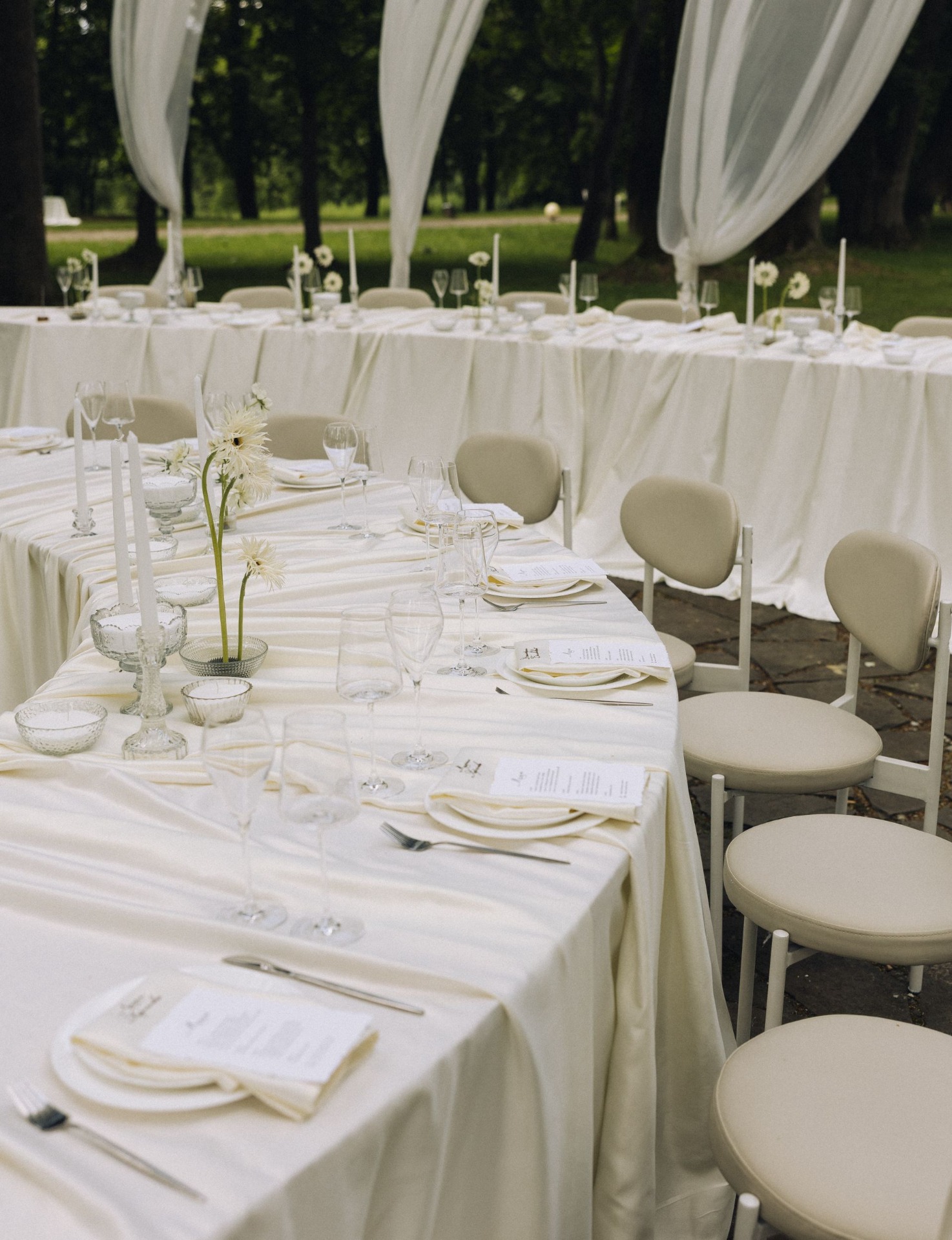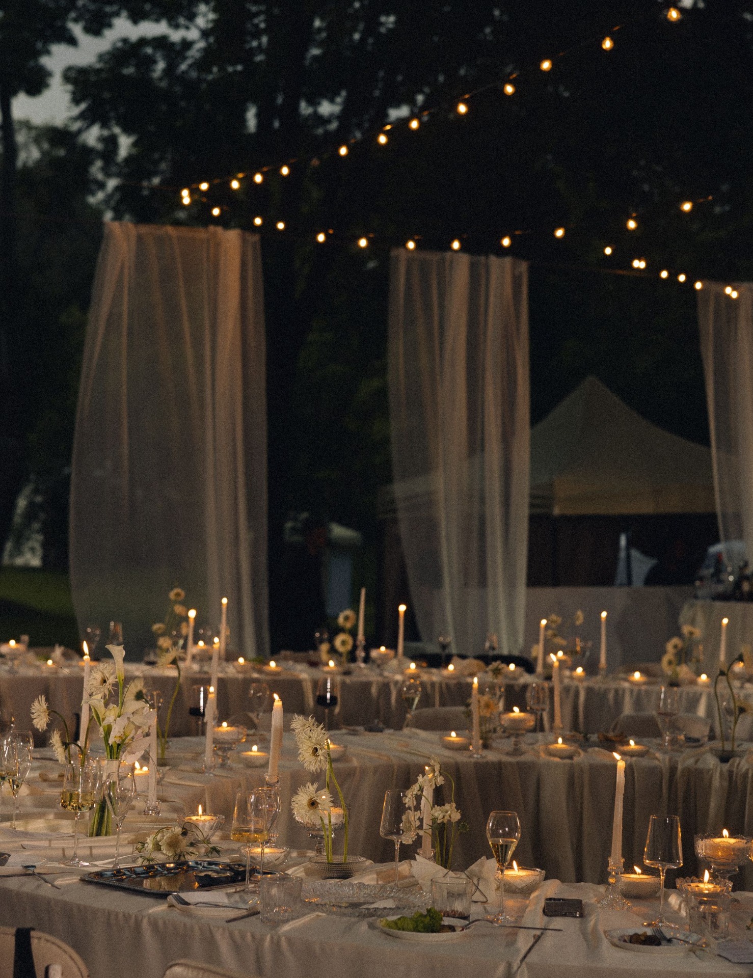 Мы год планировали ужин под открытым небом. В прогнозе были все виды дождя. Чтобы мир не рухнул в случае непогоды, мы вложили деньги в декор шатра, стоящего на территории. Это был план Б с сервировкой, светом, звуком, но мы молились, чтобы нам он не пригодился. В день свадьбы прогноз всё же показал дождь. Когда мы встретились с девочками «Скажи