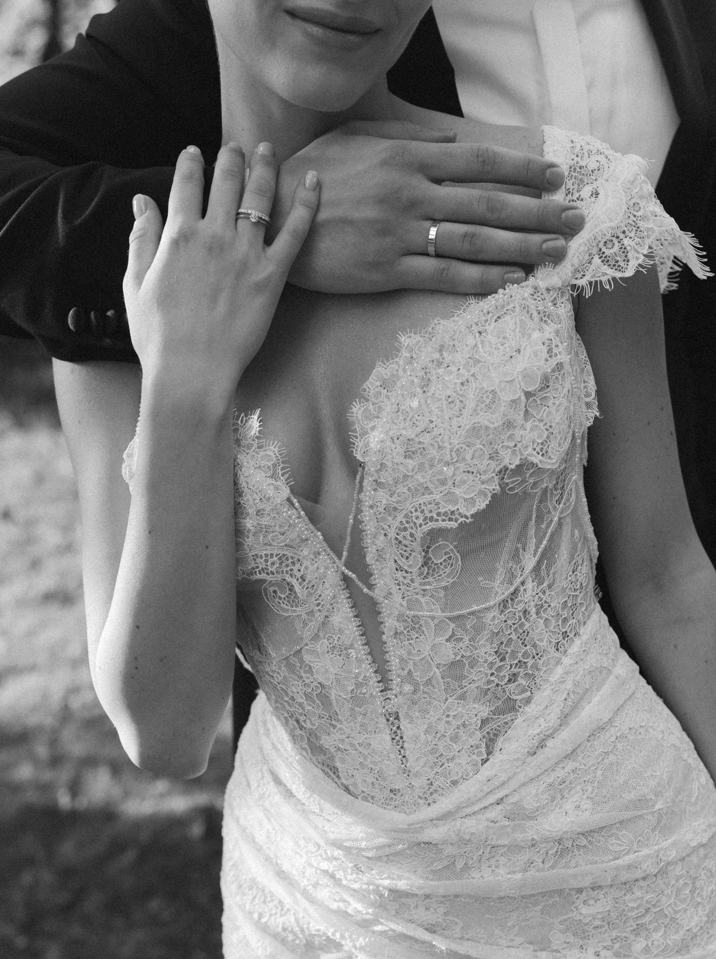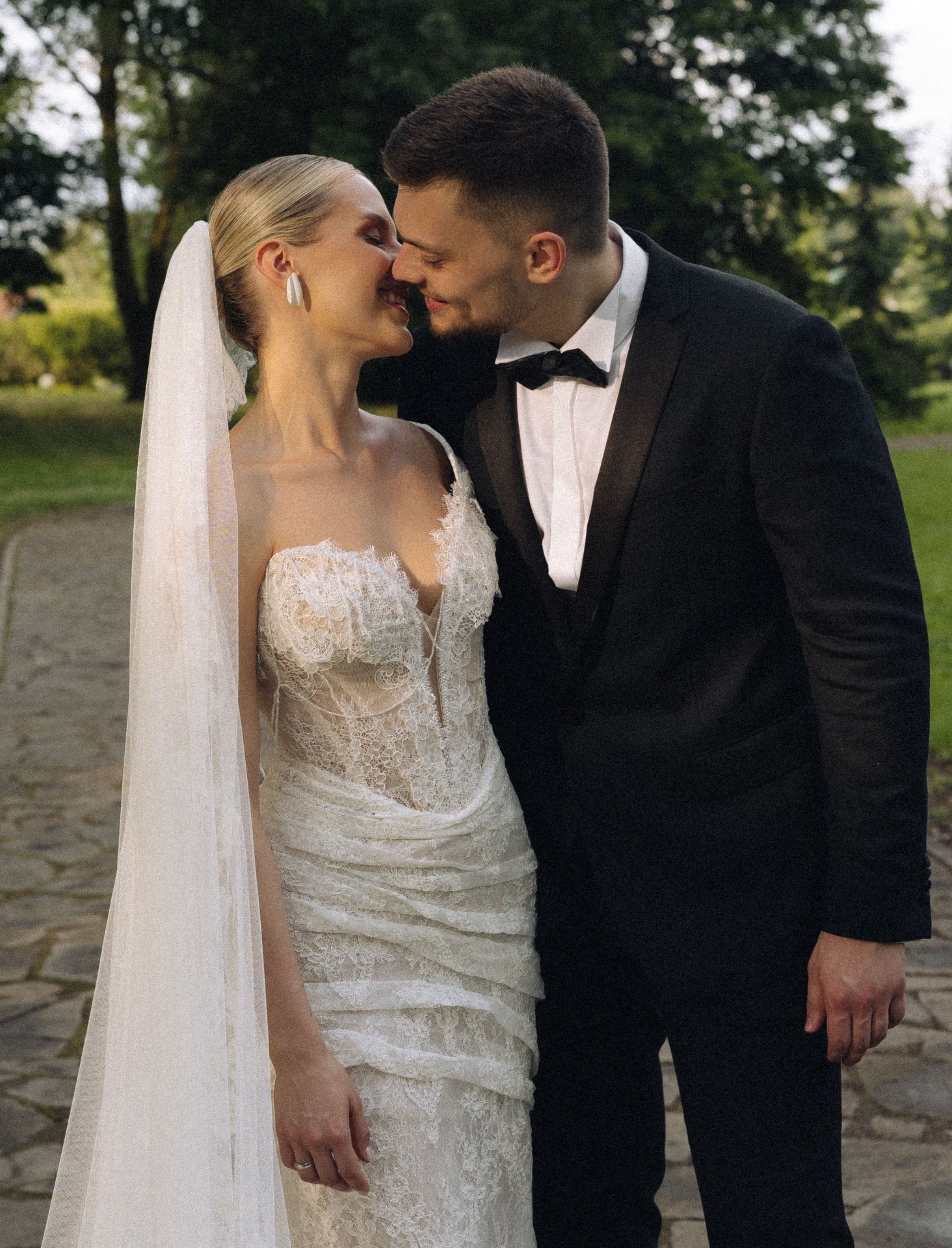 Артём сразу сказал, что хочет быть в смокинге. А я шла выбирать платье без всякого плана. Мы пришли в свадебный дом «Кураж», маме и подружкам нравилось почти всё, а у меня любви не случалось. На последних минутах примерки стилисты салона вынесли моё платье, но с короткой юбкой. Я увидела его и поняла: нашла! Кружево, фасон, корсет, цвет — идеальной казалась каждая деталь. В итоге мы заказали это же платье с длинной юбкой, и на каждой примерке меня не могли заставить его снять!