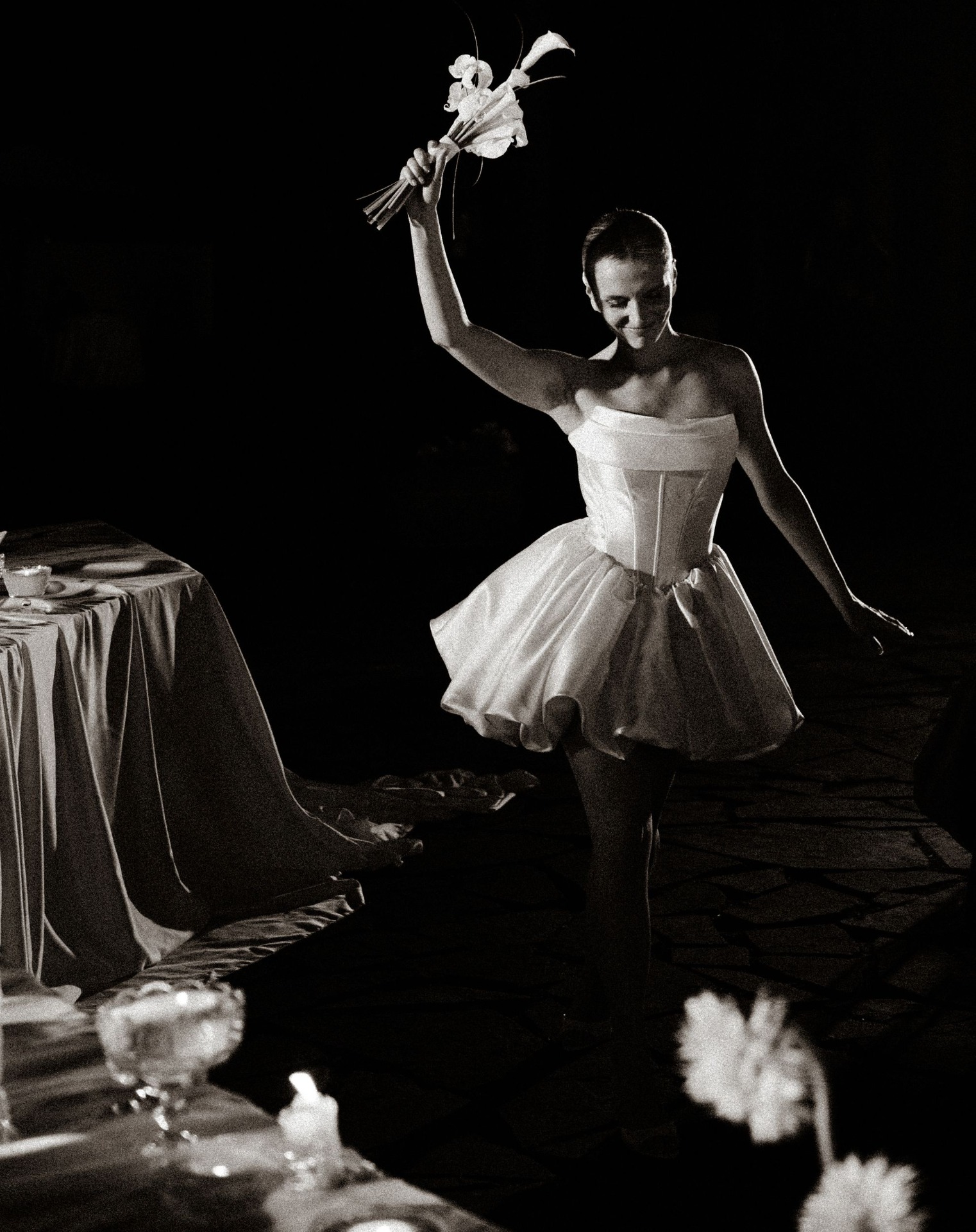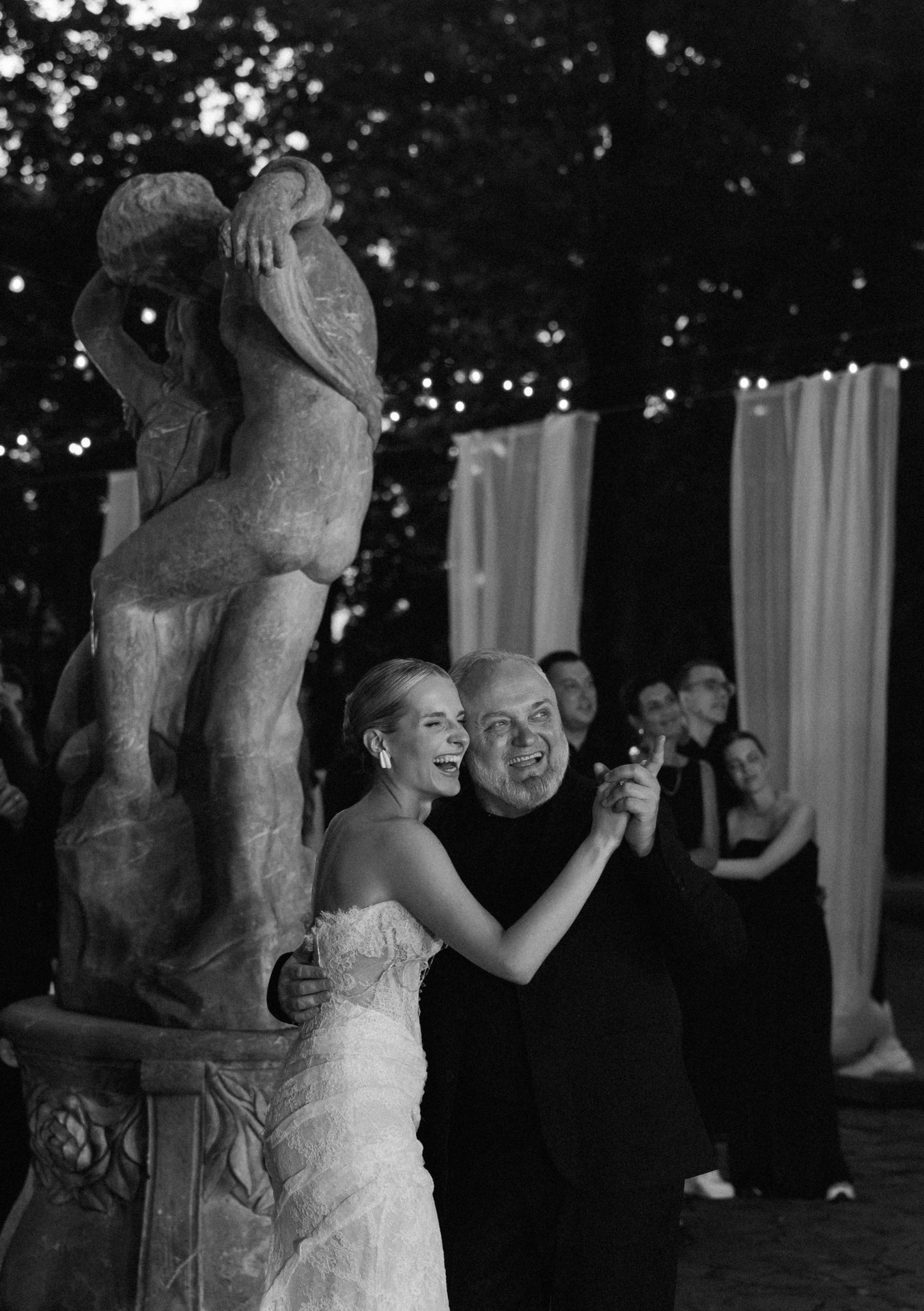 Вечер мы строили в формате «Сплетни-бара», рассказывали классные факты о гостях, чтобы они стали ближе. Для танца с папой я оживила фотки своей семьи, Артёма и всех гостей. Мы обнимались и вытирали слёзы, глядя на ожившие кадры из прошлого.