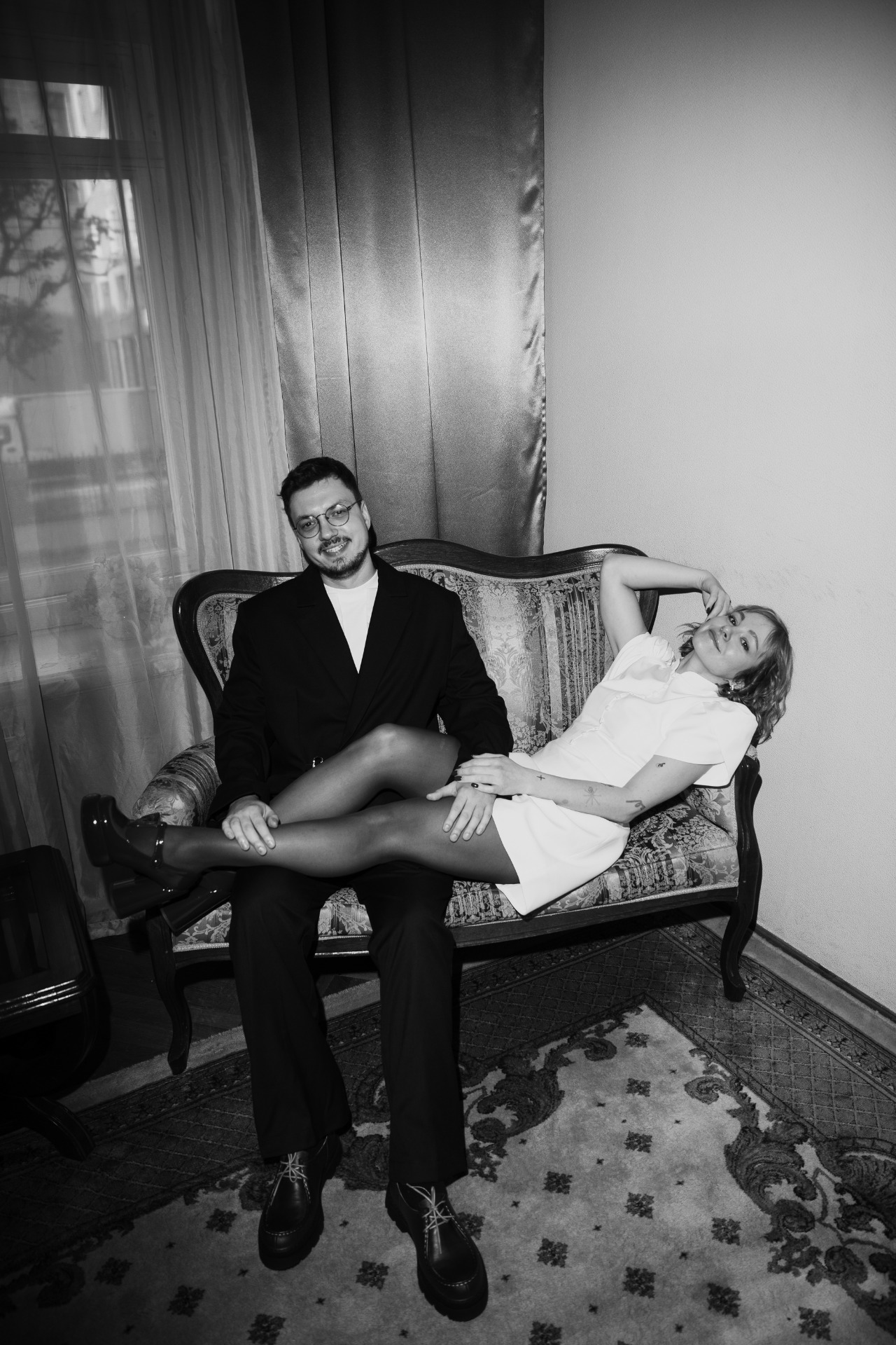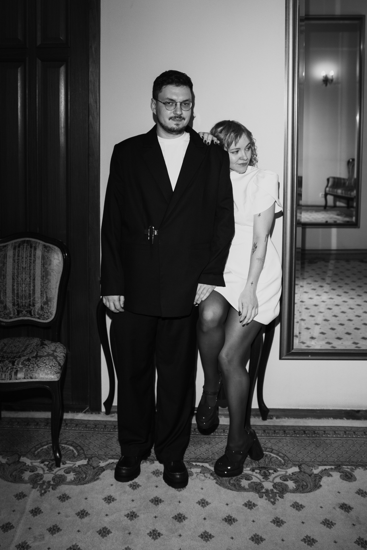 Образ Кирилла мы собрали за один заход. Я сразу поняла, что классические костюмы на нём сидят странно, поэтому мы прошлись по локальным брендам и купили пиджак и футболку в HUMANIST, а брюки — в GATE 31.