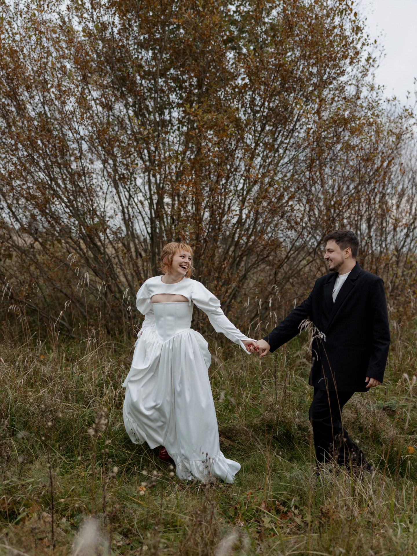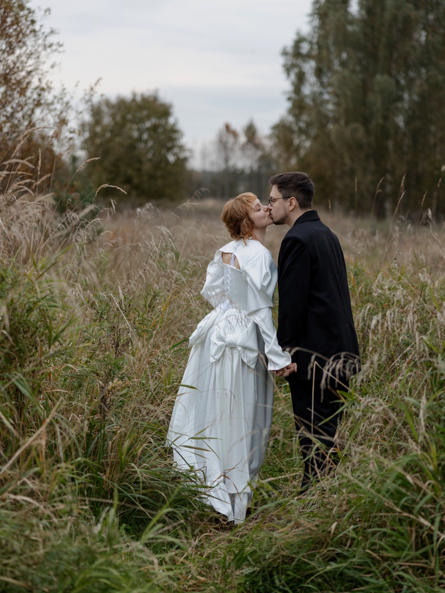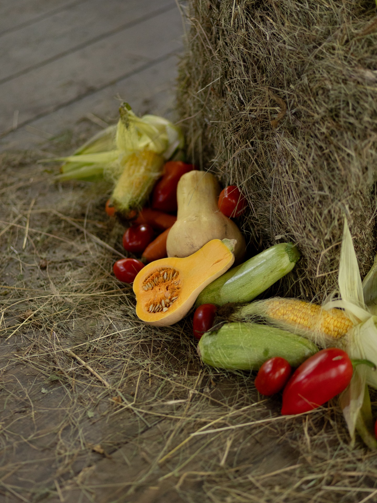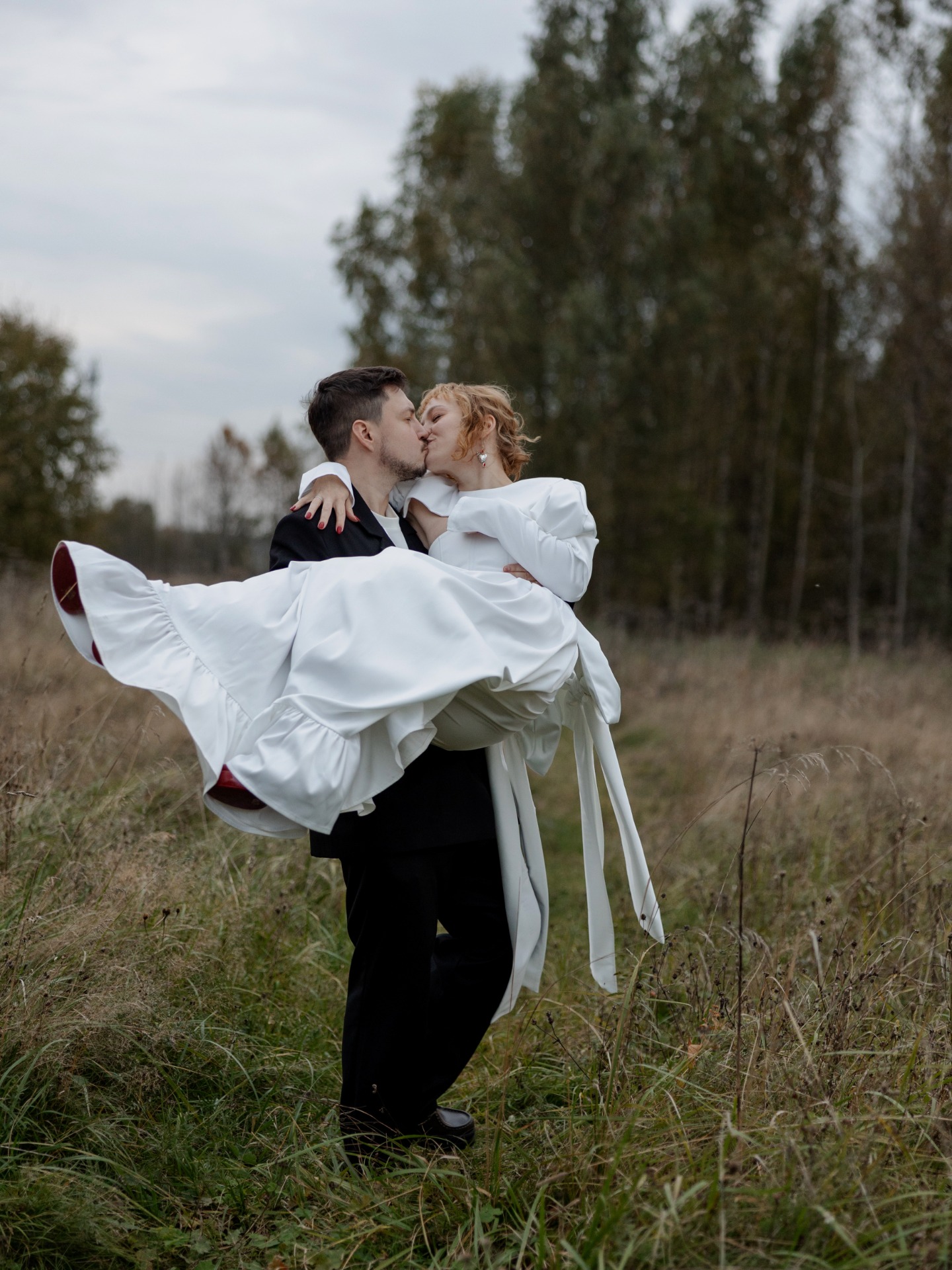Концепция сбора урожая сложилась сама собой: осень, амбар, деревенский шарм. Но для нас было важно, чтобы в ней была мысль именно про нас. Так родилась метафора: это день сбора урожая нашей любви — всего, что мы взращивали вместе, делая и выбирая друг друга изо дня в день.
