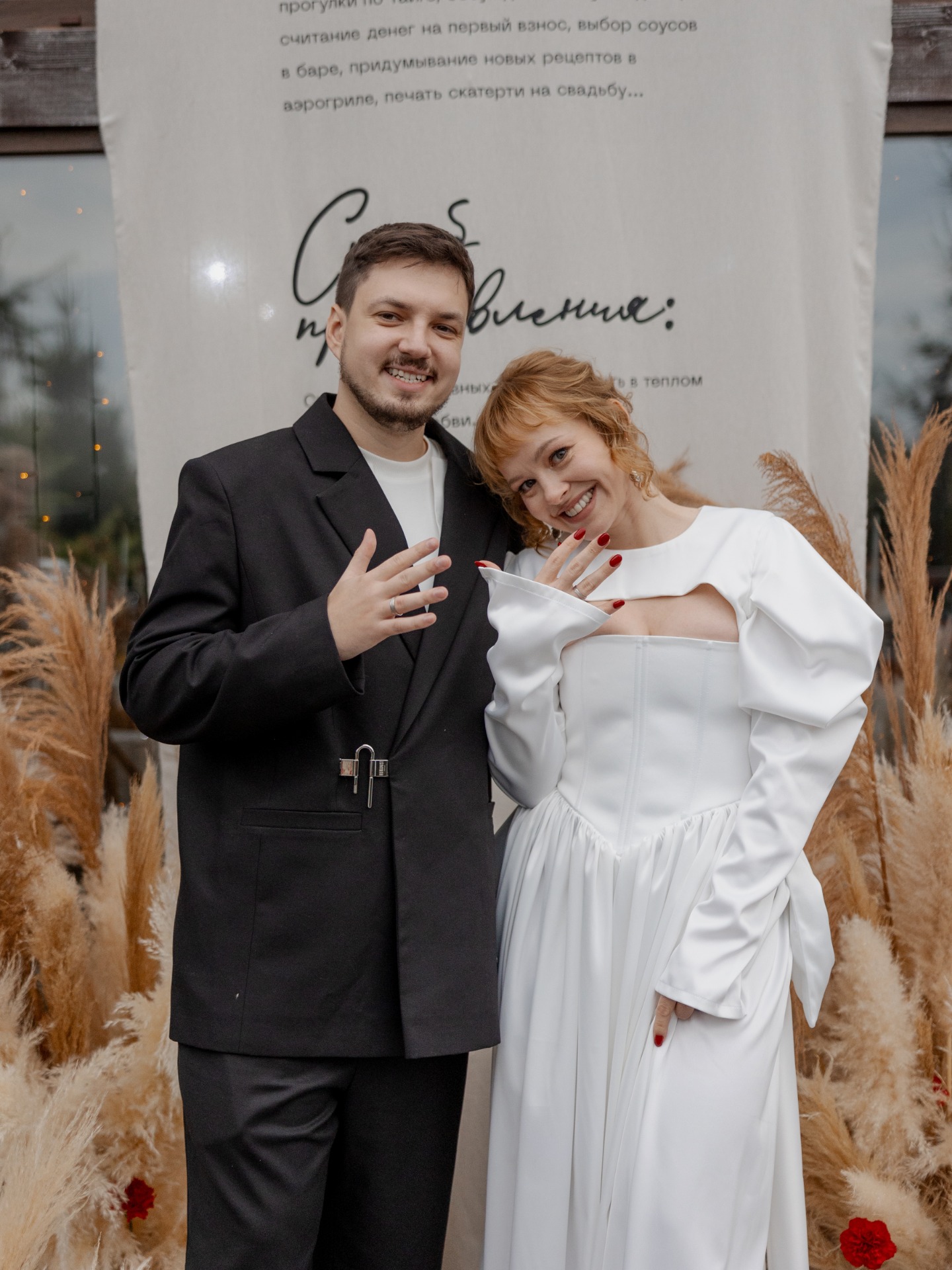 А ещё мы сделали гравировку на кольцах друг для друга и впервые увидели их на церемонии. У меня на кольце, помимо надписи, оказался рисунок грибочка, а внутри кольца Кирилла я написала: «Ты мой дом навсегда».