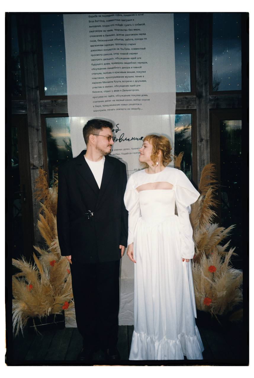 Мы готовились без организатора — нам хотелось пройти этот путь самостоятельно. Я подошла к свадьбе как к проекту, в котором могла реализовать свои идеи и эстетику. Во многом мне помог органайзер от Weddywood.