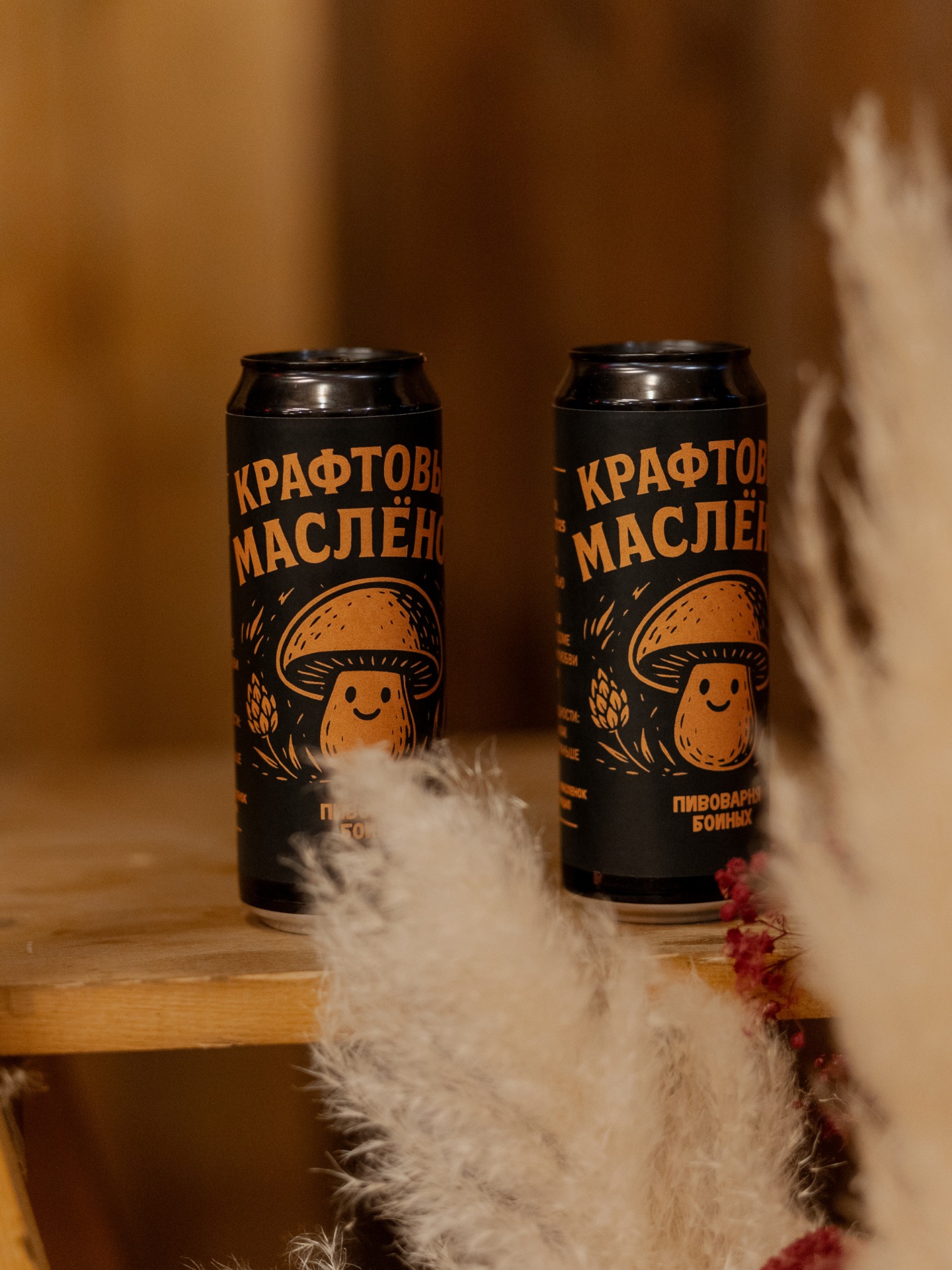 В подарок гостям мы дарили пиво «Крафтовый Маслёнок». «Маслёнок» — это наша внутренняя шутка: так мы называем друг друга, когда ленимся. Получилась тёплая отсылка к осенней, грибной теме.