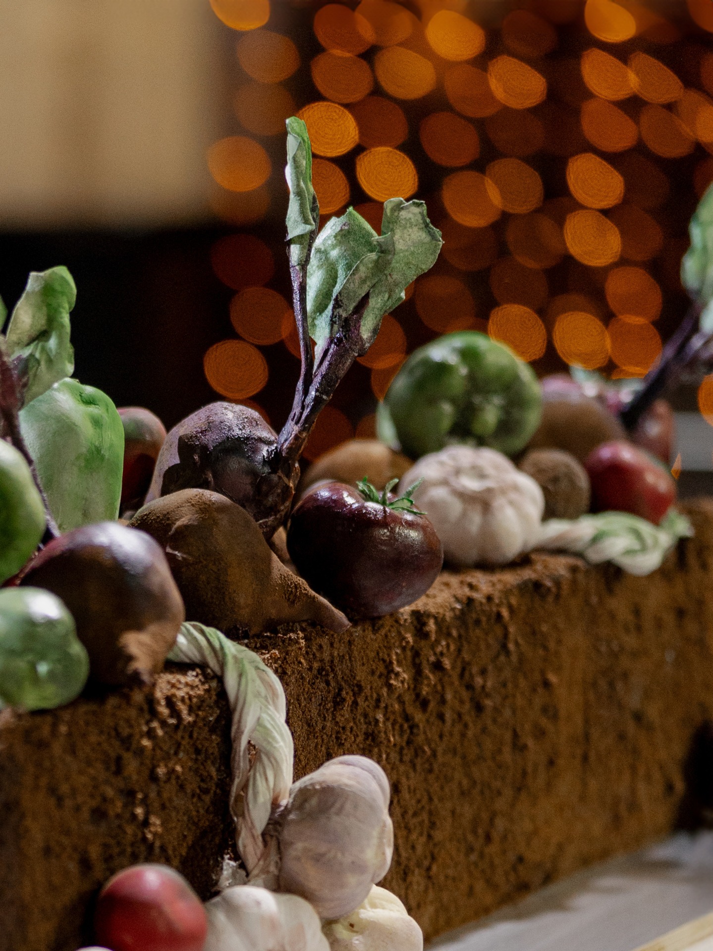 Торт тоже поддерживал тему урожая, он был в виде грядки с землёй и настоящими овощами сверху. Мы выкапывали его лопатой вместо традиционного разрезания.