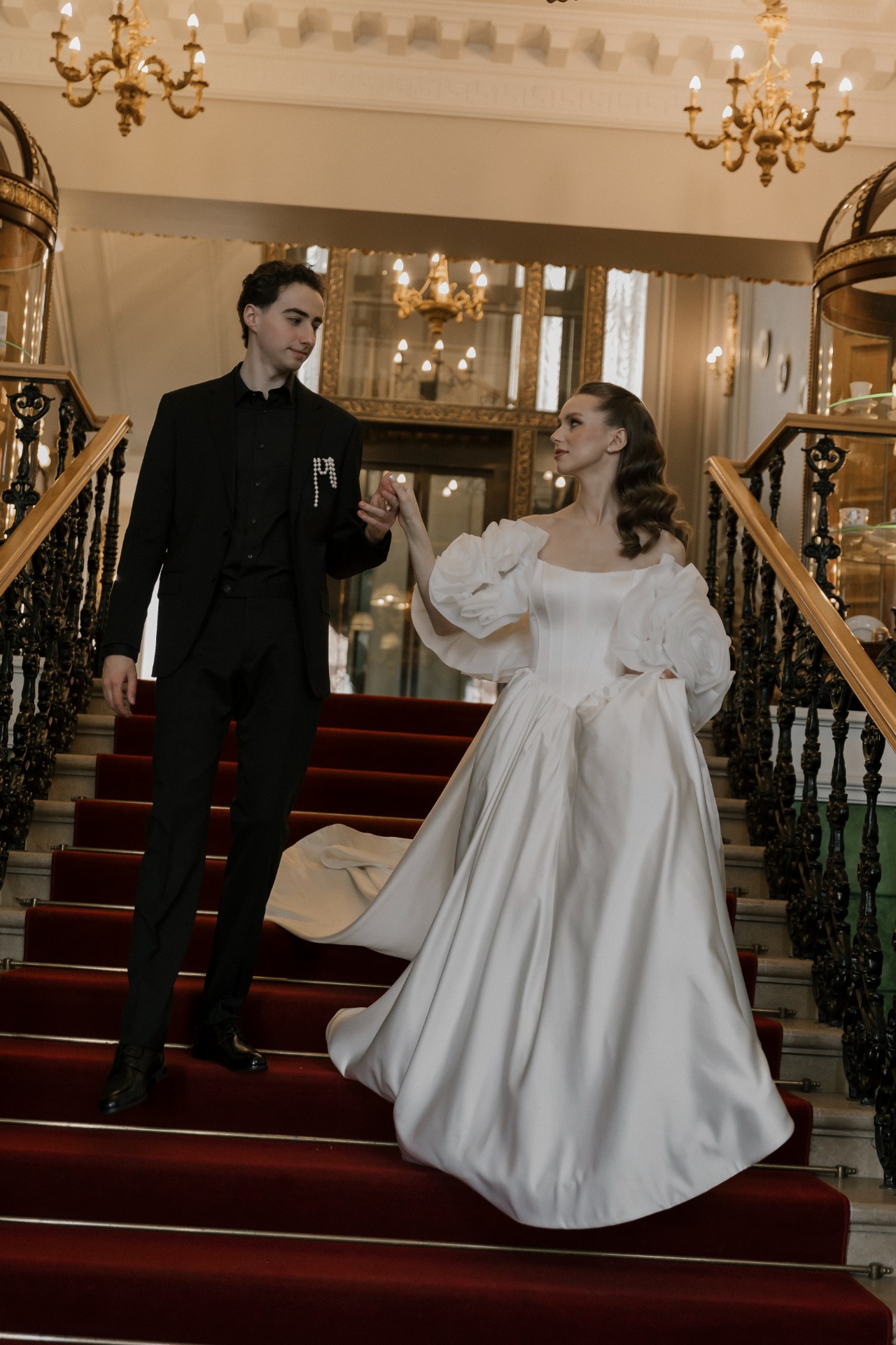 Я была в ужасе при мысли, что мне предстоит найти свадебное платье всего за месяц. Изначально я представляла себя в непышном, минималистичном наряде, но на второй примерке стилист и подруга настояли, чтобы я примерила роскошное платье с длинным шлейфом. Каково же было моё удивление, когда оно село на меня идеально — а, главное, я не могла оторвать от себя взгляд. В ту же секунду я поняла: это оно.