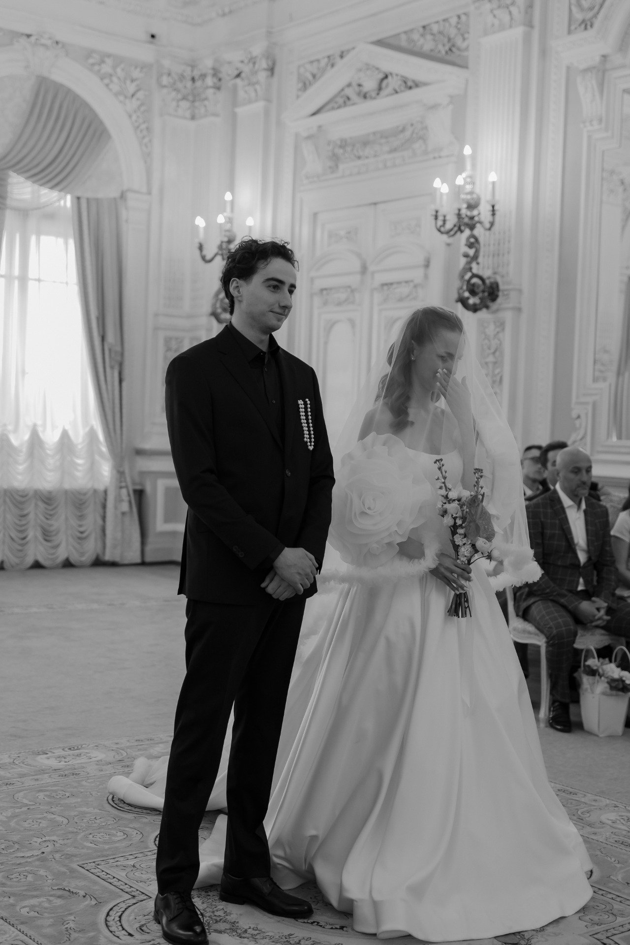 После предложения мы не торопились с организацией свадьбы и даже не представляли, какой она должна быть, да и будет ли вообще. Но когда мы подали заявление в Дворец бракосочетания №1, о росписи в котором я всегда мечтала, началось что-то невероятное: из-за отсутствия свободных летних дат мы выбрали 6 апреля. Эта дата почти совпала с днём нашего знакомства — получилось символично.