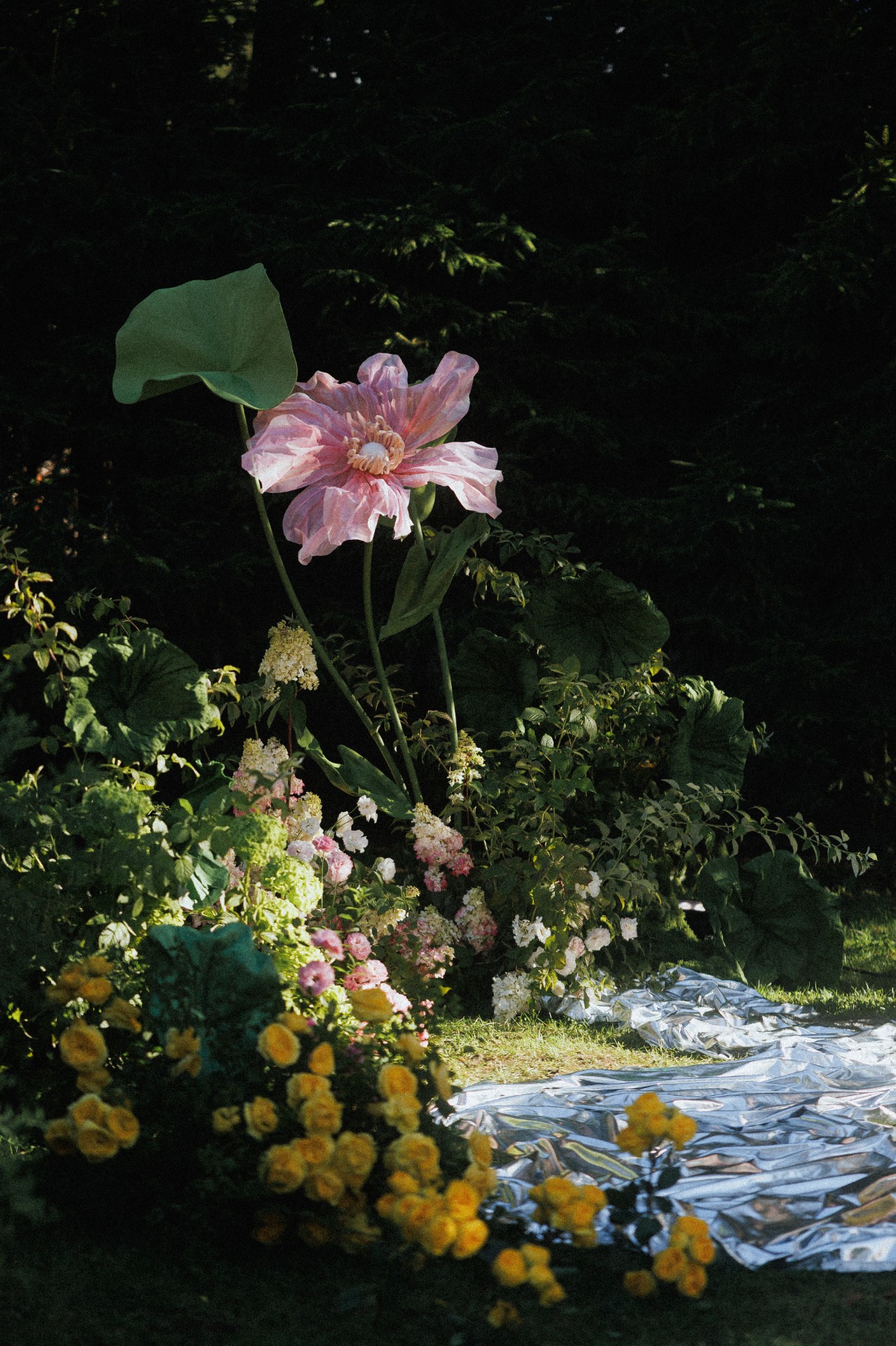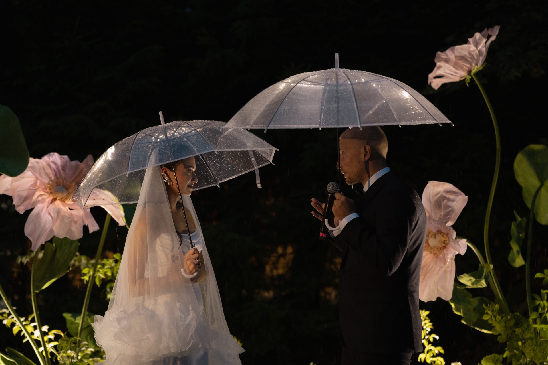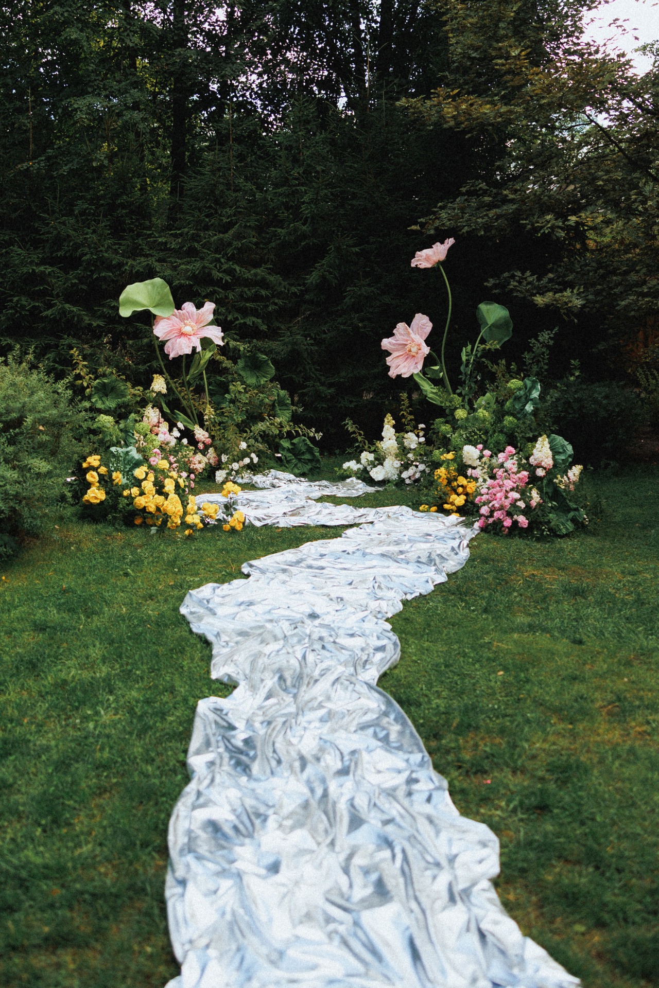 Сначала у нас не было чёткого видения, пока наш ведущий Рома Данилюк не предложил провести церемонию в формате сказки, в которую он оформит нашу историю и которую расскажет воображаемому ребёнку. Эта идея нас моментально зацепила! Так появилась концепция Secret Garden — сказочного сада, будто из «Алисы в Стране чудес».