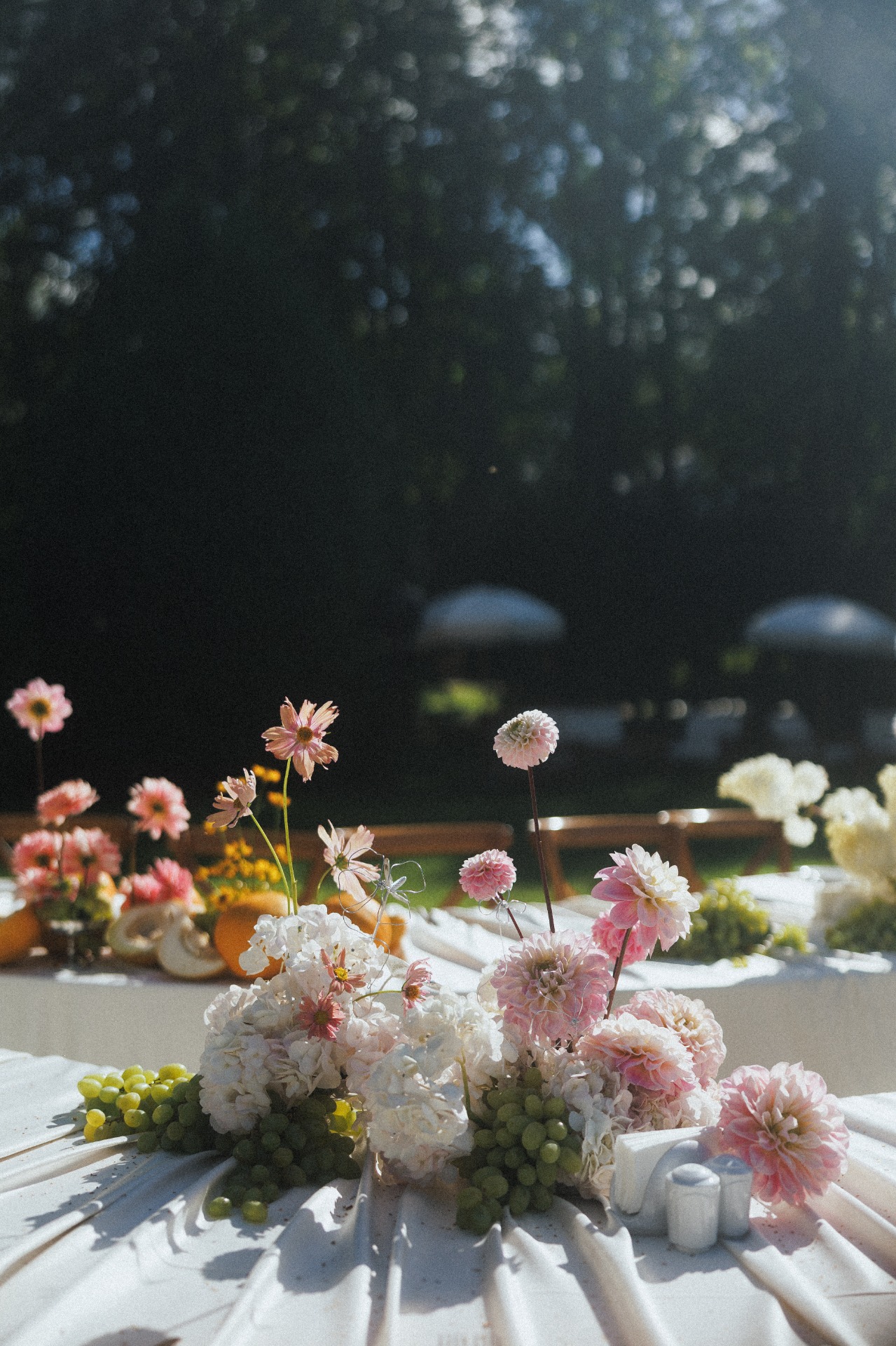 Утро свадебного дня началось со сборов и съёмки в отеле Four Seasons. Затем мы отправились на площадку, где гостей ждал ужин на лужайке и церемония на закате.