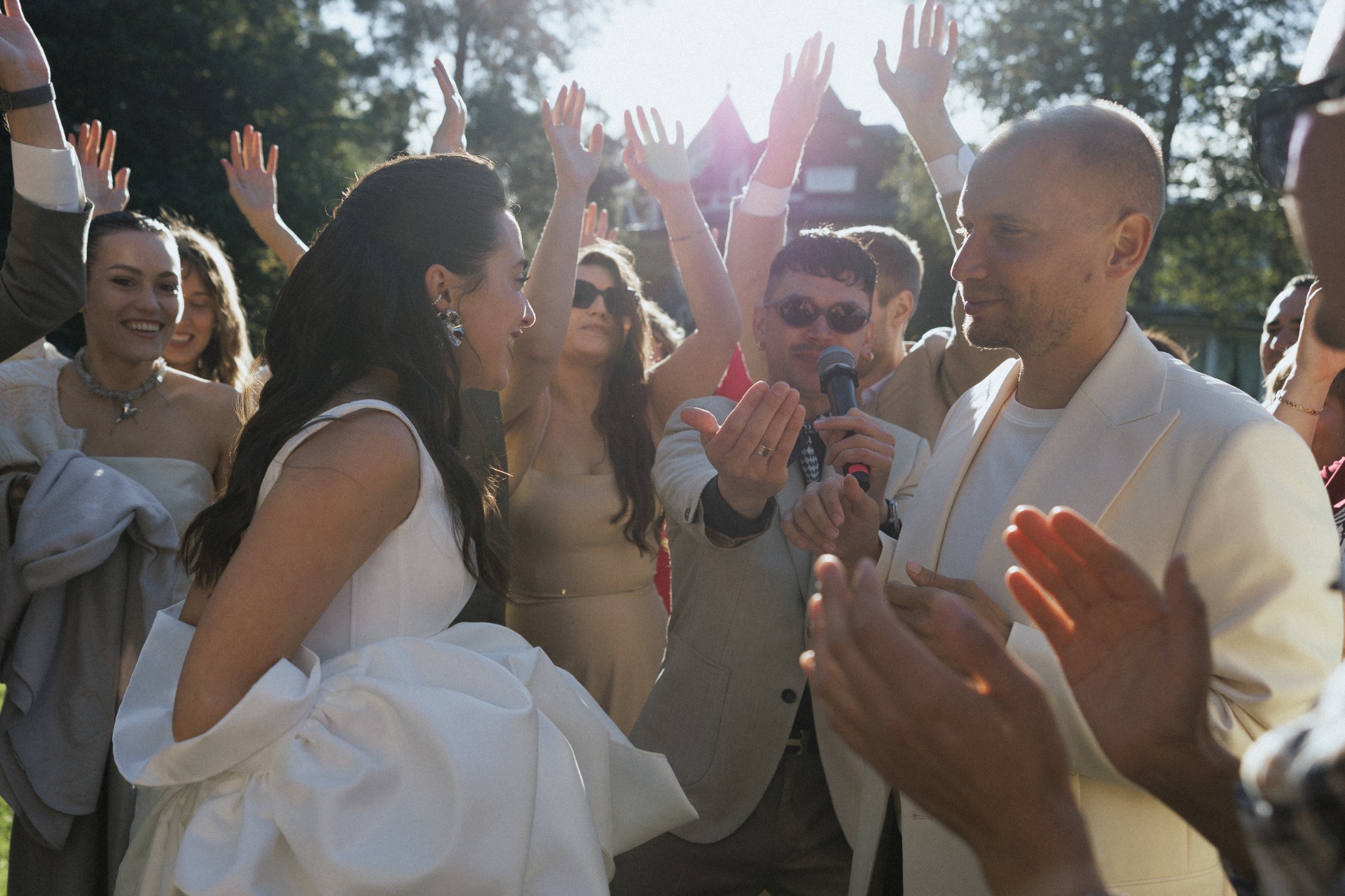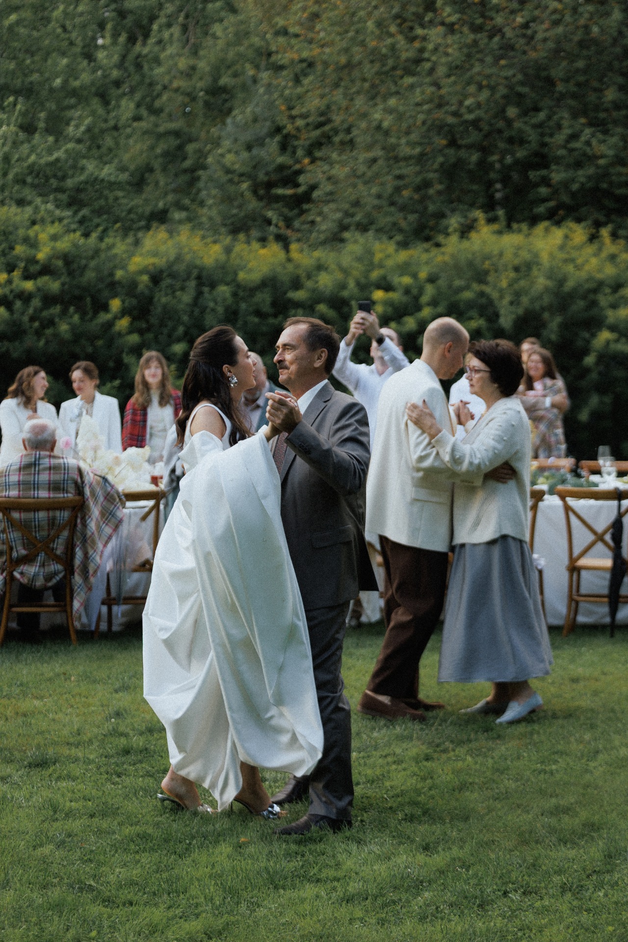 После церемонии был первый танец, салют, ужин и душевное караоке под рояль. К финалу вечера ведущий вместе с нашим другом Костей Красиковым устроили настоящий танцевальный баттл, и гости просто не хотели расходиться.