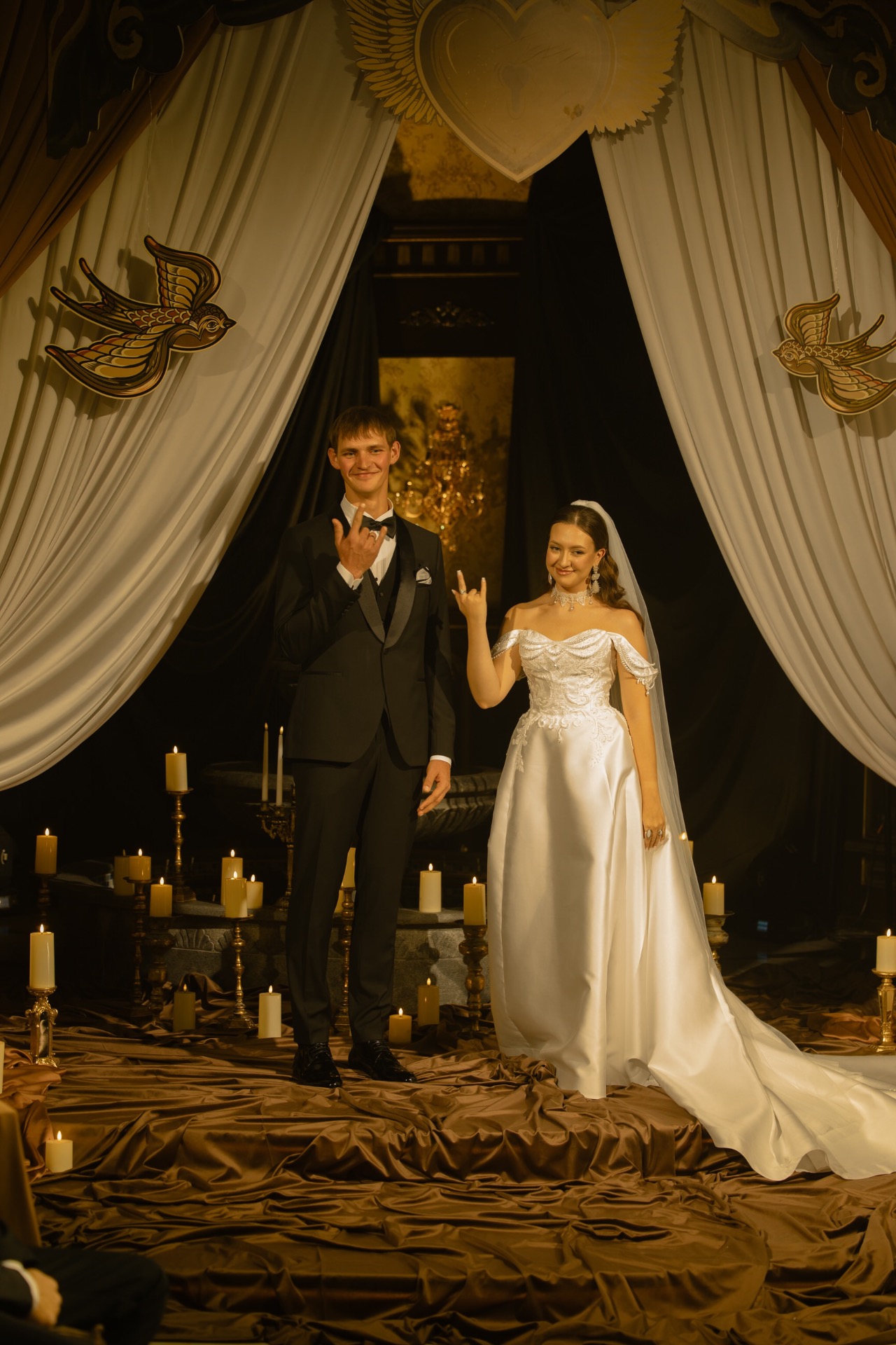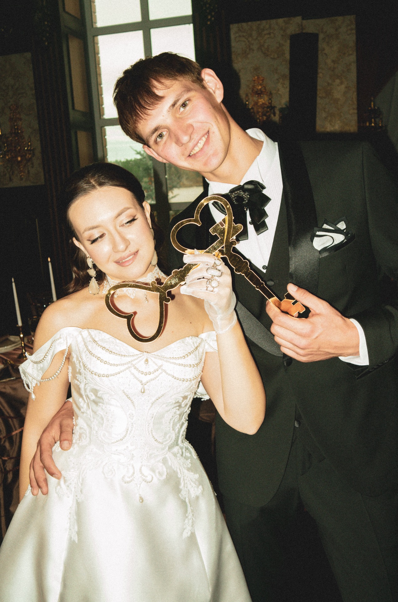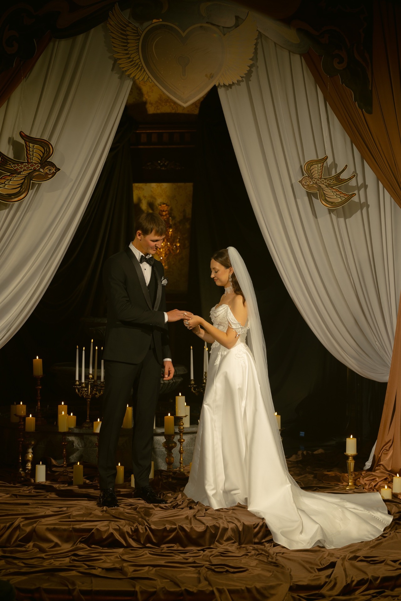 Концепция родилась сразу: мы решили, что хотим сделать настоящую свадебную сказку. За основу была взята фраза «Secrets of love». Мы — очень спокойная пара, и нам хотелось, чтобы наши секреты любви были очень бережно подсвечены во время праздника.