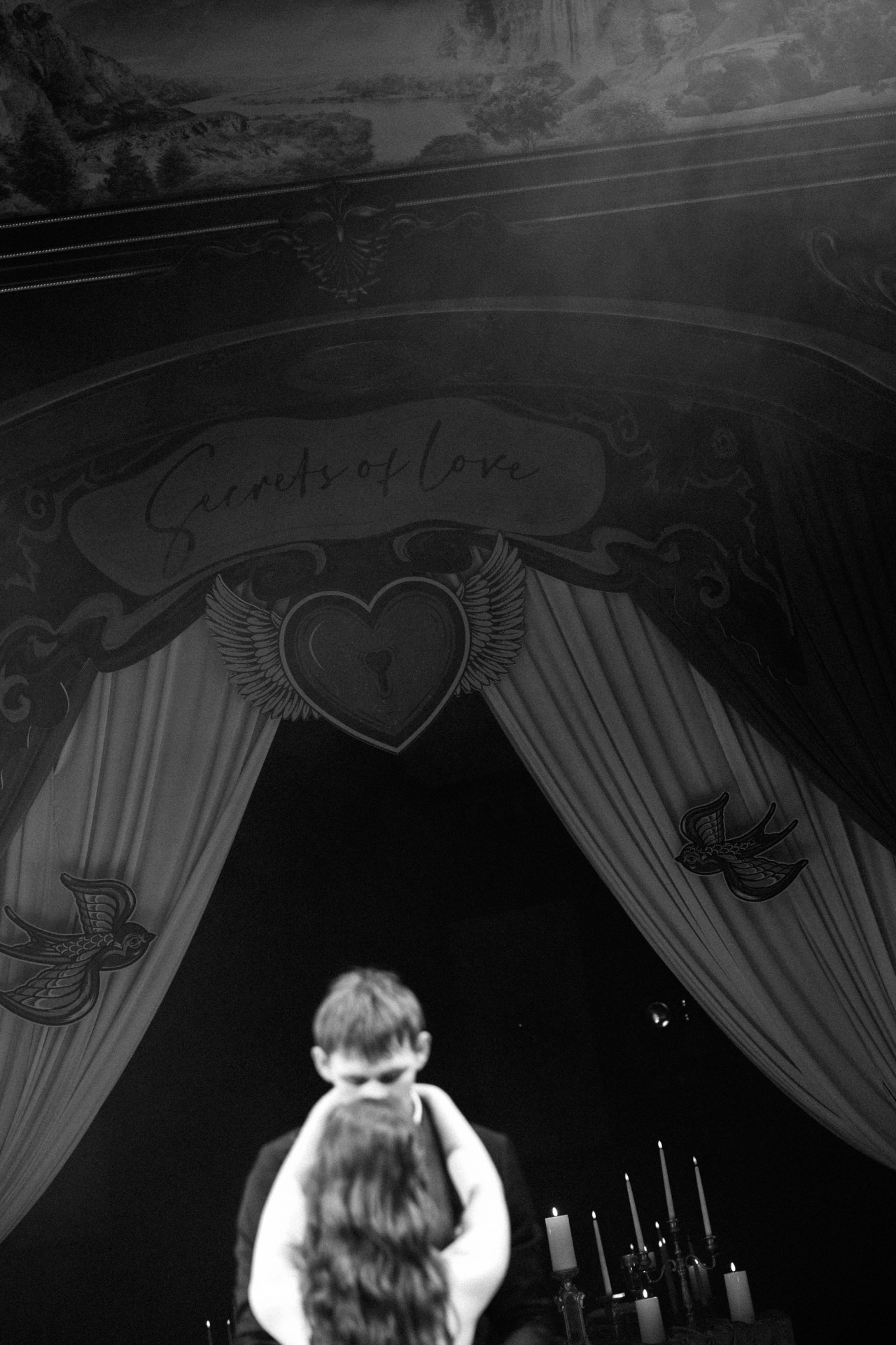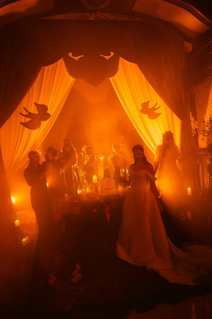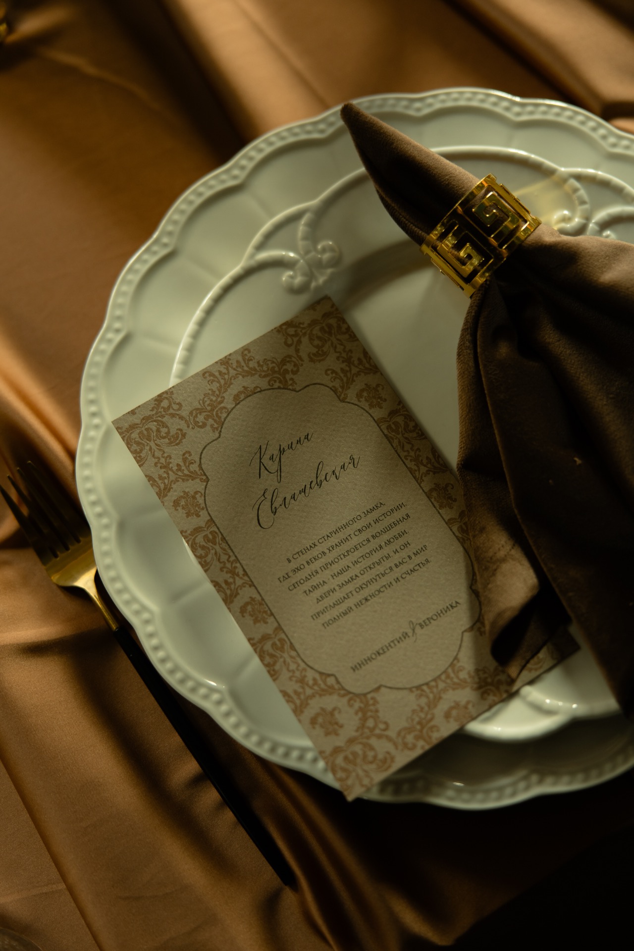 Концепция родилась сразу: мы решили, что хотим сделать настоящую свадебную сказку. За основу была взята фраза «Secrets of love». Мы — очень спокойная пара, и нам хотелось, чтобы наши секреты любви были очень бережно подсвечены во время праздника.