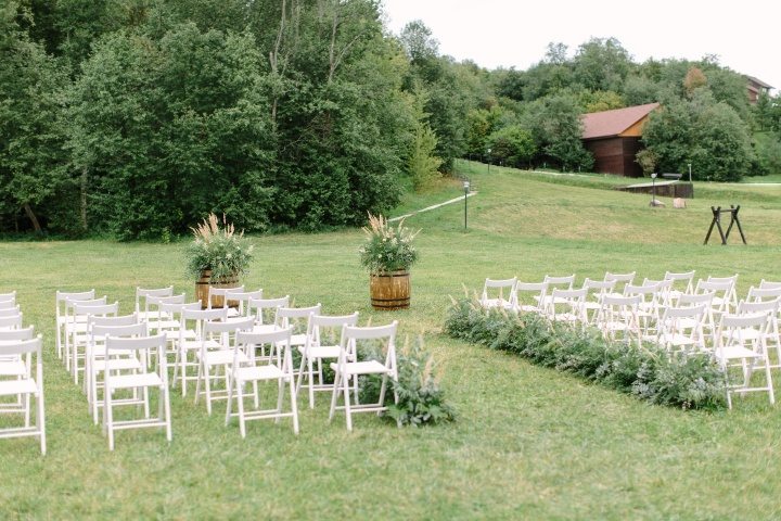Поскольку я человек творческий, да и вообще без дела сидеть не могу, мне хотелось поучаствовать в процессе создания образа самого главного дня в моей жизни. В целом идея оформления была следующая – максимум воздуха и простоты, натуральных тканей, зелени и, конечно же, моя любимая гипсофила. Цветовая палитра была светлая, пастельная, с преобладанием натурального коричневого и белого цветов.