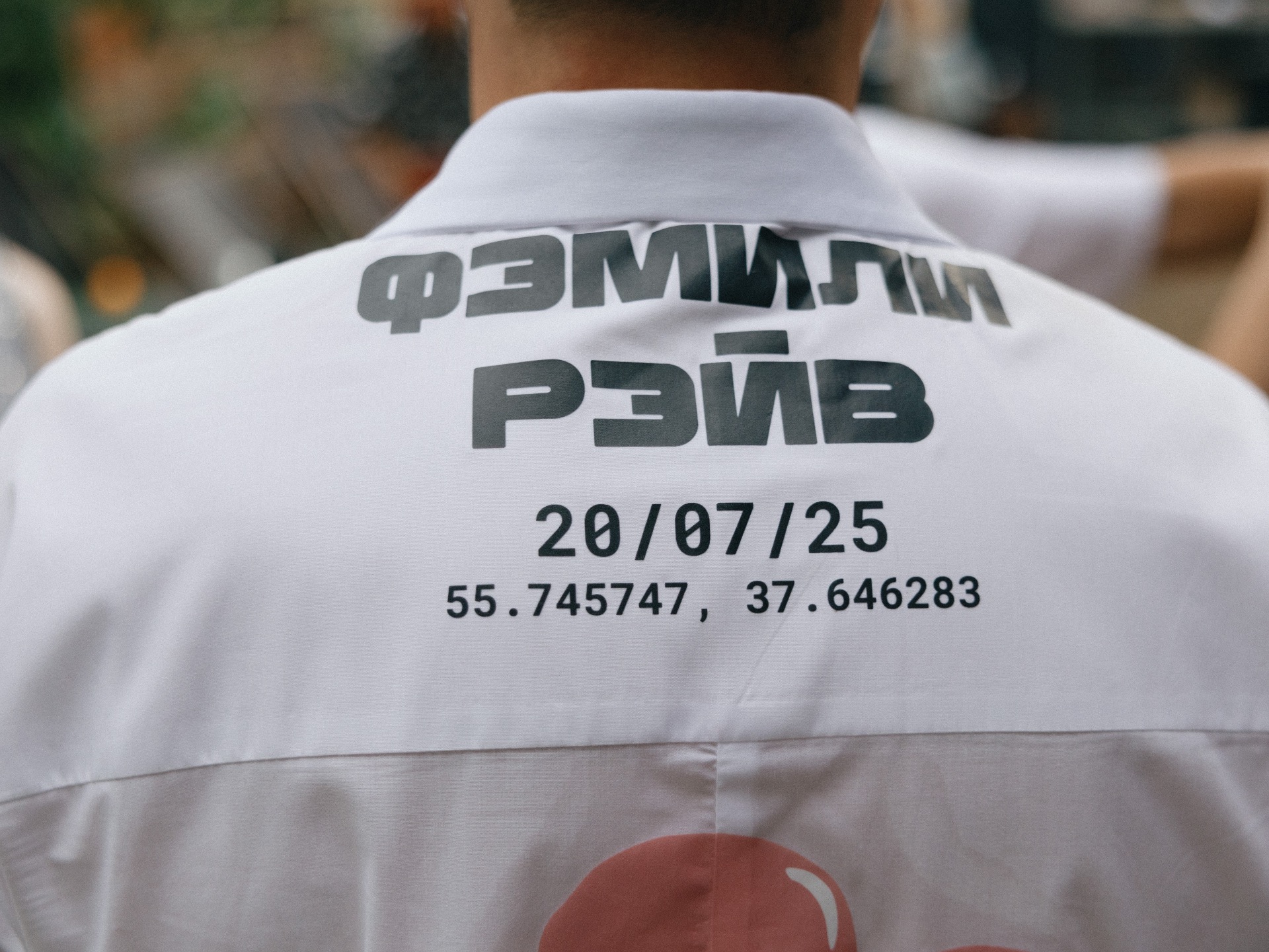 Так как второй день у нас планировался как рейв, нам хотелось быть подвижнее и ещё более уникальными. Наряд Антона состоял из длинной рубашки и чёрных широких шорт. На его рубашке на спине была огромная ромашка, координаты и дата ивента, а спереди надпись: «Мне нравится, как ты кайфуешь!» Эта фраза стала отсылкой к картине, которую он подарил мне на день рождения.