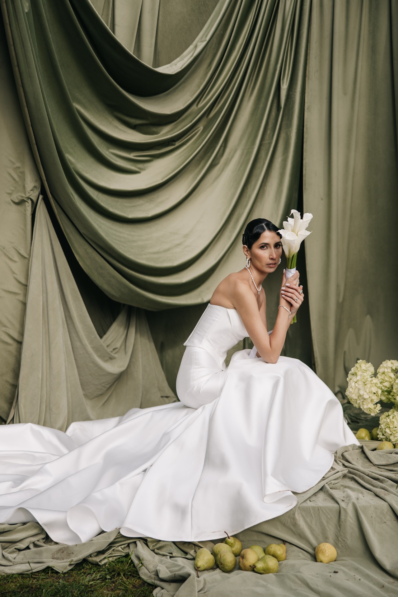 Даниил и Роксана выбрали основной темой для своей свадьбы стиль Old Money, а именно: минимализм, утончённую роскошь и сдержанную выразительность. Зону церемонии пара оформила плотной зелёной драпировкой, живыми цветами и грушами, получилось изысканно и эстетично. А вот на фото-зоне пара предпочла отдаться сердечному тренду. Смотрим, как это было.