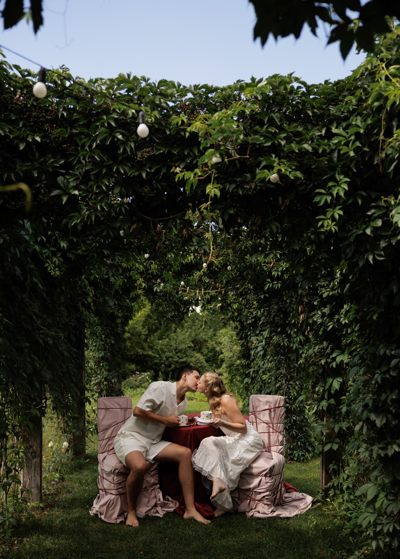 Найти концепцию оказалось сложнее, чем мы ожидали. Наши отношения всегда были на контрастах. В нас соединились бесконечная нежность и яркие, «взрывные» эмоции. Мы оба очень чувственные, эмоциональные, и хотелось, чтобы наша свадьба отражала эту особенность.