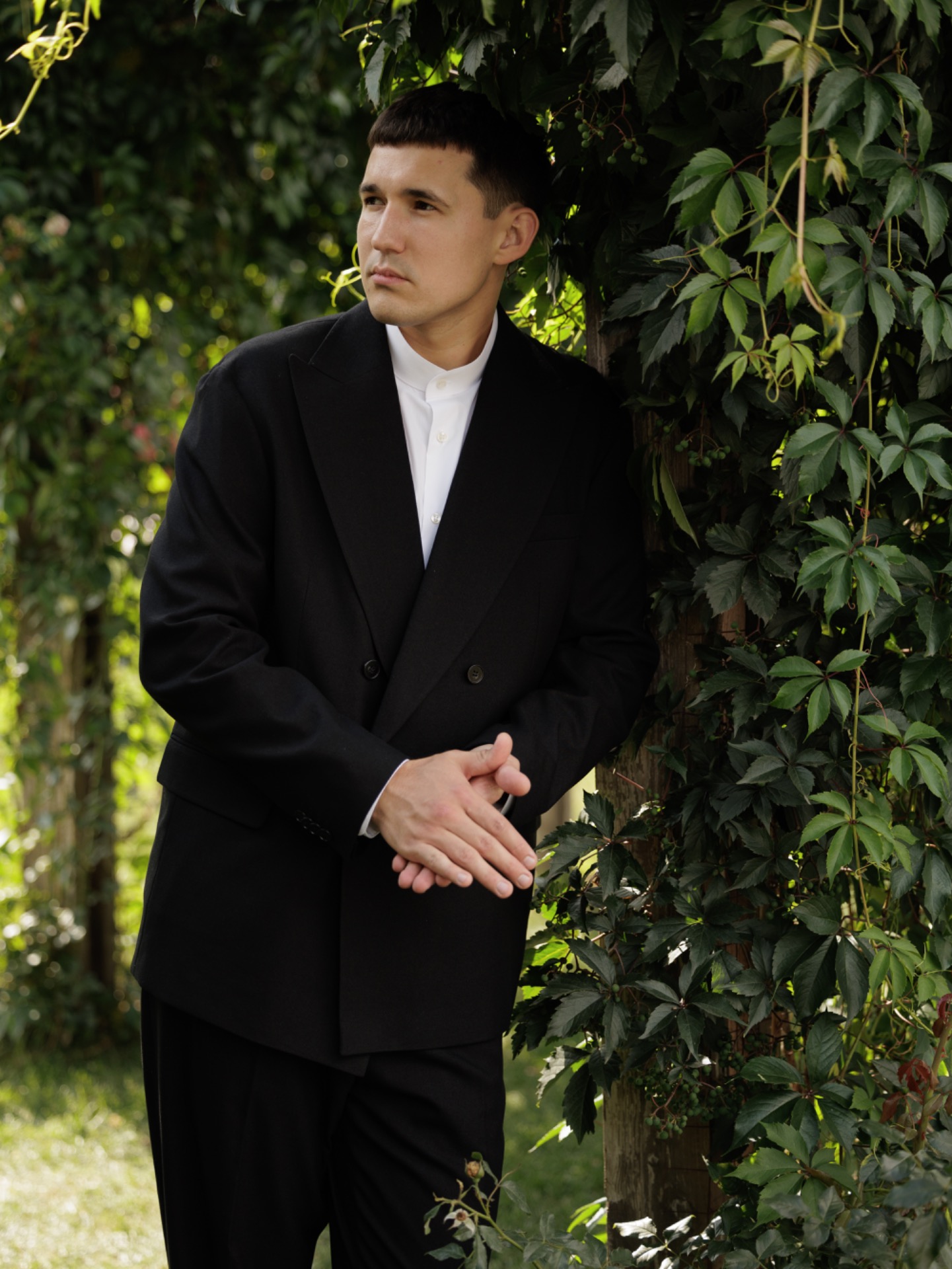 Максим выглядел просто и элегантно: чёрный костюм, чуть свободного кроя, без лишней строгости.
