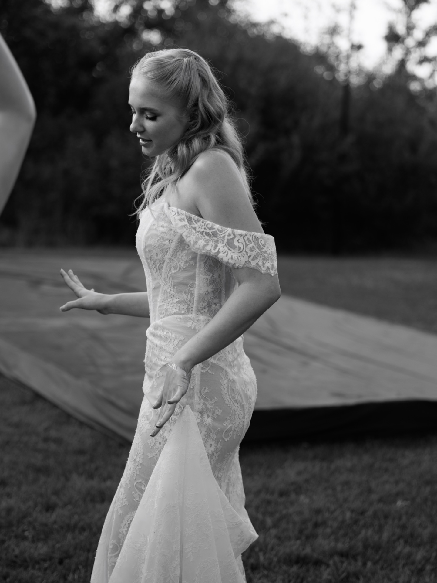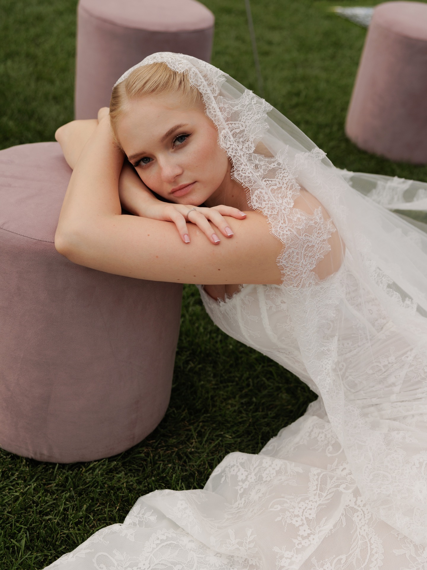 Я хотела, чтобы в моём образе сочетались нежность и чуть-чуть дерзости. Поэтому для себя я выбрала утончённое кружевное платье в форме «рыбки». Оно идеально подчеркнуло мою фигуру.
