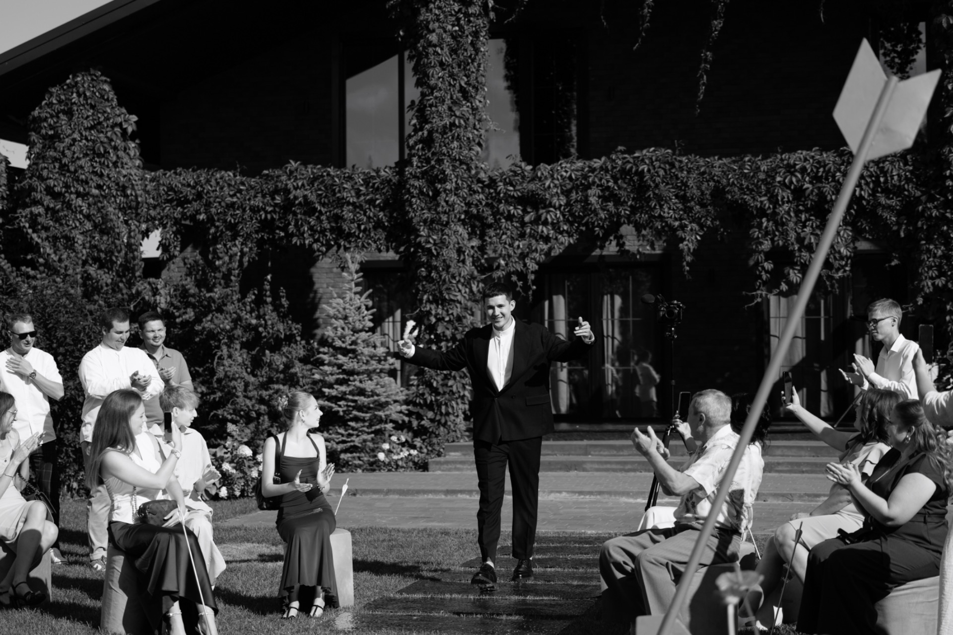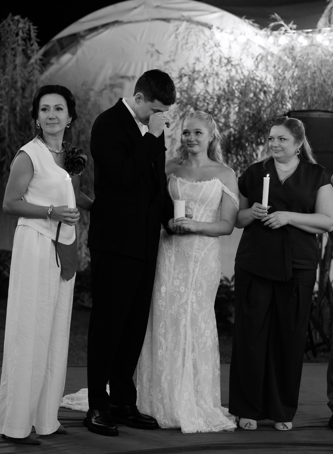 Было и много трогательных моментов. Наши клятвы стали событием, которое покорило всех присутствующих. А танец с дедушкой для меня останется самым тёплым и нежным моментом вечера. В завершение праздника мы провели ритуал семейного очага, на фоне которого на экране запустили наши детские фотографии. Мы оба не смогли сдержать слёз.