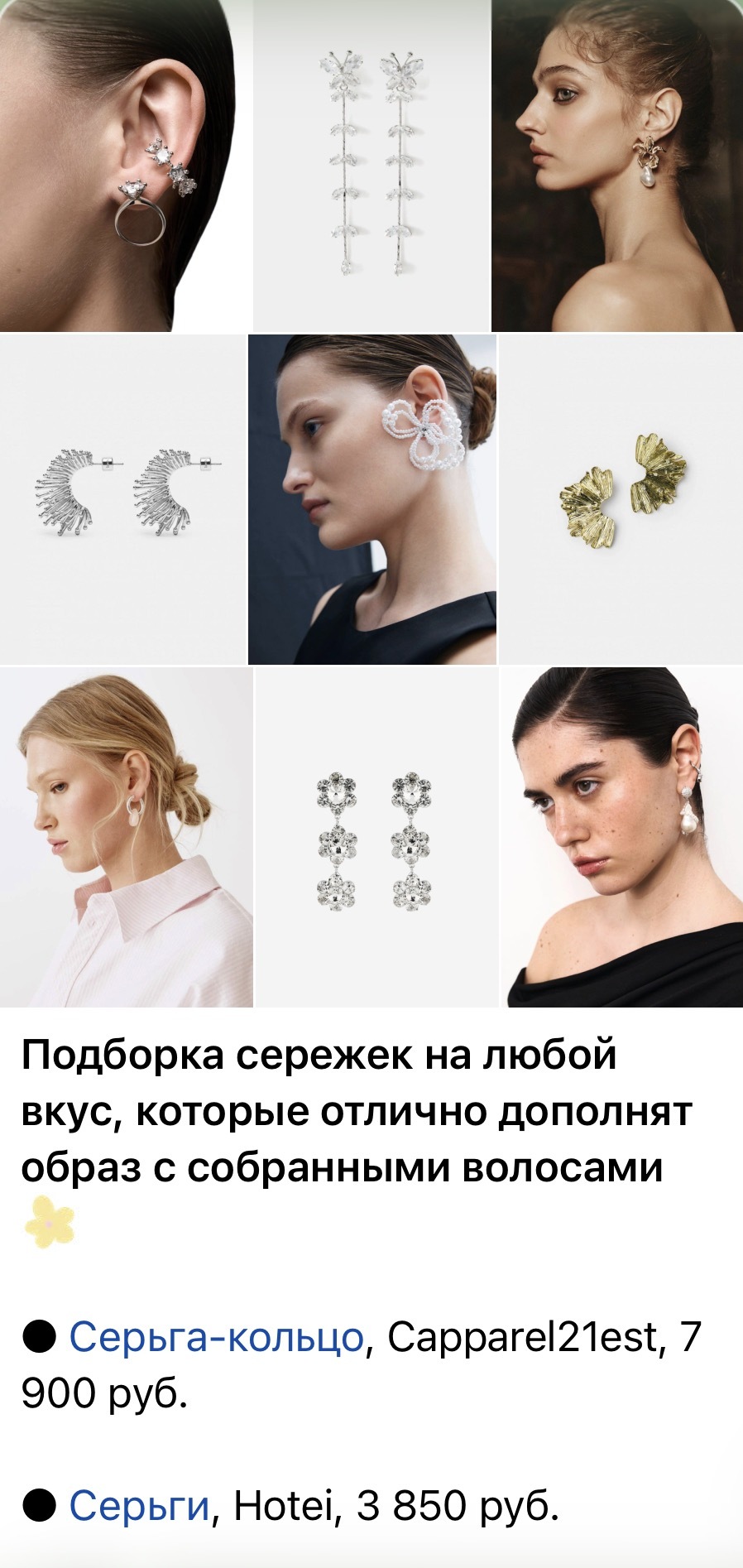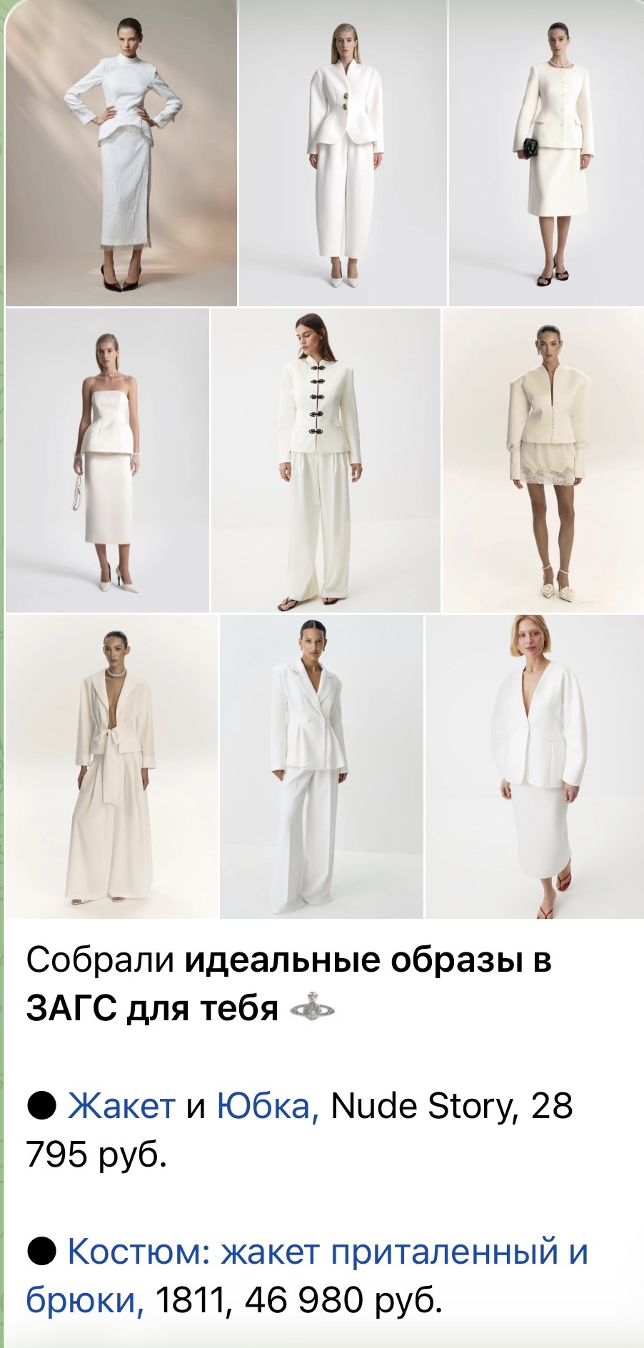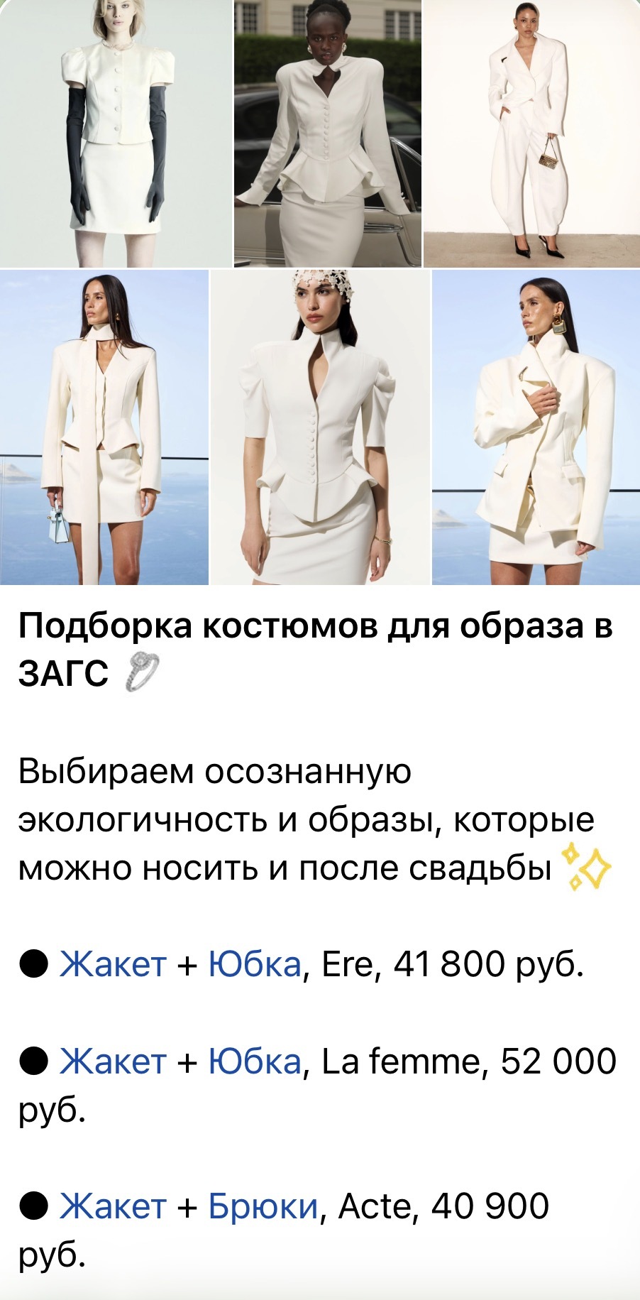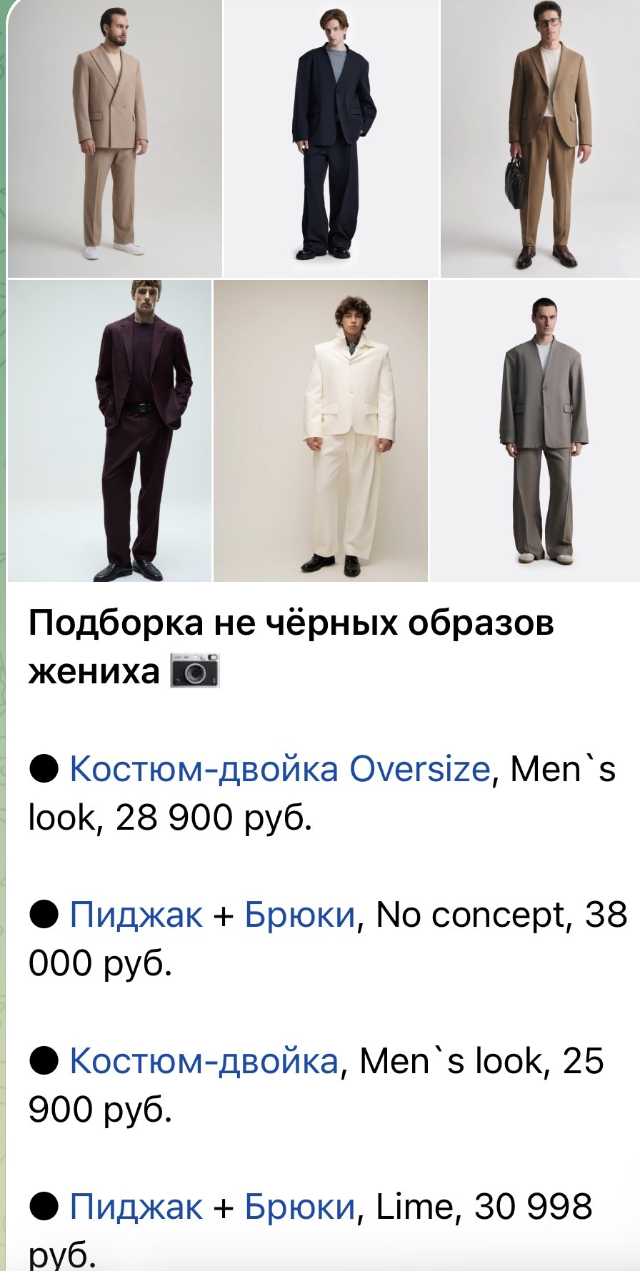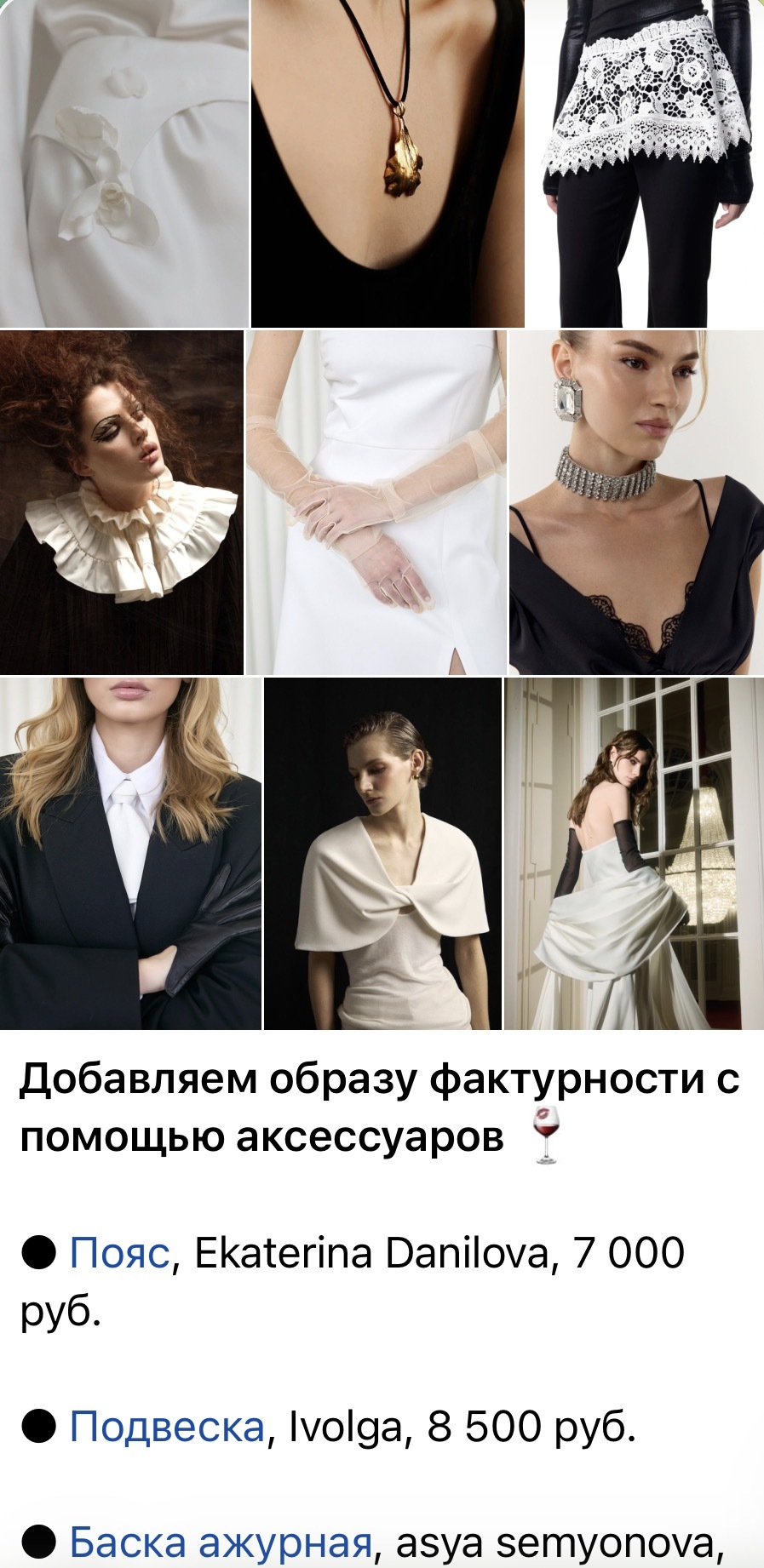 По разным стилям, бюджетам и категориям. Всё супер удобно с ценами, ссылками и тегами. Помогаем собрать образ, который идеально подойдёт именно тебе.