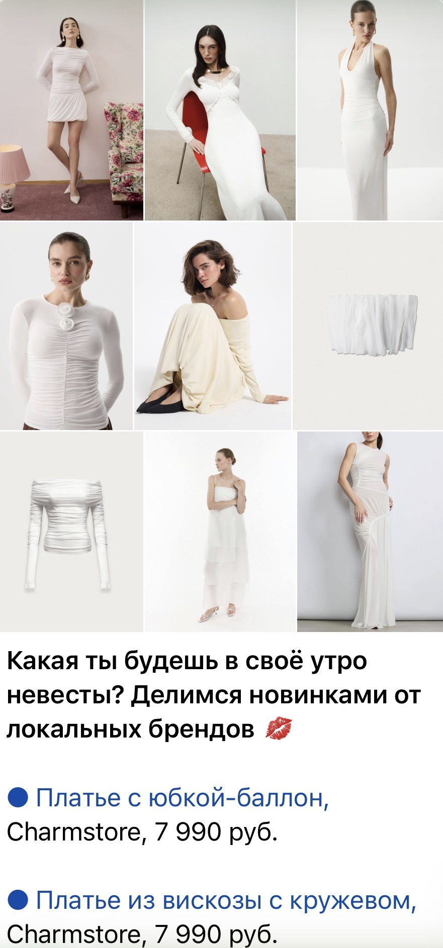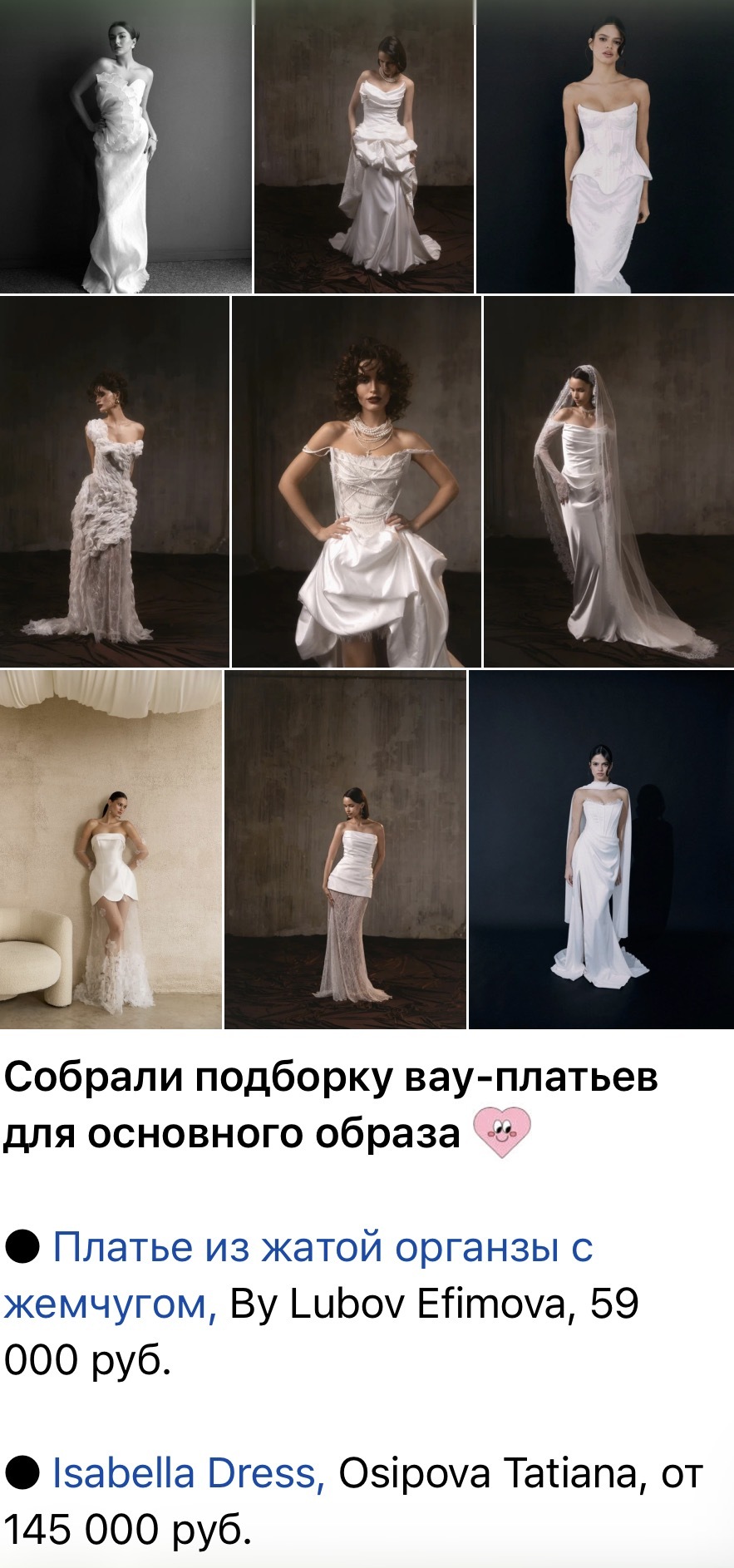 Отсматриваем все коллекции локальных брендов и выбираем лучшее для свадебных образов, чтобы ты экономила десятки часов на поиски.