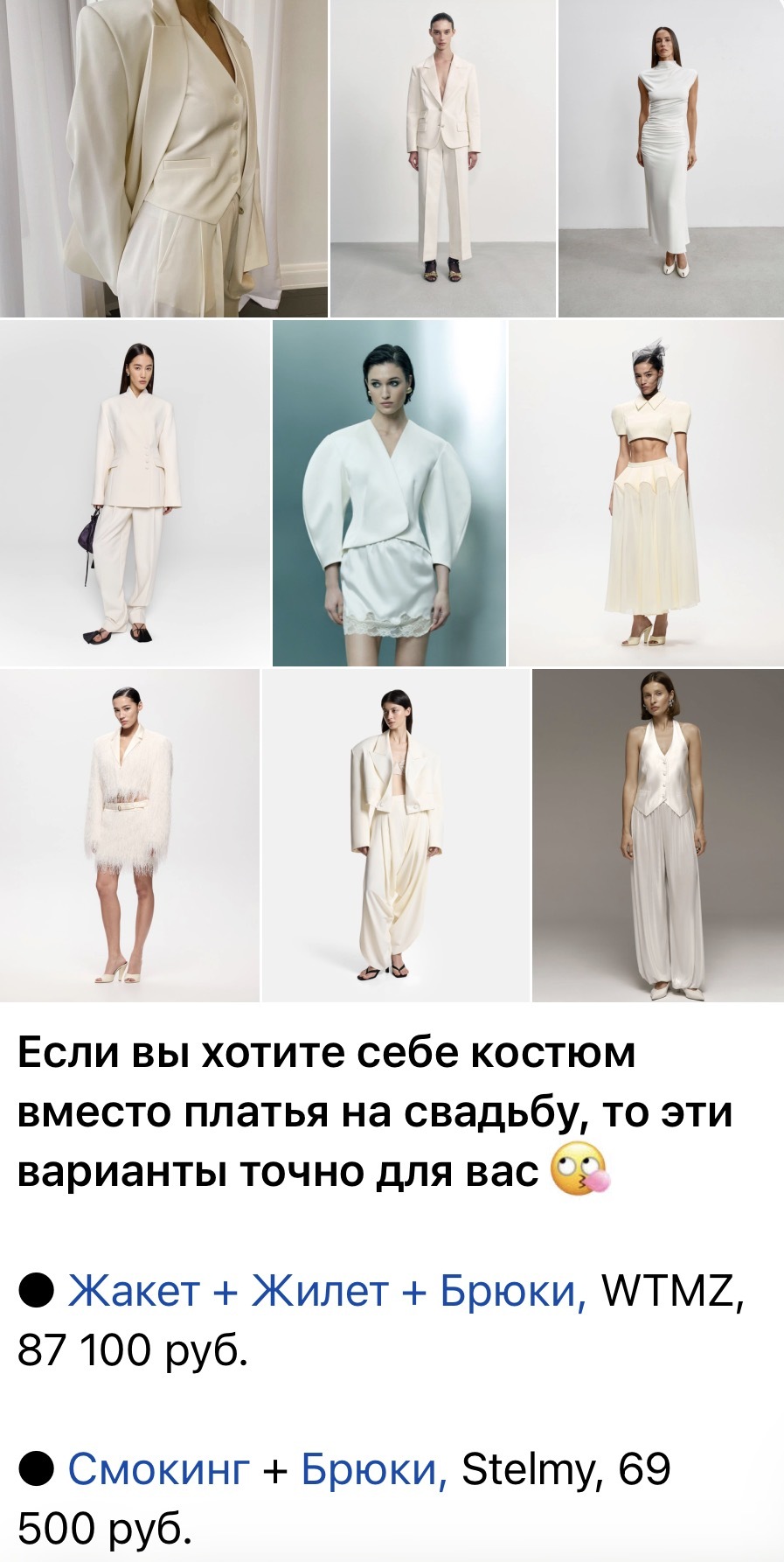 Собираем подборки по разным стилям, категориям и бюджетам. От классики до авангарда, от платьев и аксессуаров до образа жениха.