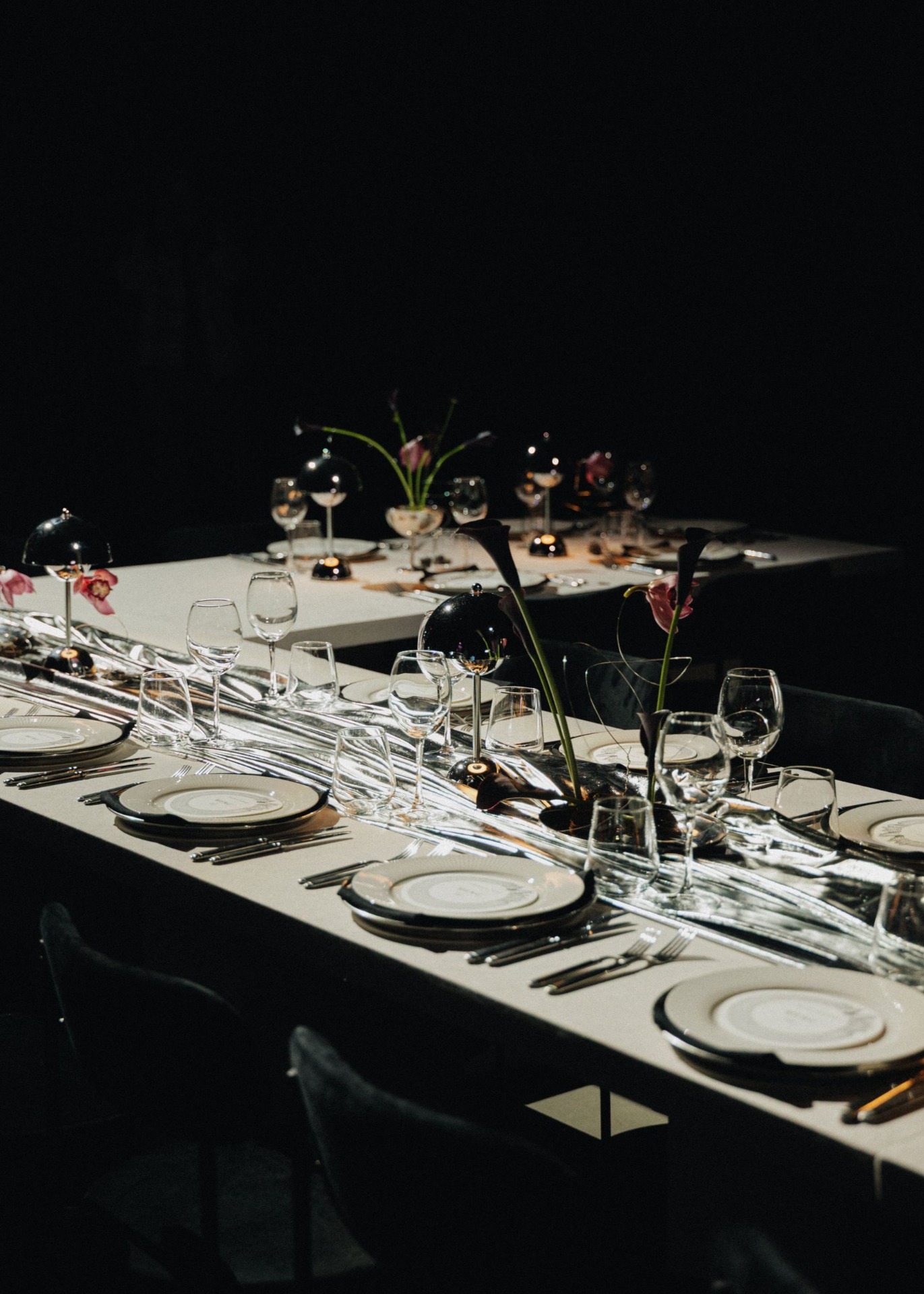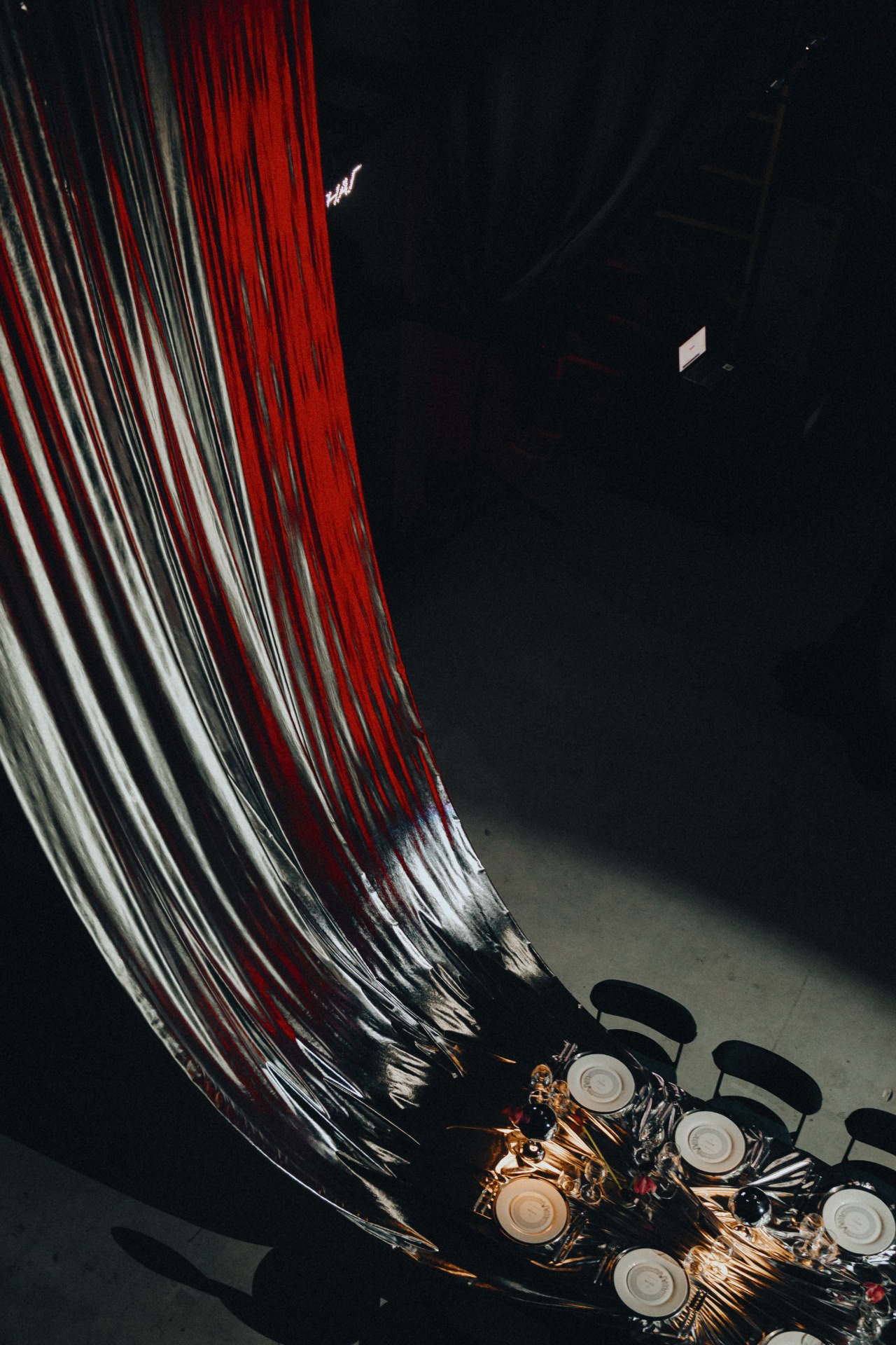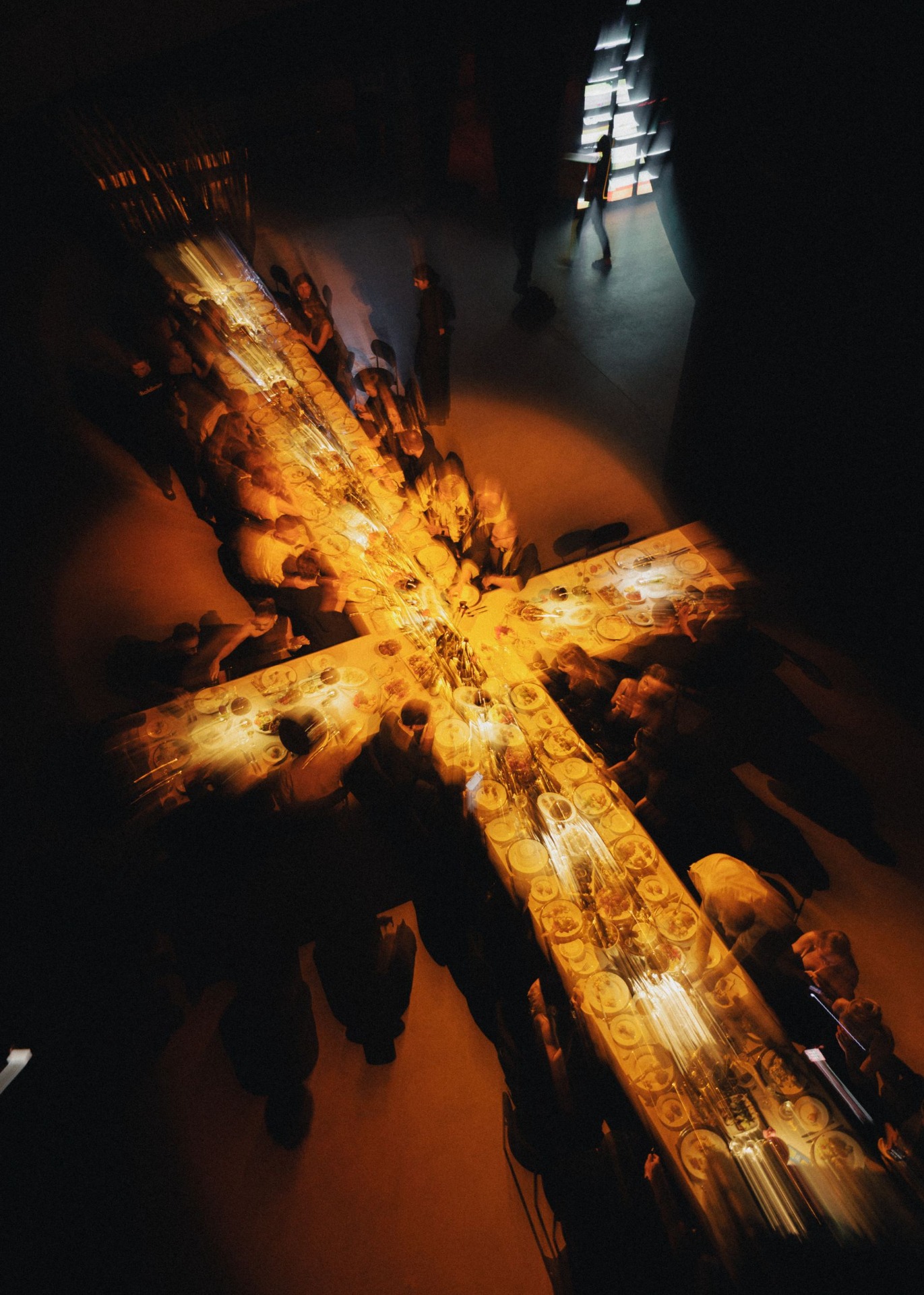 Стол-крест отсылал к Грузии — месту, где было сделано предложение. Обручальные кольца повторили форму фестивального промо-кольца, но уже в золоте. А звуковая инсталляция, демонстрировавшая важность языка прикосновений и музыки, которую гости «создавали» объятиями, поглаживаниями и поцелуями, продолжала главный манифест этой пары.