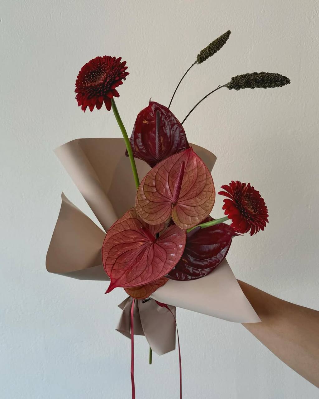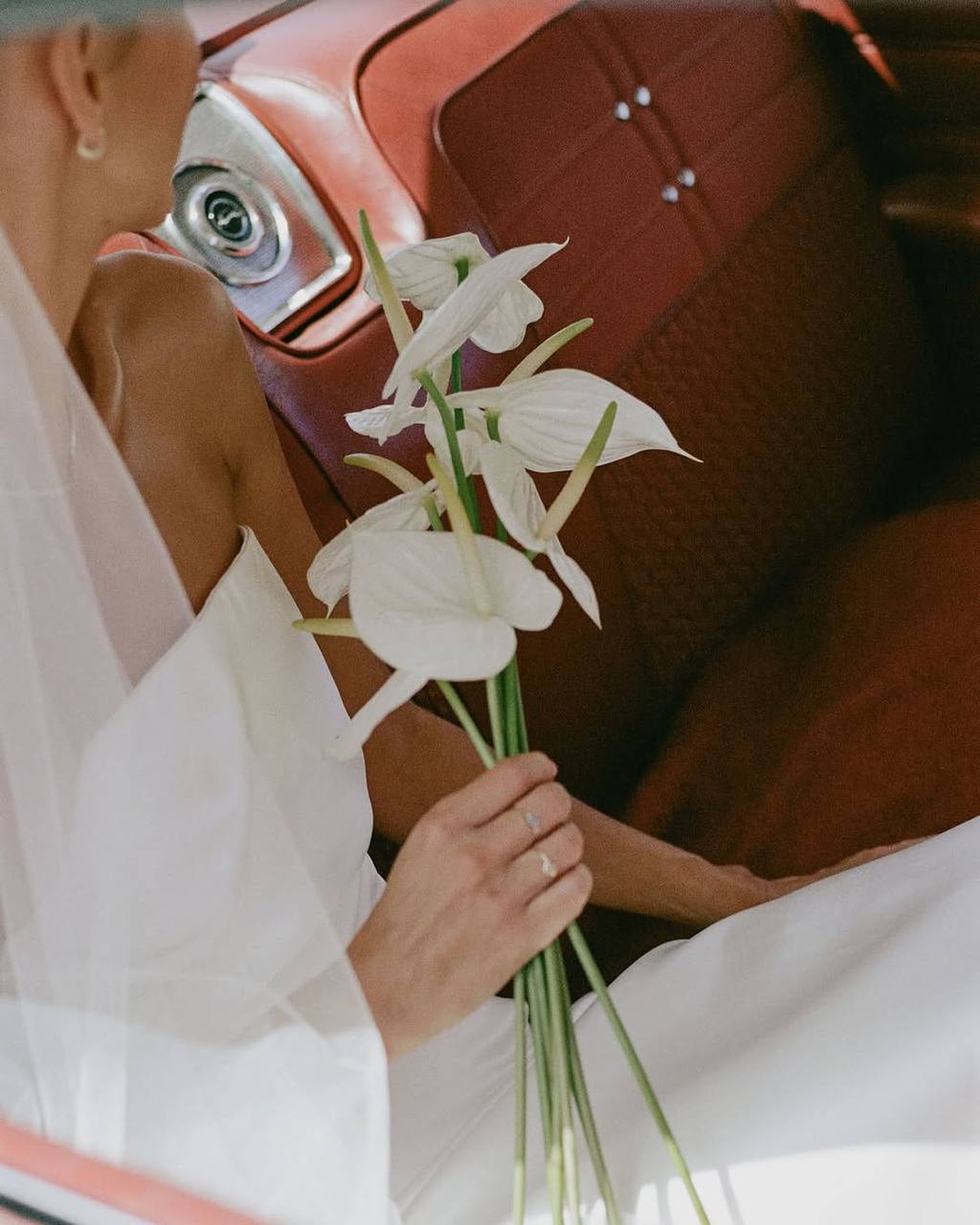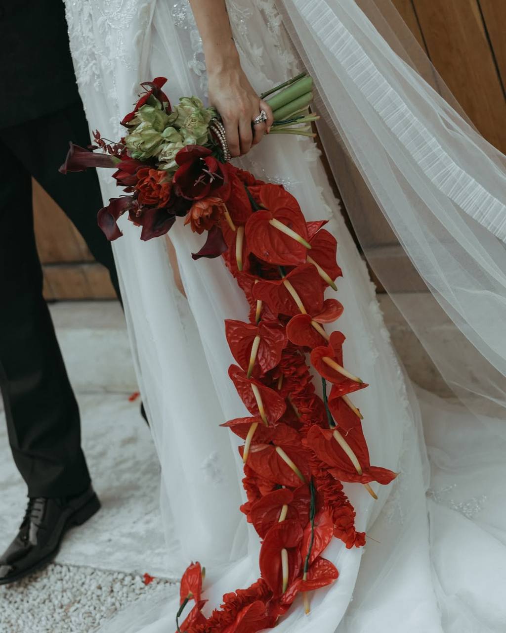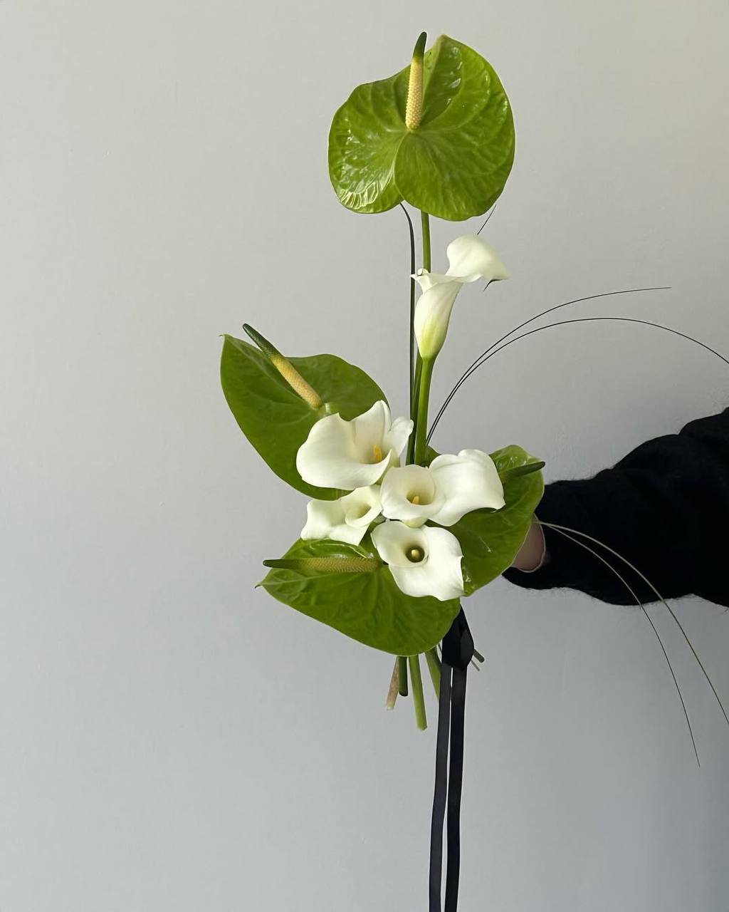 Антуриум всегда делает образ невесты очень акцентным и смелым, благодаря своей необычной изящной форме.