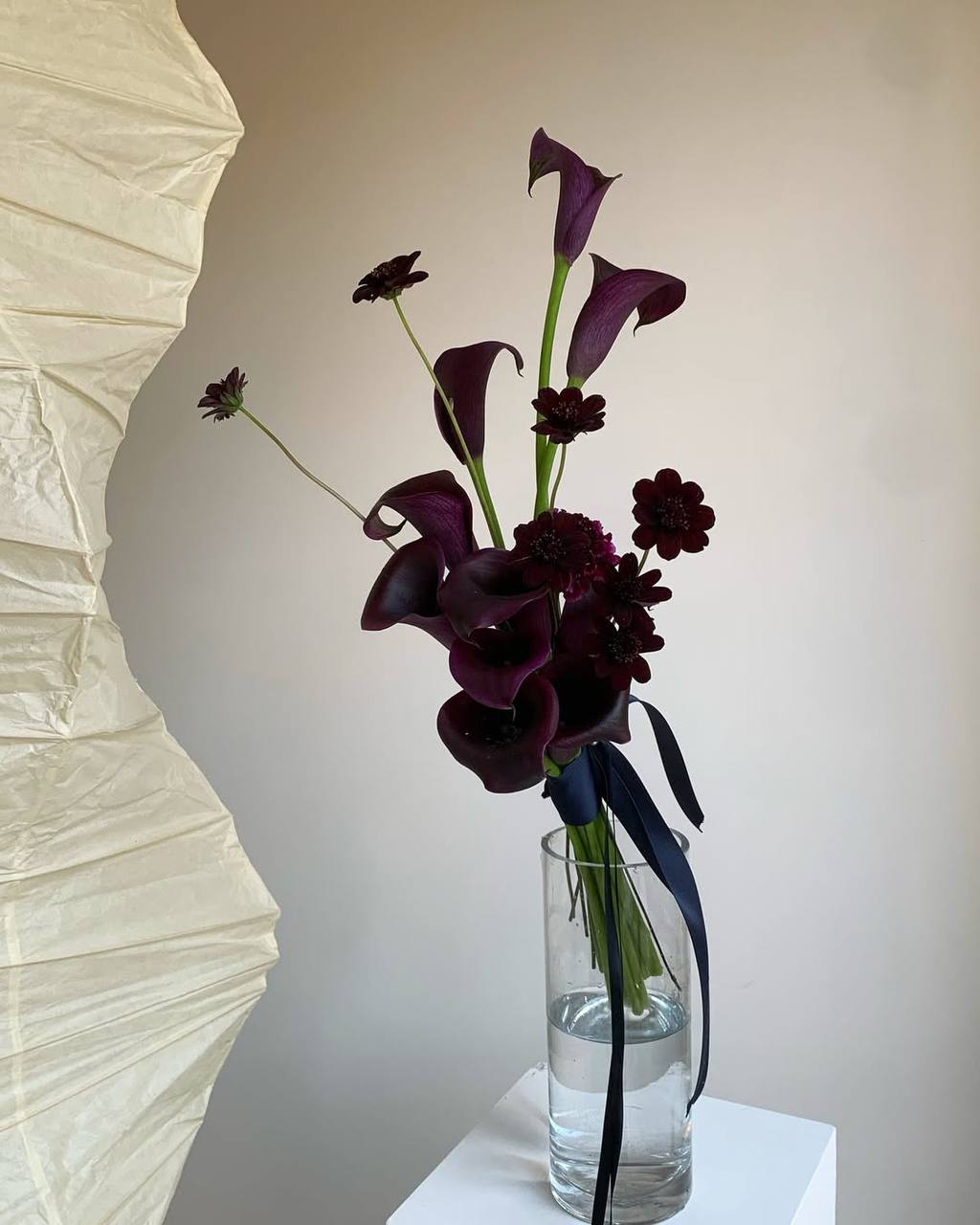 Белые каллы означают уважение к чувствам и новое начало, тёмно-фиолетовые — загадочность и глубину.